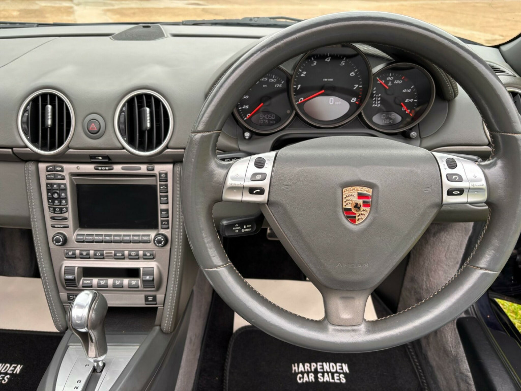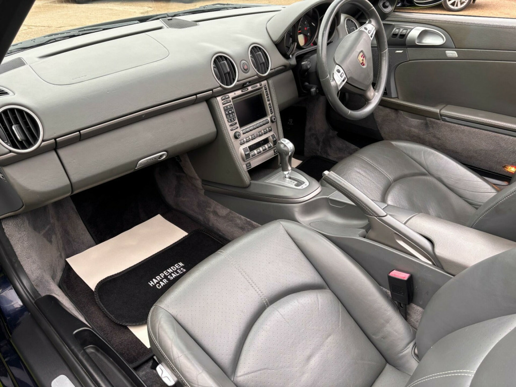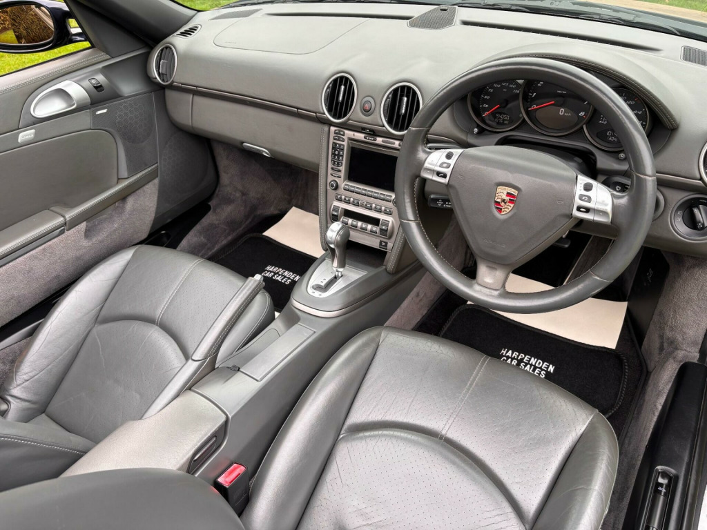 REVIEW WALK-ROUND VIDEO WITHIN THE PICTURES.Without exception, this impeccable, fully recommissioned & highly specified Porsche Boxter, will impress even the the purest of enthusiasts. Owned and recommissioned recently with a dedicated and purist approach to attention to detail - with a documented folder of invoices and receipts. Full book pack including all original Porsche suppled documentation. Two original remote controls keys in full working condition, entirely accident free and gleaming having been professionally and meticulously valeted for sale.Setting this particular vehicle apart from many others is the huge specification from factory - it is rare to find. With heated, memory electric seating, Sat nav and a BOSE audio system, reversing parking sensors and a faultless electric roof system.Just 2 former keepers from new and a very low genuine mileage. Servicing was regular up to 2016 at 30,000 miles, since recommissioning there has been a full service service performed - all stamped in the original service book.Just one modification improvement to the exhaust system, and now benefiting from a Cayman Sports exhaust and twin manifolds.Harpenden Cars Limited operates from a semi-rural and private location and accept appointments most times as arranged.All our vehicles are handpicked, with specific attention paid to ensuring an outstanding pedigree. Always accident free, HPi clear and usually completely 'stock' as standard from the factory. We are proud of our ability to source the very best vehicles available in the UK. We prepare to a good degree, perform servicing and MOT if required, professional valet and then store security undercover. Retail ready for viewing, inspection, and immediate purchase.We hope to have removed the need to tireless search for the right car yourself, instead to put your trust into a car trader with a genuine passion for what they do.All Prices Include a Comprehensive 3-month Warranty, which can be extended up to 3 years, a HPi certificate, a minimum of 6 months MOT and a VOSA MOT history report. r conditioning, bose sound system with wind deflector, three spoke multi function steering wheel/leather, full leather sports seats, metallic paint, heated seats, parking assistance, active sports seats, aluminium/leather gearshift/handbrake, electric front seats, automatic climate control, bose sound system, centre console - rear section in leather, cruise control, extended leather package (dashboard), extended leather package (doors), leather sports seats, floor mats with leather edging and porsche logo, porsche communication management sys, stainless steel door entry guards, wind deflector, instrument surround in leather, on board computer, alloy wheels - 17in sport classic design, full leather, porsche sound pack, porsche active suspension management, adjustable steering column/wheel, electric windows (front), seat height adjustment, air bag driver, air bag passenger, air bag side, alarm, anti-lock brakes, central door locking, head restraints, immobiliser, power-assisted steering