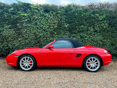 JG classics and performance is proud to present Bertie the Boxster our 2004 Porsche Boxster 3.2s manual 260bhp facelift. Finished in guards red with black leather interior and 18" sport design wheel. This Boxster has to be up there with the very best available today due to its previous keepers almost 22 years ownership and Porsche specialist history. With recent years maintenance with porchetec north west London and recently having a new clutch at portech Nottingham. It's also had a service just completed and has matching pirelli p-zero tyres all round. The Boxster has superb factory spec also with litronic headlights, 18"sport design wheels, full leather interior and the sports chassis to name a few. This means there's over £6000 of factory options fitted on this particular example. Overall this is just the Boxster to have, facelift, high horsepower, high spec, last owner over 21 years, service history and guards red with black leather. Find one better. Perfect in our opinion! 18in Sport Design Alloy Wheels, 3 Spoke Steering Wheel, Adjustable Steering Column/Wheel, Air Bag Driver, Air Bag Passenger, Air Bag Side, Air-Conditioning, Alarm, Alloy Wheels (17in), Anti-Lock Brakes, Central Door Locking, Electric Windows (Front), Full Leather Interior, Guards Red, Head Restraints, Immobiliser, In Car Entertainment (Radio/CD), Litronic Headlights & Cleaning Syste, Mirrors External, On Board Computer, Painted Rear Centre Console, Painted Roll Bar - Exterior Colour, Porsche CDR 32 Radio/CD, Power-Assisted Steering, PSM - Porsche Stability Management, Seat Height Adjustment, Seats Electric (Driver/Passenger), Silver Wheel Centres with Porsche Crest, Sound Package, Spare