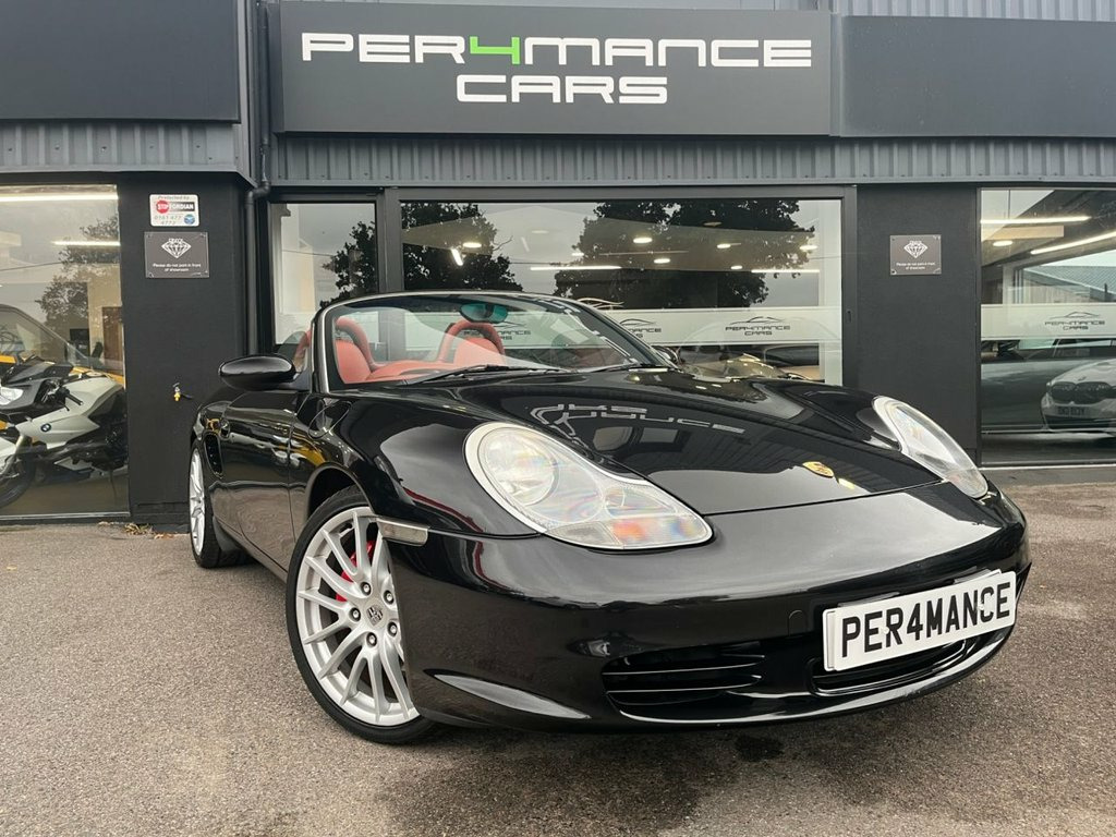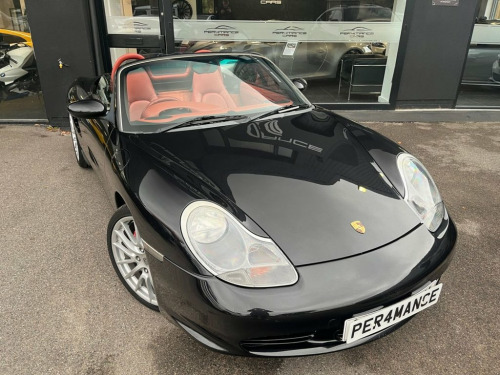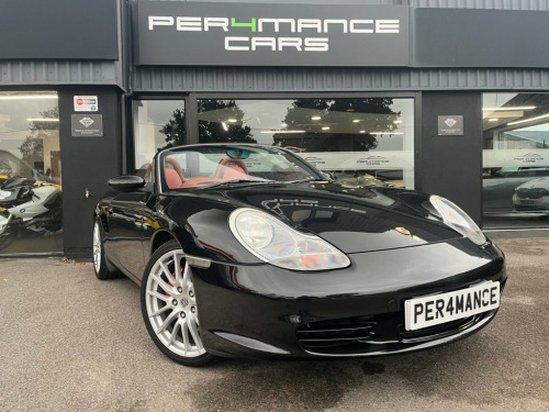 PER4MANCE CARS ARE DELIGHTED TO OFFER THIS VERY CLEAN PORSCHE BOXSTER 986 S TIPTRONIC (260BHP) FINISHED IN BASALT BLACK METALLIC WITH FULL STRIKING RED LEATHER INTERIOR, THIS IS THE DESIRABLE 3.2 LITRE S MODEL OFFERING A PERFECT BALANCE OF PERFORMANCE, HANDLING AND EVERYDAY USABILITY.A TIMELESS DRIVER FOCUSED PORSCHE THATS QUICKLY BECOMING A MODERN CLASSIC, DUAL ZONE AIR CONDITIONING, 19" ALLOY WHEELS, PERFECT WORKING ELECTRIC CONVERTIBLE ROOF, PADDLE SHIFT ON STEERING WHEEL, ELECTRIC WINDOWS AND MUCH MUCH MORE... THIS CAR MAY NOT BE ON SITE, PLS CALL FOR A VIEWING! Full dealer facilities available, Finance available, please apply via our website or call for a quote. We have a team of experienced buyers who hand pick our cars from all parts of the UK so you can buy with confidence all vehicles are HPI Clear and prepared to the highest standard. We believe in providing our customers with a personal and first class level of service,Full dealer facilities available, Part exchanges welcomed. CONTACT OUR EXPERIENCED SALES TEAM ON 0333 988 7777 OR EMAIL [email protected]. 19in 10Spoke Alloy Wheels, 700W Audio System with dolby prologic II, Brake calipers - Silver, Deleted badging, Fast track hood- Atlantic Blue, Fast track hood- Black, Fast track hood- Westminster Green, Fine stitching, Walnut veneer facia