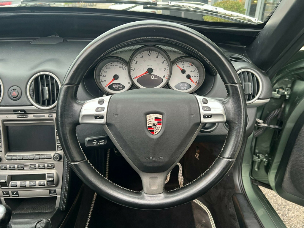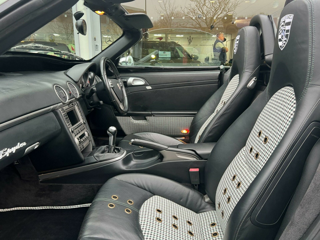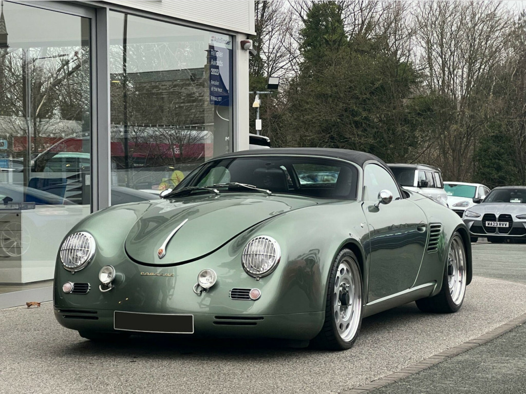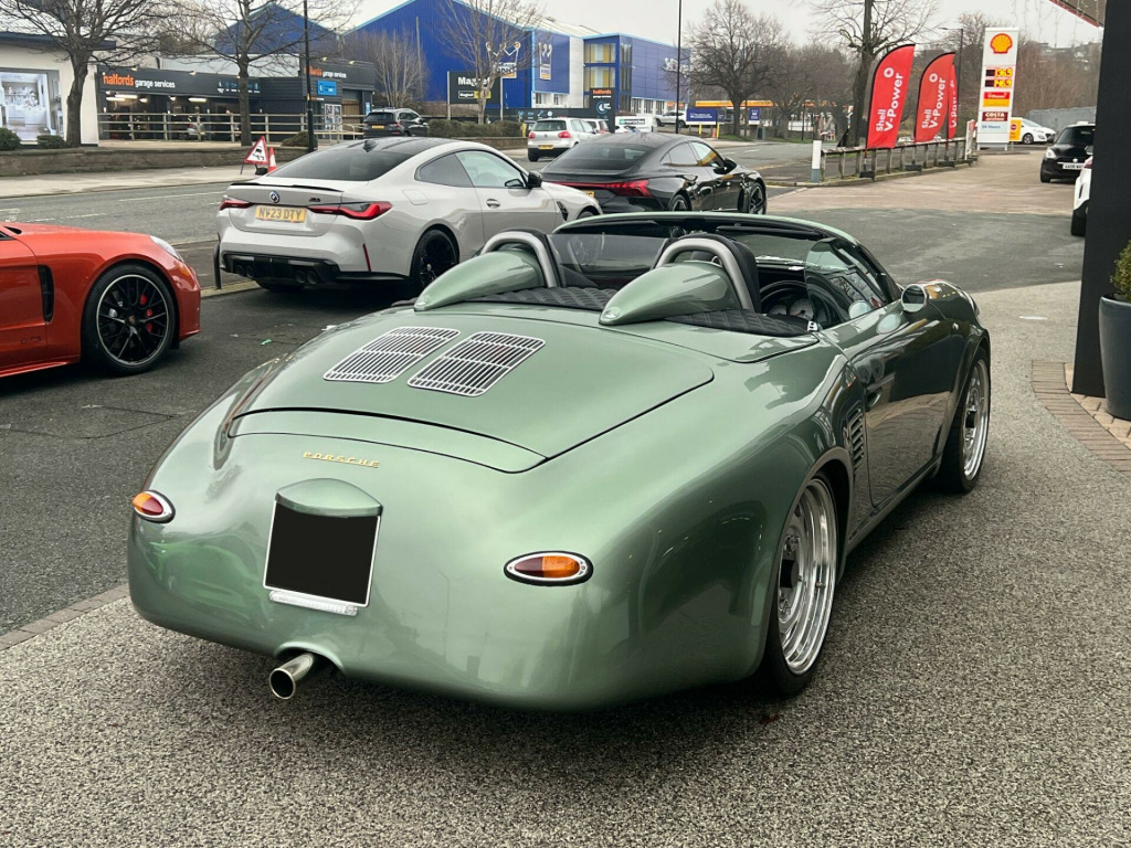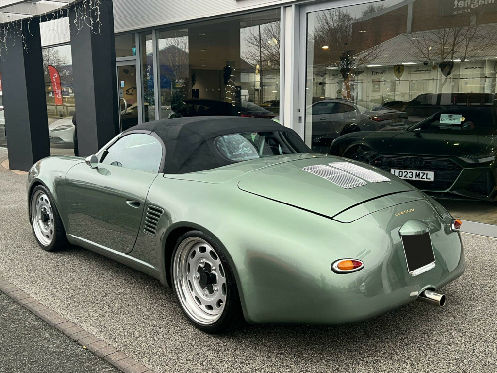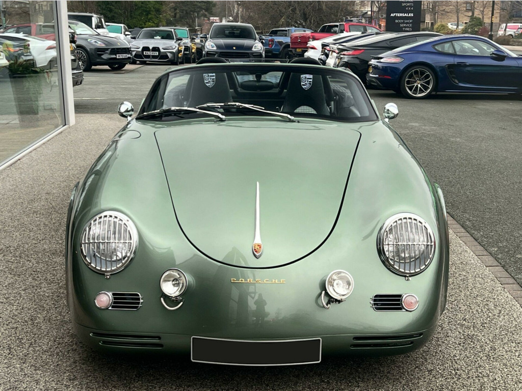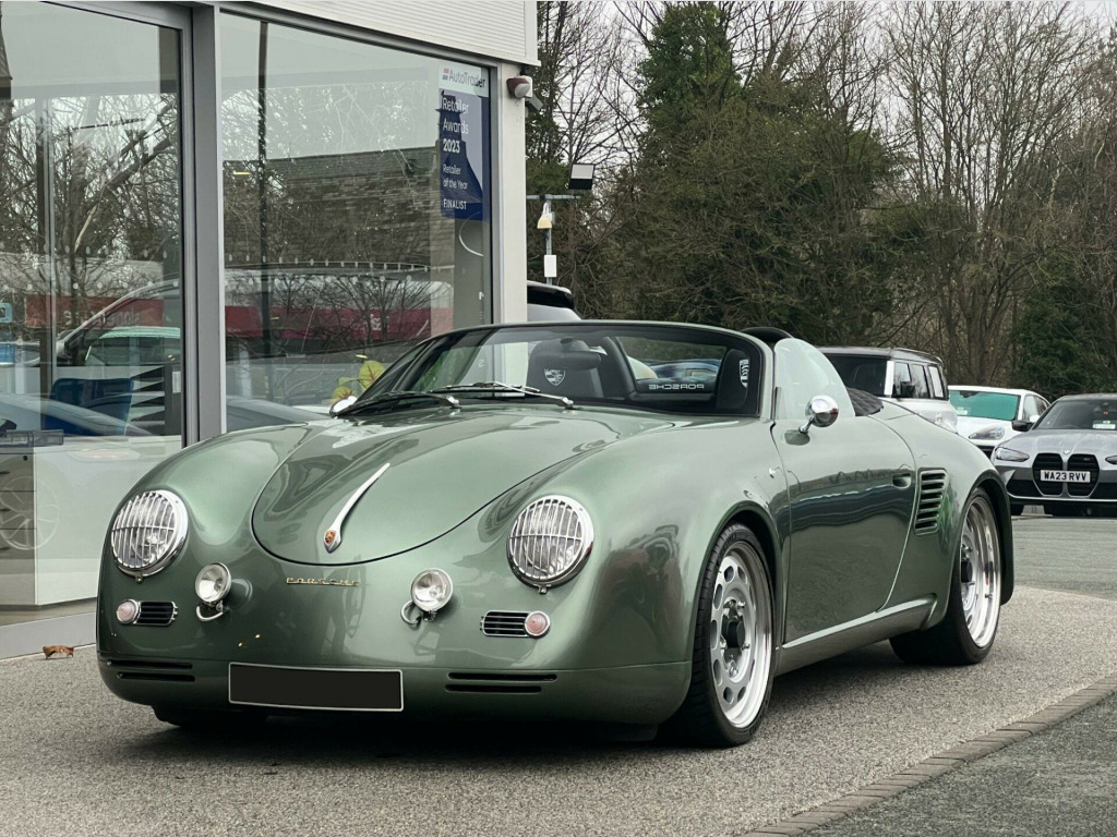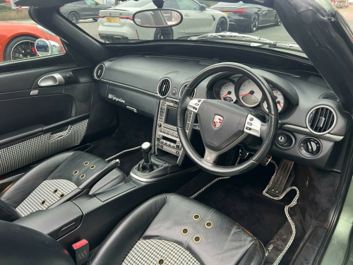 Sold as seen - Porsche Boxster 3.2 987 S 2dr (356 Speedster Homage Resto-Mod) - One-Of-A-Kind High-Spec Iconic Autobody 387 Spyder. Specification: 19” Iconic Autobody Signature Ten-Hole Split Alloy Wheels, Fully Electric Retractable Soft-Top, Porsche Boxster S Sports Exhaust, Custom Performance Exhaust Manifolds, Custom Chrome Exhaust Tip, Chrome Mirrors (356 torpedo style), Chrome Wipers & Arms, Retractable Rear Spoiler, Porsche 718-Style Detachable Colour-Coded Rear Turrets, Green Contrast Stitching, Hand-Embroidered Porsche Headrest Crests, Singer-Style Distressed Brass Seat Eyelets, Bentley-Style Diamond-Stitched Rear Turret Shelves, Matching Pepita Door Cards And Bespoke Floor Mats, Air Conditioning, Porsche Active Suspension Management (PASM), Heated Seats, Porsche Stability Management (PSM), Porsche Communication Management (PCM), Porsche Navigation System, Gold Exterior Badging. Finished in Bespoke Fresco Green Metallic Paint with a Half Black Calf Leather Interior with Porsche Green Pepita “Grand Prix Cheque” Cloth Interor. Singer, Stark, Theon Design, Outlaw 718, RUF Automobile, Gunther Werks, TechArt, Prior Design, Club Autosport. Proudly No.1 in the UK for customer service in 2024, as awarded by AutoTrader. Our bespoke customisation services include Upgrade Alloy Wheels/Colour Changed & Refurbishment, Carbon Dipping, Bodykits, Window Tints, Black Pack / De-chroming.All our cars are HPI clear. Please contact us for your own personal video presentation of this particular car. We offer competitive finance rates with our in-house team from PCP, lease purchase and HP. Whilst we make every effort to ensure that the specification and technical information for the cars on our website is correct, some of it is supplied by third party providers and we cannot guarantee its accuracy. It is therefore important that you do not solely rely on this information.. : 19” Iconic Autobody Signature Ten-Hole Split Alloy Wheels, Fully Electric Retractable Soft-Top, Porsche Boxster S Sports Exhaust, Custom Performance Exhaust Manifolds, Custom Chrome Exhaust Tip, Chrome Mirrors (356 torpedo style), Chrome Wipers & Arms, Retractable Rear Spoiler, Porsche 718-Style Detachable Colour-Coded Rear Turrets, Green Contrast Stitching, Hand-Embroidered Porsche Headrest Crests, Singer-Style Distressed Brass Seat Eyelets, Bentley-Style Diamond-Stitched Rear Turret Shelves, Matching Pepita Door Cards And Bespoke Floor Mats, Air Conditioning, Porsche Active Suspension Management (PASM), Heated Seats, Porsche Stability Management (PSM), Porsche Communication Management (PCM), Porsche Navigation System, Gold Exterior Badging.