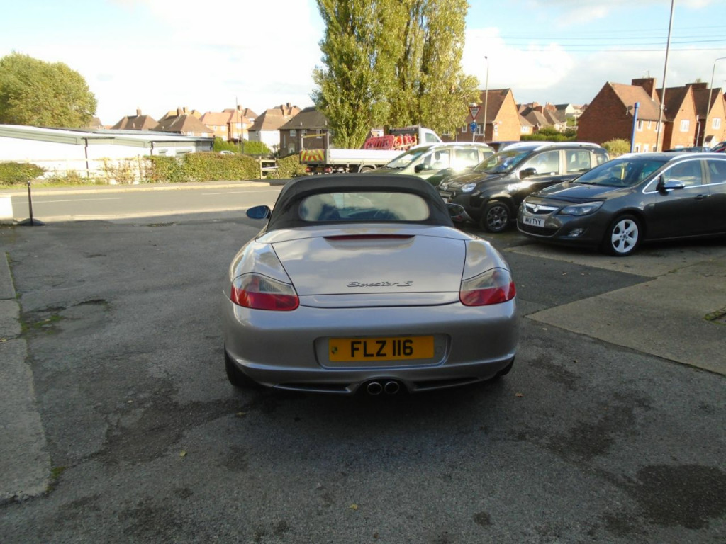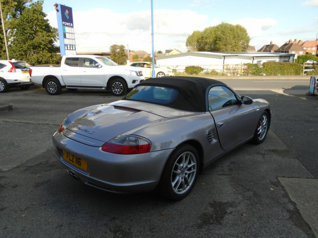 VERY WELL LOOKED AFTER BOXSTER S COMES WITH 12 SERVICE STAMPS BILLS AND RECEIPTS,2 KEYS,CENTRAL LOCKING,ELEC WINDOWS/MIRRORS,POWER STEERING,AIRBAGS,ALLOYS,COLOUR CODED BUMPERS,LEATHER INTERIOR,CLIMATE CONTROL,RADIO/CD,6 SPEED GEARBOX,BOSE SPEAKERS,AIRCON,PSM,