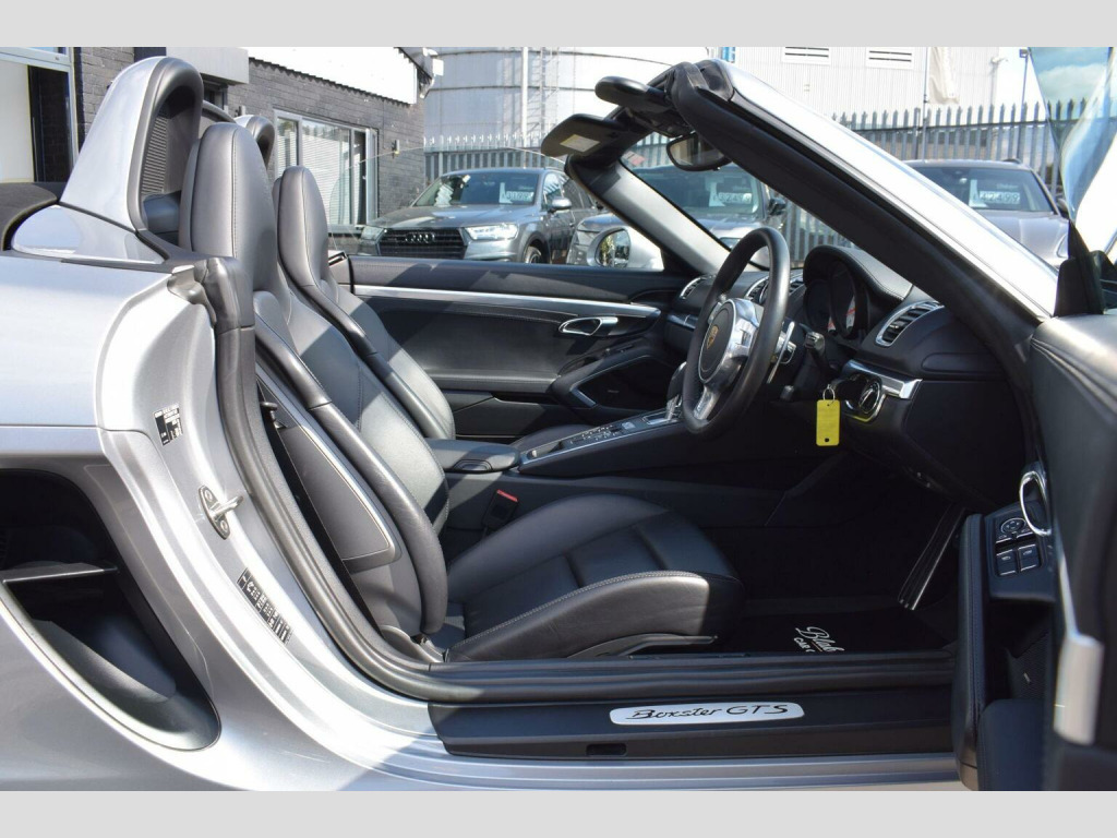 2016 16 Porsche Boxster 3.4 981 GTS PDK finished in sought after GT Silver Metallic with optional full black leather interior (Deletion of Alcantara®). Just 24500 miles covered which is supported with stamped service history with next not due until August 2026. Supplied with all correct documentation, handbooks etc and subjected to our usual strict pre delivery inspection and preparation process ensuring all cosmetic and mechanical elements are in good order including PCCB discs, pads and matching Michelin PS4S tyres with great tread. Presented superbly as youd expect - lightly used, garaged and cherished by an enthusiast previous owner. Fantastic specification thanks to a long list of desirable factory options being fitted from new on top of the sought after paint finish. Options include: PCCB - Porsche Ceramic Composite Brakes, 20in Alloy Wheels - Carrera Classic, BOSE Surround Sound System, Porsche Torque Vectoring - PTV with Mechanically Locking Rear Differential, PCM - Porsche Communication Management - Include Navigation, Porsche Crest on Head Restraints, Deletion of Model Designation, Roll-Over Bars Painted in Exterior Colour, Two-Zone Automatic Climate Control, Preparation for Mobile Phone, Park Assist - Rear, Digital Radio, Deletion of Alcantara®, SportDesign Steering Wheel, Side Mirror Painted (Lower Trim), Instrument Dials - White and Tail Pipes - Sports. Furthermore, this particular car benefits from a high quality adjustable Bilstein coilover suspension setup which allows adjustable ride height as well as vastly improving handling, reducing body roll with little to no sacrifice in factory ride quality. Other highlights include: Bi-Xenon Headlights, Daytime Running Lights - LED, Green Tinted Heat-Insulating Glass, Porsche Dynamic Light System - PDLS, Sport Chrono Package, Sport Mode Button, Sports Seats Plus - Electrical 2 Way, Tailights Tinted Black - LED, Wind Deflector and more. , DELIVERY: Nationwide delivery available. The first 100 miles are free of charge (driven delivery). Thereafter, delivery is charged at £1.99+vat per mile. Please contact us for further details or a personalised quotation including trailered delivery options. , PAYMENT: We accept debit card payments for amounts up to £500. For payments exceeding this amount, we accept BACS (bank transfer) only. Please ensure that funds have cleared prior to vehicle collection as we are unable to release vehicles without cleared funds.If you intend to pay via online banking on the day of collection, please bring any necessary devices or security tools (e.g. secure keys, card readers, etc.) required to complete your transfer. We also accept cash payments up to £9,000, subject to a 2% banking fee. Please note that a £250 administration fee applies to all purchases funded through third-party finance providers. , NOTICE: Every effort is made to ensure the accuracy of our advertisements and vehicle specifications. However, occasional human or system errors may occur. We therefore recommend verifying all details prior to purchase.