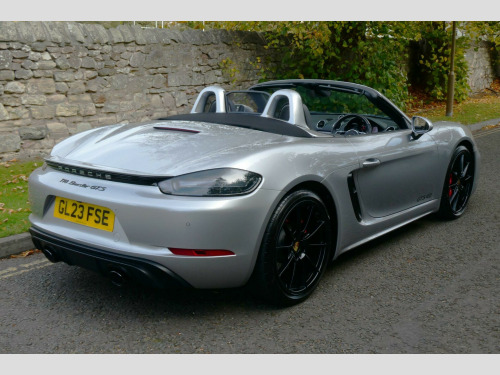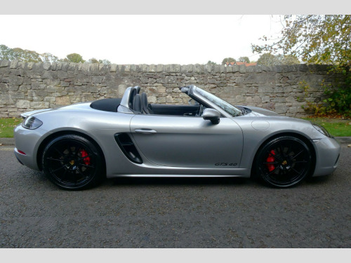 We Are Delighted To Offer This Beautiful Porsche Boxster 718 GTS Finished In GT Silver Metallic With The All Important GTS Interior Pack. It Has A Fantastic Factory Specification Which You Can See Below. Please Call Andrew or Ross With Any Further Question You May Have Or To Book An Appointment To See With Your Own Eyes As We Are Sure You Will Be Delighted In What You Find.. 12-Volt Sockets in Passenger Footwell and Centre Console Storage Compartment, 20in Alloy Wheels - 718 Sport - Satin Black, 718 Logo on Gear lever, Adjustable Fan with Air Recirculation and Defroster Functions, Air Conditioning with Integrated Active Carbon Filter, Alarm System, Anti-Theft Wheel Bolts, Ascending Centre Console with an Uncovered Storage Compartment and a Closed Storage Compartment, Automatic Deploying Rear Wing, Automatic Headlight Activation including Welcome Home Lighting, Bi-Xenon Headlights with Integrated LED Daytime Running Lights, Black Model Designation GTS 4.0 on Doors, Brake Calipers - Red, Clothes Hooks on Seat Backrests, Convertible Top Colour - Black, Cruise Control, Dashboard Trim Strips and Centre Console Trim in Silver Colour - High-Gloss, Digital Displays for Vehicle Speed - Chosen Gear - Odometer -Trip Meter and Time, Digital Radio, Door Panel Armrest and Centre Console Main Storage Compartment Lid in Smooth Finish Leather, Door Sill Guards - Model Designation Logo, Dynamic Gearbox Mount System, Electric Windows with One-Touch Operation and Door Seal Protection Function, Electrically Adjustable Heated Exterior Mirrors on Door Waist Rails - Aspherical on Drivers Side, Electrically Controlled Parking Brake, Electromechanical Direct Steering with Variable Steering Ratio and Steering Pulse Generator, Engine Water Cooled with Thermal Management, Fixed Roll-Over Bar, Floor Mats, Full Size Airbags for Driver and Front Passenger, Fully Automatic Fabric Hood, GT Sports Steering Wheel, Green Tinted Heat-Insulating Glass, Instrument Cluster with Central Rev Counter and High Resolution 4.6inch Colour Display, Instrument Dials and Rev Counter in Black with GTS Logo, Intelligent Lightweight in Aluminium-Steel-Composite Construction, LED Reading Lights - Orientation Lighting and Ignition Lock - Additionally Luggage Compartment and Glove Box Lighting, LED Taillights and Integral 4-Point Brake Lights and Reversing Lights, Lightweight Spring-Strut Axle Front and Rear, Luggage Compartments at Front and Rear, Net Wind Deflector, PASM - Porsche Active Suspension Management with Ride Height Lowered by 20mm, PCM - Porsche Communication Management - Include Navigation, PORSCHE Logo on Accent Strip and Model Designation on Rear Apron in Silver Colour - High Gloss, Park Assist - Front and Rear, Porsche Side Impact Protection - POSIP, Porsche Stability Management - PSM Including ABS with Extended Brake Functions, Porsche Torque Vectoring - PTV with Mechanically Locking Rear Differential, Remote Central Locking with Immobiliser, Seat Heating, Separate Auxiliary Lights in the Front End with LED Indicators and Position Lights, Side Air Intake with Grille in Black, Sound Package Plus, Sport Chrono Package including Mode Switch, Sports Seats Plus - Electrical 2 Way, Sports-Look Pedals and Footrest, Storage Compartment in Each Door, Twin-tract Sports Exhaust System with Two Tailpipes in Stainless Steel in Black High-Gloss, Two Individual Cup Holders - Integrated into Dashboard Trim Strip, Tyre Pressure Monitoring System - TPM, Tyre Repair Kit, Wheel Centres with Full-Colour Porsche Crest, Windscreen Washer System with Two Wiper Speeds and Washer Jets, Windscreen with Darker Grey Tint at the Top to Reduce Glare, Finished In GT Silver Metallic With GTS Interior Pack, PORSCHE MAIN DEALER WARRANTY (MAY 2027), GTS Alcantara Package, Heated Multifunction Sports Steering Wheel in Carbon, PASM - Porsche Active Suspension Management with Ride Height Lowered by 10mm, Power Steering Plus, BOSE Surround Sound System, LED Main Headlights including Porsche Dynamic Light System - PDLS, ParkAssist - Front and Rear with Reversing Camera, Two-Zone Automatic Climate Control, Roll-Over Bars Painted in Exterior Colour, Passenger Footwell Storage Net, Electrically Folding Exterior Mirrors, Leather Interior Package - with Leather Interior, Automatically Dimming Mirrors with Integrated Rain Sensor.