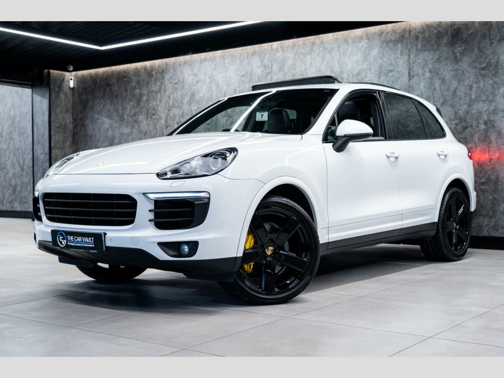 We At The Car Vault Are Proud To Offer This Stunning PORSCHE CAYENNE 3.0 TD V6 PLATINUM EDITION TiptronicS 4WD Euro 6 Finished In CARRARA WHITE METALLIC Paint. This Vehicle Comes With a FULL PORSCHE SPECIALIST/INDEPENDENT SERVICE HISTORY and Comes With 2 ORIGINAL PORSCHE REMOTE KEYS. , This PORSCHE CAYENNE PLATINUM EDITION Comes With The Following OPTIONAL SPECIFICATION: Panoramic Glass Sunroof System, Bi-Xenon Main Headlights in Black with Porsche Dynamic Light System-PDLS, Extended Monochrome Black Exterior Package-High Gloss, Wheel Arch Extensions In Exterior Colour, Sport Chrono Package, Sport Mode Button, Power Steering Plus, ParkAssist-Front and Rear with Reversing Camera, Porsche Rear Seat Entertainment Plus, BOSE Surround Sound System, PCM-Porsche Communication Management Including Navigation, Connect Plus, Digital Radio, Adaptive Sports Seats with Comfort Memory Package, Smooth Finish Leather-Black, Heated Front Seats, Porsche Crest Embossed on the Outer Headrests of Front and Rear Seats, Porsche Logo and Model Designation Painted, Multifunction Sports Steering Wheel with Shift Paddles-Steering Wheel Rim in Smooth Finish Leather, Fuel Filler Cap with Aluminium Look Finish, Automatically Dimming Exterior and Interior Mirrors, Electrically Adjustable Heated Exterior Mirrors-Electrically Retractable, Powerlift Tailgate, Privacy Glass, 21in Alloy Wheels-Cayenne SportEdition Painted Black High Gloss, Panroof.