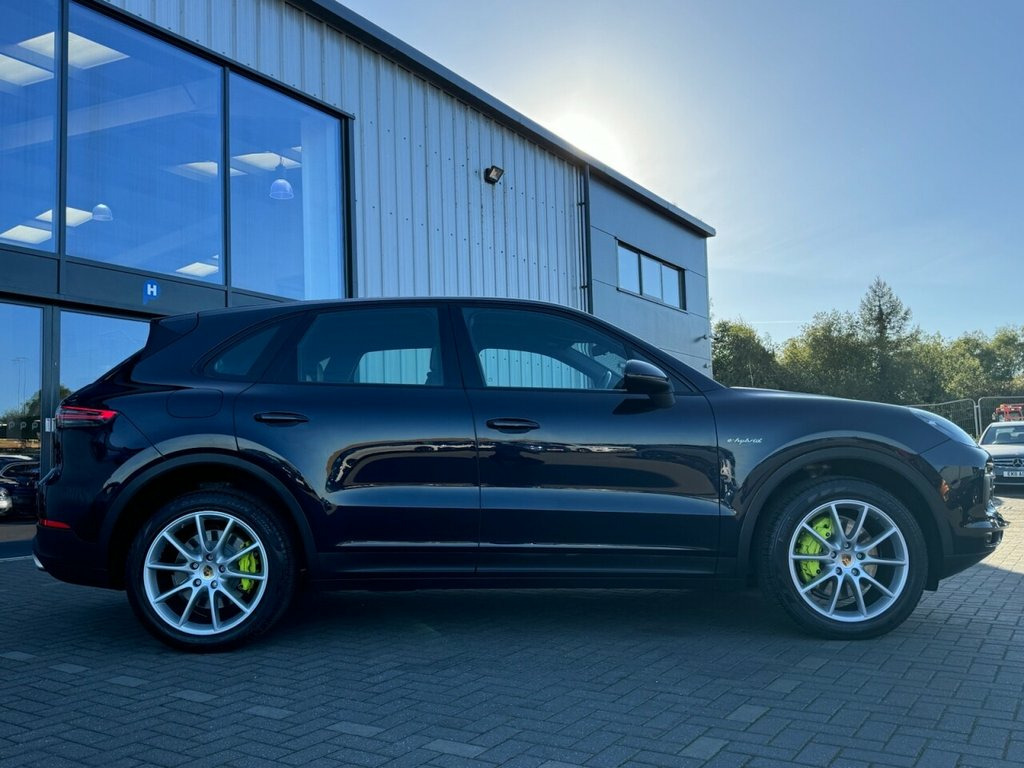 DRIVE HOME TODAY IN THIS WONDERFUL 2019-69 PORSCHE CAYENNE 3.0 V6 E-HYBRID PETROL PLUG IN 4WD 5 DOOR EURO 6 462 BHP FINISHED IN MOONLIGHT BLUE AND TRIMMED WITH HEATED & ELECTRIC ADJUSTABLE SLATE GREY LEATHER SEATING. ONE PRIVATE OWNER FROM NEW WITH A FULL PORSCHE MAIN DEALER SERVICE HISTORY INC 5X SERVICES AND LAST SERVICED @ 60,689 ON THE 31/05/2024 - ALSO FRONT & REAR BRAKES REPLACED BY PORSCHE @ 63,066 MILES ON THE 09/09/2024. A TRULY SUPER COMBINATION OF STYLE, LUXURY AND ECONOMY - CLEAN AIR ZONE AND ULEZ COMPLIANT. OVER £7,000 OF FACTORY FITTED EXTRAS INC 20"ALLOY WHEELS, GLASS PANORAMIC SUN-ROOF, FRONT & REAR SENOSRS INC CAMERA, CAR PLAY, HEATED SEATS, SPORT CHRONO PACK, ELECTRIC TAIL GATE, CRUISE CONTROL, ALONG WITH ALL THE USUAL PORSCHE REFINEMENTS. ParkAssist - Front and Rear including Re, Smooth Finish Leather - Slate Grey, Moonlight Blue, Sport Chrono Package Including Mode Swit, Seat Heating - Front, Panoramic Roof System, 20in Alloy Wheels - Cayenne Design, 19in Alloy Wheels - Cayenne, Active Air Intake Flaps, Air Curtains in Wheel Arch Housings, Air Inlets with Silver Coloured Inlays, Brake Calipers in Acid Green, Charge Port, Door Handles Painted in Exterior Colour, E-Hybrid Logo on Front Left and Right Wi, Electric Windows - Front and Rear, Electrically Adjustable - Folding and He, Front End with Integrated Air Intakes an, Front Light Module with Position Lights , Fully Galvanised Steel-Aluminium Hybrid , Heated Rear Window with