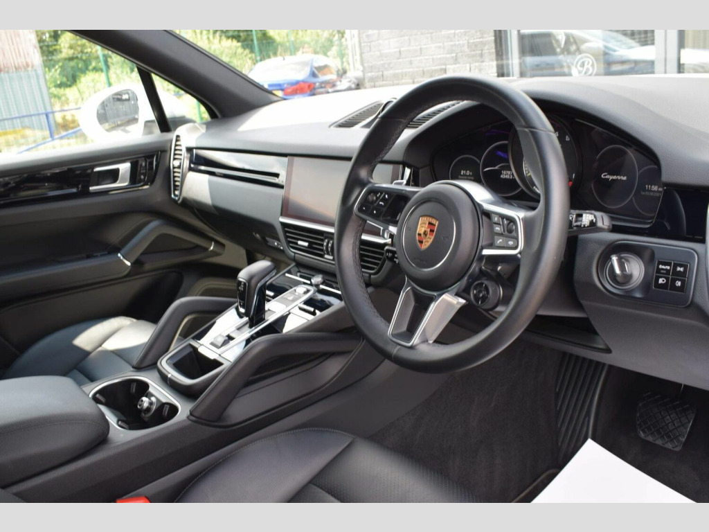 November 2019 69 Porsche Cayenne 3.0 V6 E-Hybrid 14.1kWh Tiptronic S 4WD finished in sought after White with black leather interior and £2445 upgraded 21in Cayenne RS Spyder Design Alloys. Just 16800 miles covered by two owners and first service not yet due. Supplied with two keys and all correct documentation, handbooks, charging cable, manuals etc and presented in fantastic showroom condition inside and out. Very well equipped and fitted with features including: 8-Way Electric Seats, Automatic Tailgate, Brake Calipers with Acid Green Finish, Dual Zone Climate Control, Connect Plus, Cruise Control with Speed Limiter, Digital Radio, Electric Parking Brake, Electrically Adjustable - Folding and Heated Exterior Mirrors, Front Light Module with Position Lights and Direction Indicators in LED Light-Guide Technology, Integrated Porsche 4D Chassis Control, Interior Package - Black High-Gloss Finish, Keyless Engine Start, LED Headlights, Multifunction Sports Steering Wheel with Gearshift Paddles, On-Board Charger with 3.6kW, PASM - Porsche Active Suspension Management, PCM - Porsche Communication Management - Including Online Navigation Module, ParkAssist - Front and Rear with Visual and Audible Warning, Parking Pre-Climatisation, Preparation for Towbar System, Sound System with 10 Speakers, Sport Chrono Package, Three-Dimensional LED Taillights and more. FINANCE FROM 6.9% APR | GTECHNIQ DETAILING & CERAMIC COATINGS | XPEL PAINT PROTECTION FILM