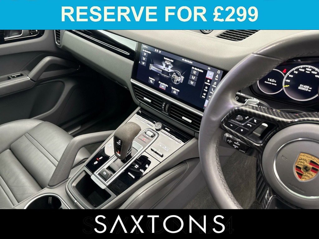 * £11,000 OF OPTIONS *. Panoramic Sunroof, 21in Alloy Wheels - Cayenne Exclusive Design Painted in Black High-Gloss, Adaptive Air Suspension including Porsche Active Suspension Management - PASM, Comfort Seats - Front 14-Way Electric with Memory Package, ParkAssist Including Surround View, Seat Heating - Front and Rear, Tinted LED Taillights Including Light Strip, Sports Tailpipe - Silver, Four-Zone Automatic Climate Control, 7.2 kW On-Board Charger, Heated Windscreen, Heated Steering Wheel, Ambient Lighting, Power Steering Plus, Automatically Dimming Exterior and Interior Mirrors, Door Handles Painted in Black - High-Gloss, Wheel Centres with Full-Colour Porsche Crest, PSCB - Porsche Surface Coated Brake - Calipers in Acid Green.