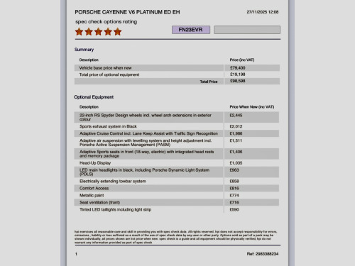 This 2023 Porsche Cayenne 3.0 V6 E-Hybrid 17.9kWh Platinum SPECIAL Edition Coupe is currently available for £92,850 with P/ElecPlug engine and Auto Clutch Manual gearbox. For more information or to arrange a viewing, click here to send us an email using form below.