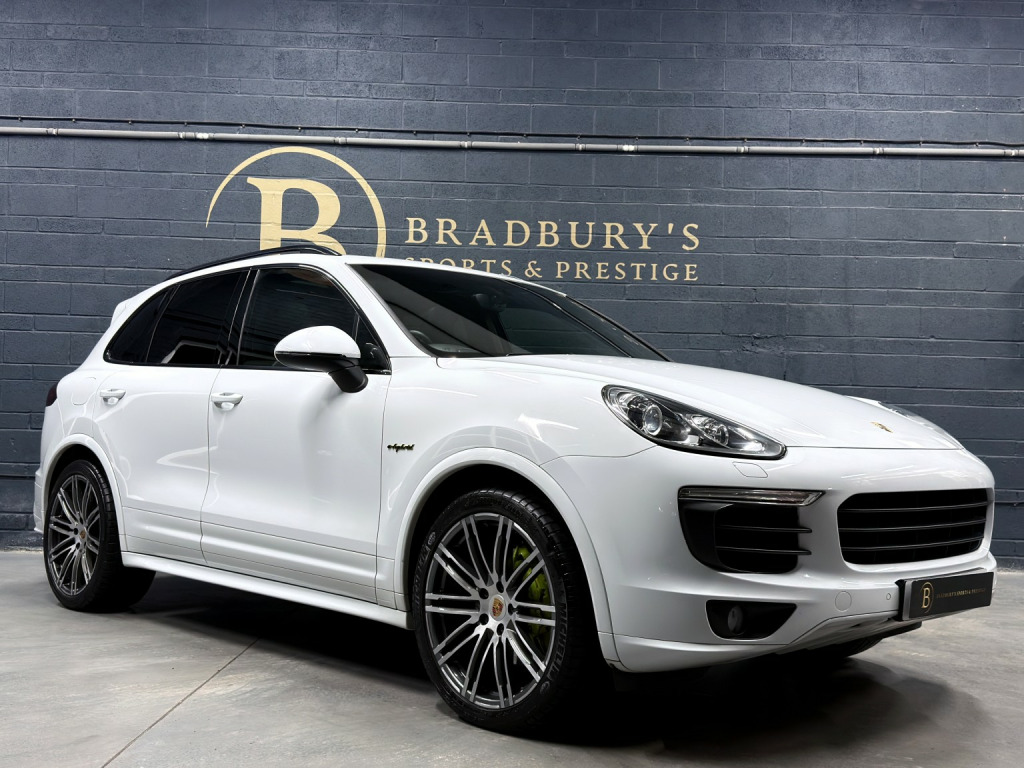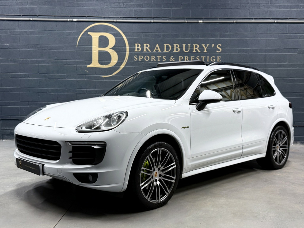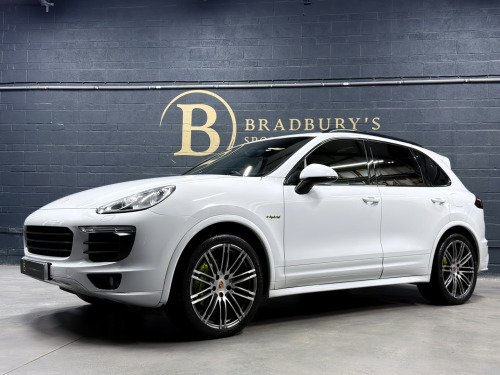 KU67NDB, Bradburys Sports & Prestige are extremely proud to offer this absolutely stunning Porsche Cayenne S E-Hybrid Platinum Edition finished in the beautiful shade of Carrera White Metallic over the stunning black interior leather package and the upgraded 21 inch turbo alloys. This is a beautifully specified vehicle, one of the very best on the market and the car is in truly fantastic condition. The car really is a testament to its 3 previous owners who have clearly proudly cherished and cared for the vehicle impeccably. The Vehicle has a comprehensive full Porsche service history with the latest service and MOT having just been carried out with no expense spared with the vehicle been prepared to the highest standard. , The vehicle has over £12,000 worth of factory fitted options!, , Vehicle registered on the 01/09/2017, 3 Owners from new, Fully service history. MOT until 29/09/2026. The car comes complete with Both Keys, documented service history and the vehicle is fully HPI Clear and Ready to Drive Away Same Day. , Part exchange welcome, Very Competitive Finance Options Available, Viewings strictly by appointment only, Nationwide Delivery Available, Please enquire regarding delivery, Please give us a call on 01484 556 124 to discuss the vehicle with a member of the team who will be happy to help in any way they can.