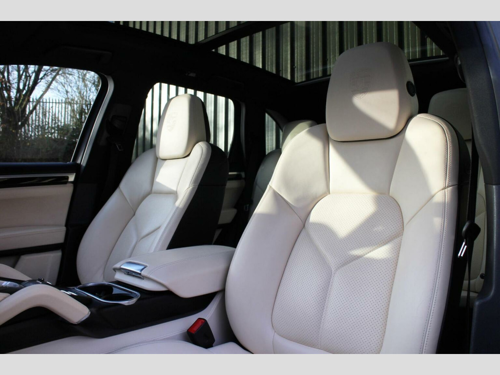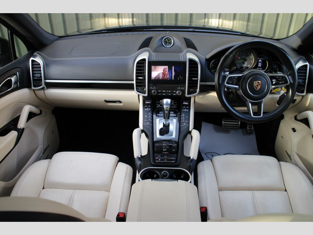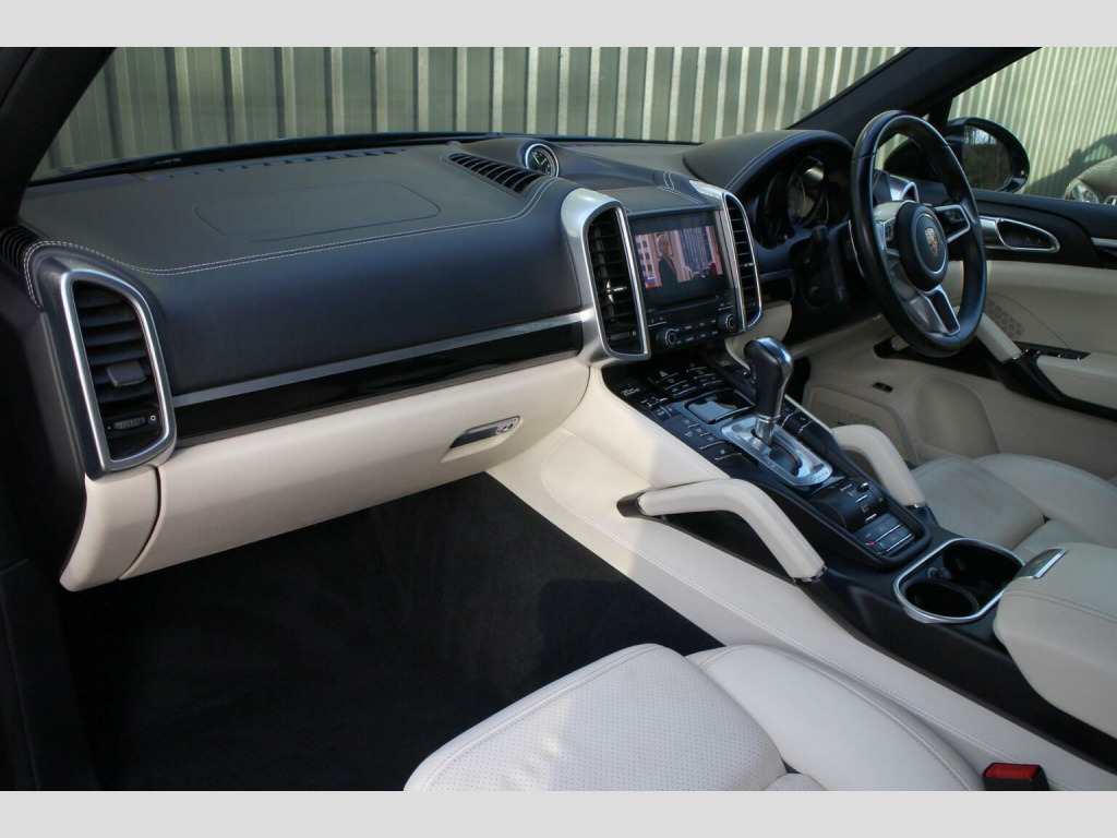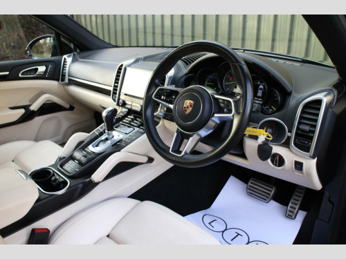 AIR SUSPENSION - COMFORT MEMORY PACKAGE - 2016 66 registered Porsche Cayenne 3.0 V6 E-Hybrid, finished in Jet Black metallic with a beautifully appointed Cream smooth finish leather interior. With only 32,000 miles from new, this outstanding example is presented in pristine condition and boasts a high specification, featuring over £8,000 in factory fitted options. At its heart lies a sophisticated blend of performance and efficiency, enhanced by Porsches acclaimed air suspension system with PASM (Porsche Active Suspension Management), ensuring a refined and adaptable driving experience. Comfort and luxury are elevated further by the Panoramic Roof System, front seat ventilation and heating, Comfort Memory Package and the BOSE Surround Sound System, delivering immersive sound within an exceptionally appointed cabin. Further features include the Porsche Communication Management system with satellite navigation and DVD function, Voice Control and compass display in the instrument cluster and privacy glass and ParkAssist with reversing camera for effortless manoeuvring. Additional highlights include model deletion, monochrome black exterior package and 14-way adaptive seating. Presented in one of Porsches most desirable colour combinations and maintained to an exceptional standard, this Cayenne E-Hybrid represents a rare opportunity to acquire a beautifully specified and remarkably well kept example. ****VIEWING STRICTLY BY APPOINTMENT ONLY - FOR FURTHER INFORMATION REGARDING THIS VEHICLE AND ANY OTHER PREMIUM MARQUE IN STOCK, PLEASE CALL SALES DIRECT. VEHICLE FINANCE SPECIALISTS OFFERING COMPETITIVE PACKAGES AND PART EXCHANGE PRICES****