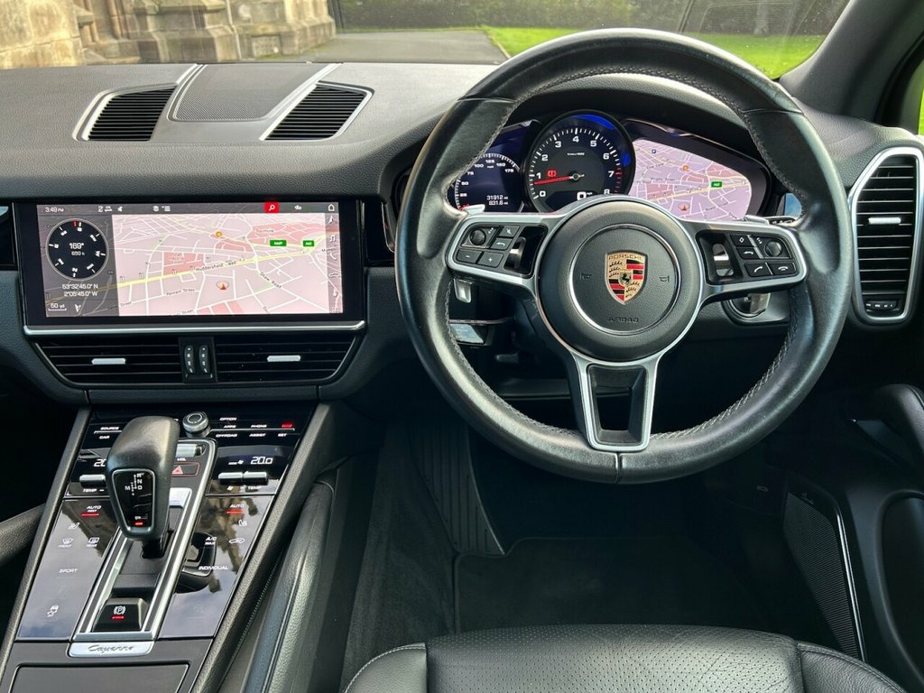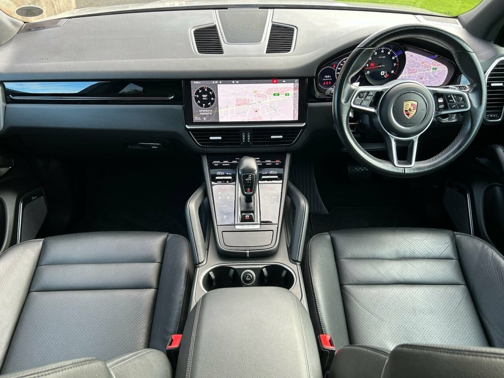 Finished in Crayon Grey with Black Full Leather Heated Electric Seats + Embossed Porsche Logo's. This Superb Porsche Cayenne T V6 has covered just 31,912 miles and comes with a Full Porsche Main Dealer Service History. This four wheel drive SUV is powered by a 3.0 litre petrol engine and meets Euro 6 emission standards. It boasts a Full Dealer Service History and a clear vehicle history check, offering peace of mind. Inside, you'll find luxurious black smooth finish leather upholstery, complemented by a panoramic roof system with an opening sunroof and advanced LED headlights. For your convenience, it features comfort access with keyless entry, allowing for effortless access. Experience superior audio quality with the included Burmester High End 3D Surround Sound System, a premium branded sound system that elevates every journey. The acceleration of this Cayenne is impressive, reaching 0 to 60 miles per hour in just 6.2 seconds, demonstrating its dynamic performance. Furthermore, its low insurance group rating indicates that running costs are more favourable compared to similar vehicles. This Porsche Cayenne T V6 combines sophisticated design with impressive engineering and desirable features. Other Specification Includes: 21 Inch Alloy Wheels with Coloured Wheel Centres, Heated Leather Multi Function Sports Steering Wheel, ACC - Adaptive Cruise Control, Privacy Glass, Remote Power Tailgate, Heated Electric Powerfold Mirrors, Front and Rear Park Distance Control + Porsche Crest Embossed on Headrests - Fr, Heated Steering Wheel, 21in Alloy Wheels - Cayenne Exclusive De, Smooth Finish Leather - Black, Crayon, Burmester High-End 3D Surround Sound Sys, Comfort Access, Panoramic Roof System, Privacy Glass, 19in Alloy Wheels - Cayenne, 2 Integrated Cup Holders each at Front a, 2 USB-C Connectivity and Charge Ports in, 2-Piston Aluminium Monobloc Fixed Calipe, 3-Point Automatic Seat Belts with Pre-Te, 4 Doors with Integrated Side Impact Prot, 4-Point LED Daytime Running Lights, Active Air Intake Flaps, Active Bonnet System, Air Curtains in Wheel Arch Housings, Alarm System with Ultrasonic Interior Se, Aluminium Multi-Link Axle - Front and Re, Apple Carplay a