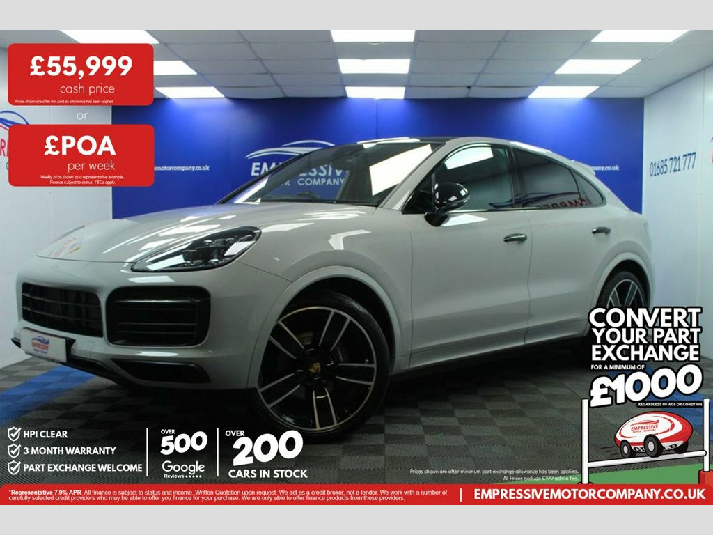 ****CRAYON CAYENNE**** Just in! This Stunning 2022 PORSCHE CAYENNE 3.0T V6 Platinum Edition Coupe 5dr Petrol TiptronicS 4WD Euro 6 (s/s) (340 ps) Finished In Crayon Grey! 44,698 miles - 3.0L V6 petrol - Automatic - 4 wheel drive - Finished in crayon grey - Air suspension - Sport suspension - Quad valved exhaust - 22" diamond cut wheels - Automatic LED headlights - Panoramic sun roof - Powered tailgate - Reverse camera - Parking sensors - Full leather electric seats with passenger and driver memory function - Heated seats - Bose sound system - Touch media screen with sat nav - Bluetooth with apple car play - USB-C - Automatic 2 zone climate control - Traction control - Electric handbrake - Sport mode - Sport+ mode - Cruise control - Speed limiter - Hill descent control - Paddle shift - Voice control - Auto wipers - Electric folding mirrors 2 Integrated Cup Holders each at Front a, 2 USB-C Connectivity and Charge Ports in, 2-Piston Aluminium Monobloc Fixed Calipe, 21in Alloy Wheels - RS Spyder Design in , 3-Point Automatic Seat Belts with Pre-Te, 4 Doors with Integrated Side Impact Prot, 4-Point LED Daytime Running Lights, Active Air Intake Flaps, Active Bonnet System, Air Curtains in Wheel Arch Housings, Alarm System with Ultrasonic Interior Se, Aluminium Multi-Link Axle - Front and Re, Ambient Lighting, Analogue Clock on Dashboard, Apple Carplay and Android Auto, Automatic Climate Control, Automatic Headlight Activation including, Automatic Hold Function, Automatically Dimming Exterior and Inter, B-Pillar Clothes Hook on Driv