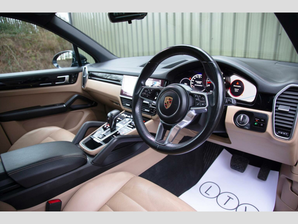 LED MATRIX HEADLIGHTS - SMOOTH HIDE FINISH - 2018 18 registered and finished in the elegant Night Blue Metallic, paired with a beautifully contrasting Mojave Beige smooth leather interior, this Porsche Cayenne 3.0T V6 Tiptronic S presents a rare opportunity to acquire a superbly maintained example. Having covered just 59,000 miles from new and benefitting from only one previous owner, the vehicle remains in immaculate condition throughout. This example is enhanced by an impressive selection of factory options including striking 21 Cayenne Exclusive Design alloy wheels, complete with body coloured wheel arch extensions, give the car a more purposeful stance while maintaining the clean, cohesive lines of the exterior. The panoramic roof system floods the interior with natural light, adding a wonderful sense of space. Advanced lighting technology is provided by LED Matrix headlights incorporating Porsche Dynamic Lighting System (PDLS), delivering exceptional clarity and adaptive illumination. The smooth finish leather upholstery, complemented by a high gloss black interior package, creates a refined, contemporary environment, while heated front seats and automatic climate controlensure year round comfort. Wheel centres featuring the full colour Porsche crest add a subtle yet distinctive finishing touch. Technology and convenience are equally well considered, with Porsche Communication Management (PCM) including the online module and Connect Plus, supported by digital radio for enhanced entertainment. Power Steering Plus offers lighter, more precise manoeuvring at low speeds, while Park and everyday usability are further enhanced by the powered tailgate, cruise control with speed limiter, and the integrated Porsche 4D Chassis Control system. Presented in outstanding condition, this 2018 model year Cayenne combines luxury, practicality and unmistakable Porsche design in equal measure. ***VIEWING STRICTLY BY APPOINTMENT ONLY - FOR FURTHER INFORMATION REGARDING THIS VEHICLE AND ANY OTHER PREMIUM MARQUE IN STOCK, PLEASE CALL SALES DIRECT. VEHICLE FINANCE SPECIALISTS***