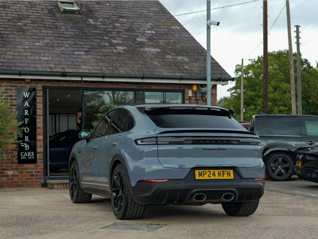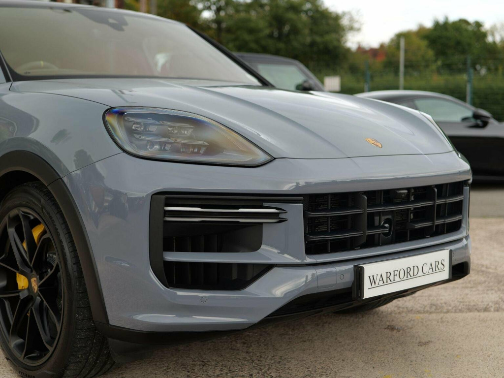 Warford Cars are proud to present this stunning Porsche Cayenne Turbo Coupe Plug-in-Hybrid in Arctic Grey with Black Leather & Alcantara Interior. The car is very well optioned from new with GT Package, Passenger Display, Head Up Display, Porsche Rear Seat Entertainment, Adaptive Cruise Control, Heated Multifunction GT Steering Wheel in Race-Tex with Carbon Inlay, Soft Close Doors, ParkAssist with 360 Cameras, Tinted Rear LED with Animation, Heated Windscreen, Prep for Rear Entertainment, LED Door Courtesy Lights, Sport Chrono Dial in White and Privacy Glass. The car was serviced 05/08/2025 at 19,916 miles and comes with Manufacturers Warranty til March 2027. Viewings Strictly by Appointment Only. Competitive Finance Options Available. Professional GTechniq Accredited Detailing Available. Call directly to arrange a viewing on 07537 165874