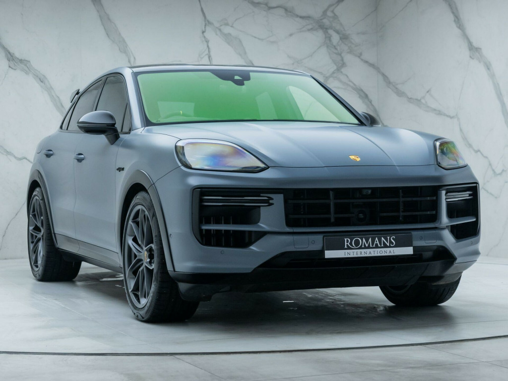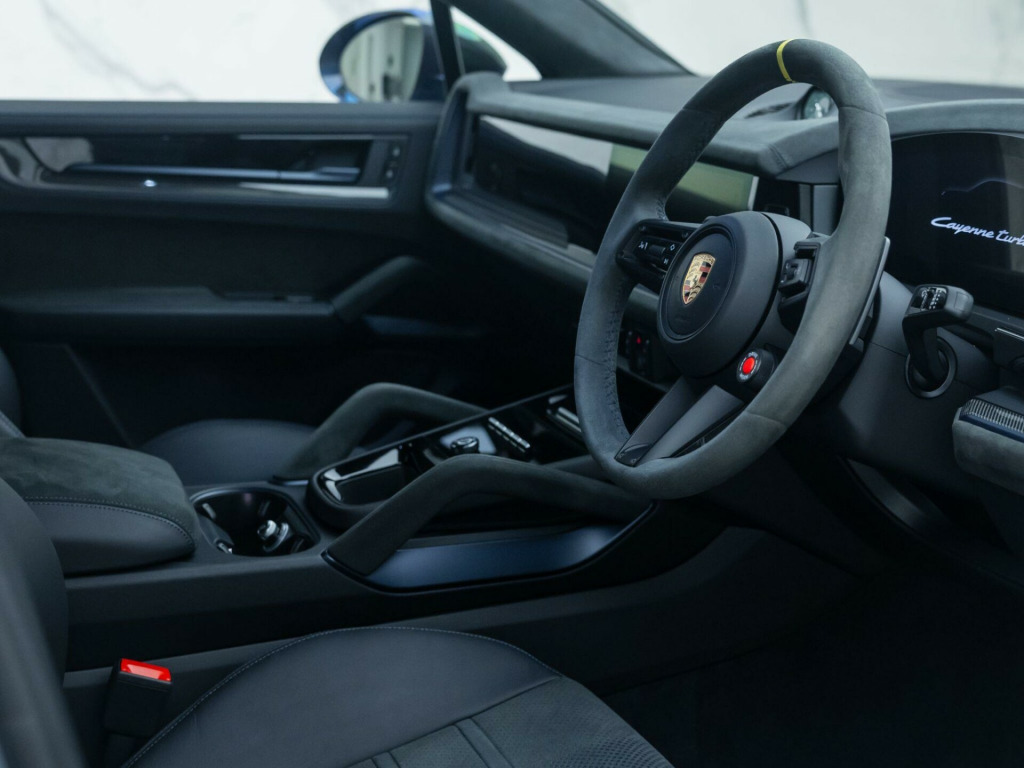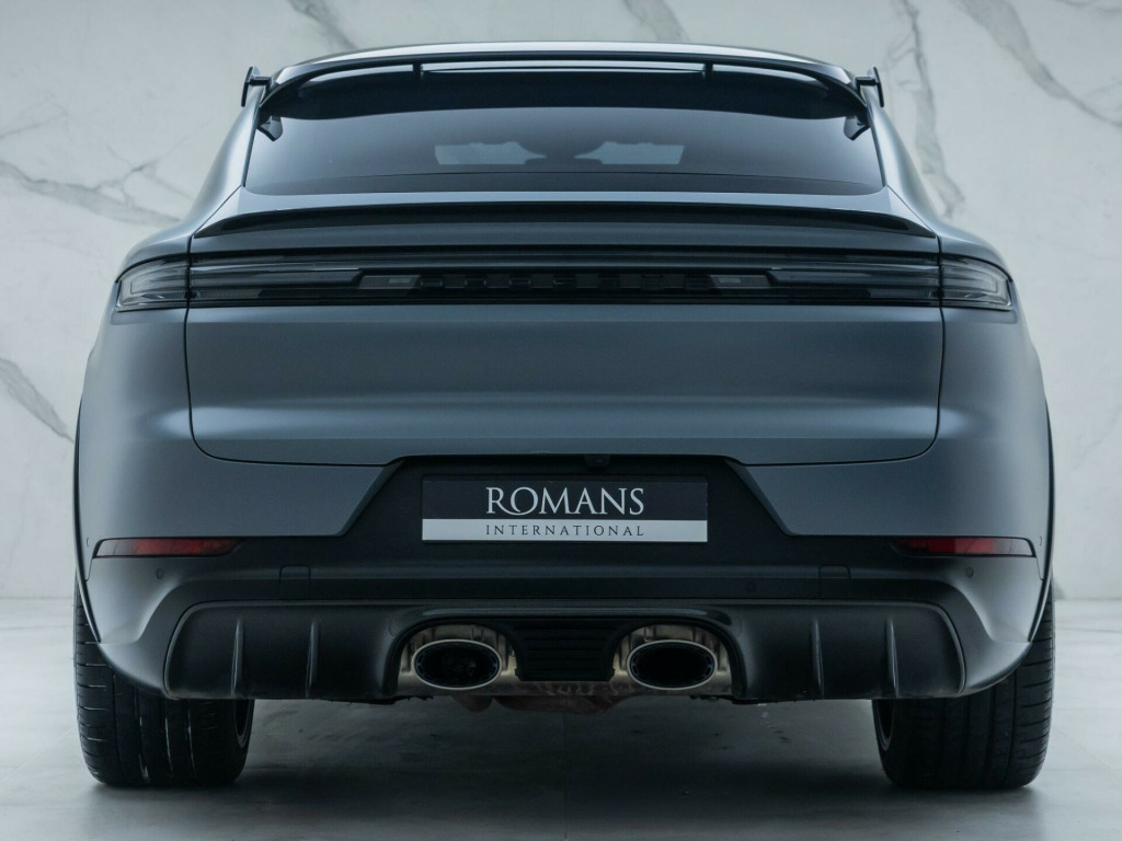 Finished in Arctic Grey Paint with GT Interior Package - Top of the Range Cayenne 'with GT Package' - 1 Owner From New - Porsche Manufacturer’s Warranty until June 2027 - Satin Paint Protection Film (PPF) Applied to Whole Car - UK SuppliedOptional Extras:22-Inch GT Design Wheels in Vesuvius GreyArctic Grey PaintGT Package (Including: Porsche Carbon Ceramic Brakes (PCCB) + Lightweight Carbon Roof + Tinted HD-Matrix LED Headlights + Sport Chrono Package with 'SPORT' Response Button in Red + SportDesign Package in Black + Sports Exhaust System in Titanium with Central Tailpipes)Burmester 3D High-End Surround Sound SystemPorsche Dynamic Chassis Control (PDCC)Rear-Axle Steering8-Way Electric Front Sports Seats with Memory Package4-Zone Automatic Climate ControlSurround View with Active Parking SupportAdaptive Cruise ControlLane Change Assist (Blind Spot Monitoring)Head-Up DisplaySoft-Close DoorsHeated WindscreenSide Airbags in the RearTinted Rear LED Lights with AnimationAcoustically Insulated Laminated Privacy GlassGT Interior Package with Contrast Stitching in Deep Sea BlueAccent Package Deep Sea BlueSport Chrono Stopwatch Instrument Dial & Digital Tachometer in Deep Sea BlueHigh-Gloss Black Brake Calipers'PORSCHE' Logo Painted in High-Gloss Black Including Deletion of Model DesignationSatin Paint Protection Film (PPF) Applied to Whole CarStandard Features:Active Speed Limit AssistAdaptive Air Suspension with Levelling System and Height Adjustment including Porsche Active Suspension Management (PASM)Carbon Interior PackageDriver Awareness DetectionExclusive Design Fuel Filler CapHD-Matrix LED headlightsPorsche Torque Vectoring Plus (PTV Plus)Power Steering PlusSport Chrono PackageWarning and Brake Assist. 22-Inch GT Design Wheels in Vesuvius Grey, Arctic Grey Paint, GT Package, Burmester 3D High-End Surround Sound System, Porsche Dynamic Chassis Control (PDCC), Rear-Axle Steering, 8-Way Electric Front Sports Seats with Memory Package, 4-Zone Automatic Climate Control, Surround View with Active Parking Support, Adaptive Cruise Control, Lane Change Assist (Blind Spot Monitoring), Head-Up Display, Soft-Close Doors, Heated Windscreen, Side Airbags in the Rear, Tinted Rear LED Lights with Animation, Acoustically Insulated Laminated Privacy Glass, GT Interior Package with Contrast Stitching in Deep Sea Blue, Accent Package Deep Sea Blue, Sport Chrono Stopwatch Instrument Dial & Digital Tachometer in Deep Sea Blue, High-Gloss Black Brake Calipers, 'PORSCHE' Logo Painted in High-Gloss Black Including Deletion of Model Designation, Satin Paint Protection Film (PPF) Applied to Whole Car.