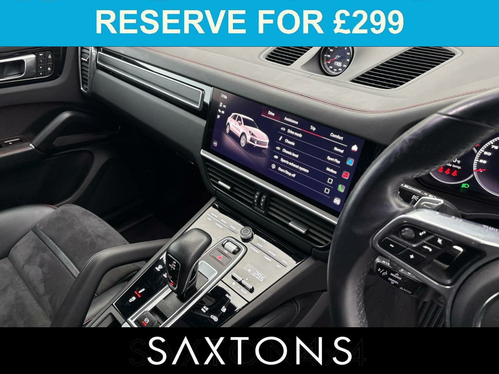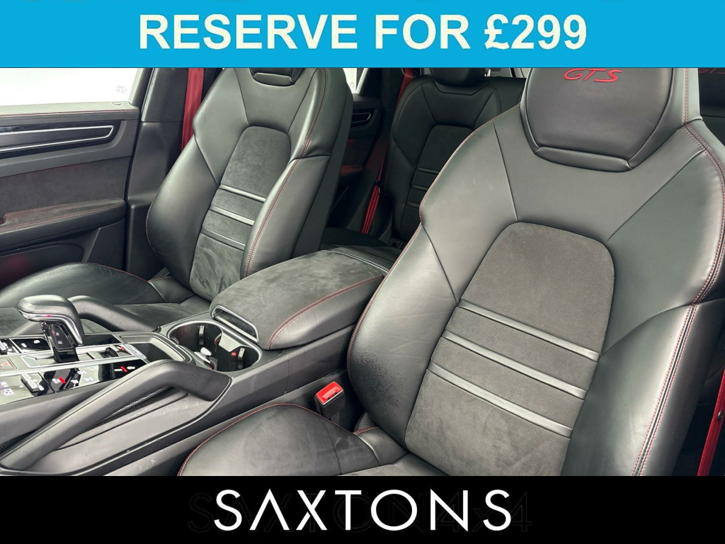* £29,175 OF OPTIONS *. BOSE Surround Sound System, 22in Alloy Wheels - Cayenne Sport Classic in Black - High Gloss, Carbon Design Package, GTS Leather Interior Package - Carmine Red, PDCC - Porsche Dynamic Chassis Control, GTS Adaptive Air Suspension including Porsche Active Suspension Management - PASM, Rear Axle Steering, Panoramic Roof System, Head Up Display, SportDesign Exterior Mirrors Upper Trims Carbon, 18-Way Adaptive Sports Seats - Front with Memory Package, 18-Way Adaptive Sports Seats - Electic, ParkAssist Including Surround View, Sport Chrono Package with Porsche Subsecond Design Clock, Four-Zone Automatic Climate Control, Roof Rails - Black Aluminium, Privacy Glass, PORSCHE Logo Painted in Black Matt and Model Designation Painted in High Gloss Black, Ambient Lighting, Automatically Dimming Exterior and Interior Mirrors, Preparation for Porsche Rear Seat Entertainment, Seats - Heated Front and Rear, Power Steering Plus, Porsche Logo LED Door Courtesy Lights, Chromite Black Metallic.