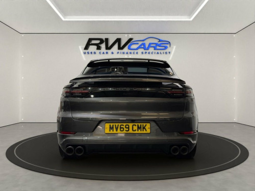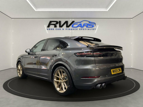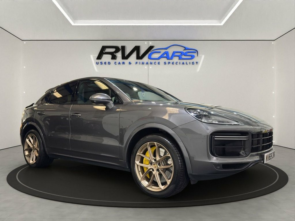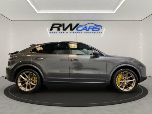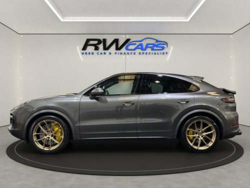 Welcome to this exceptional Porsche Cayenne Turbo Coupe — a performance SUV that shares much of its engineering DNA with the Lamborghini Urus, delivering supercar-level thrills with everyday usability. This example is finished in striking Quarzite Grey, one of the most desirable and eye-catching colours available for the Cayenne. It sits perfectly on GT design alloys in gold, creating a purposeful and aggressive stance that sets it apart from the rest. Equipped with a performance exhaust system, the Cayenne Turbo produces a deep, unmistakable rumble that perfectly complements its twin-turbo V8 powerplant. This is the highly sought-after Coupe model — the sportiest and most desirable variant — offering sleek styling and stronger long-term appeal. The standout and rare option on this vehicle is PDCC (Porsche Dynamic Chassis Control). This advanced active anti-roll system dramatically enhances cornering ability, keeping the car composed and flat through bends — a must-have feature for drivers who want sports car handling in an SUV of this size. For its age and mileage, this vehicle is immaculate throughout. It has been carefully prepared and is fully ready to go to its next owner. The Turbo is surprisingly good on fuel which you on an average journey you can get up to 28MPG A truly special example of a Cayenne Turbo Coupe — combining luxury, performance, rarity, and presence. 2+1 Rear Seat System, 21in Alloy Wheels - Cayenne Turbo in Dar, 3-point Automatic Seat Belts with Pre-te, 4 Doors with Integrated Side Impact Prot, ABS - Anti-lock Brake System, Active Air Intake Flaps, Active Bonnet System, Adaptive Air Suspension including Porsch, Adaptive Sports Seats - 18-Way Electric , Air Curtains in Wheel Arch Housings, Alarm System with Ultrasonic Interior Se, Ambient Lighting, Automatic Climate Control, Automatic Dimming Frameless Interior Mir, Automatic Headlight Activation including, Automatic Hold Function, Automatically Dimming Exterior Mirrors, B-Pillar Clothes Hook on Driver and Pass, BOSE Surround Sound System, Bottle Holders in Door Panels - Front an, Brake