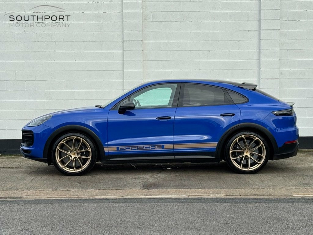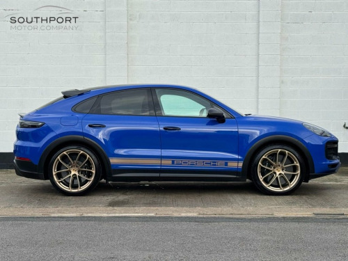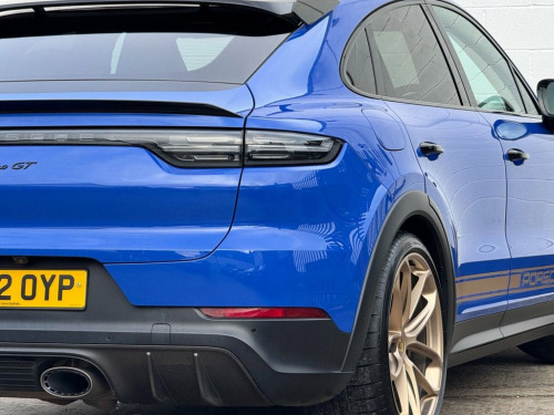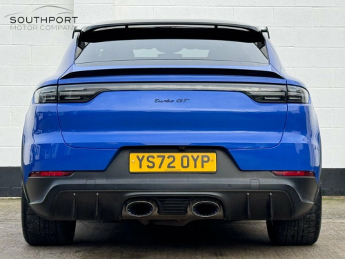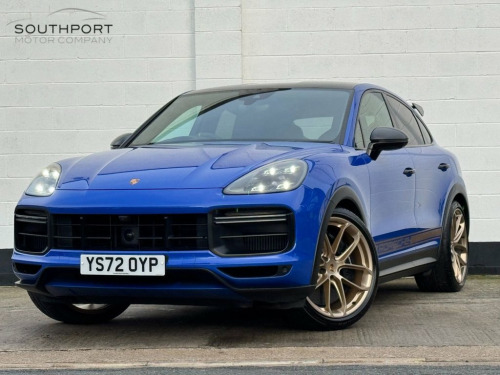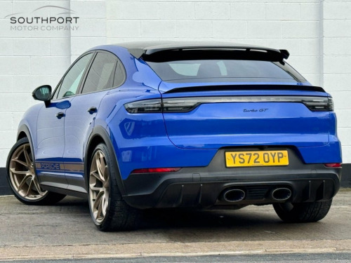 2022 (72) Porsche Cayenne 4.0T V8 Turbo GT Coupe – Nogaro Blue – Full Porsche Service History Presented in striking Nogaro Blue, this 2022 (72) Porsche Cayenne Turbo GT Coupe offers exceptional performance, precision engineering, and an outstanding specification. Backed by a full Porsche service history, this flagship GT model delivers the perfect balance of luxury, technology, and track-focused capability. Key Features & Options Performance & Mechanical • 4.0T V8 Twin-Turbo engine • 8-speed Tiptronic S automatic transmission • All-wheel drive • Porsche Ceramic Composite Brakes (PCCB) • Sport Chrono Package with Stopwatch in Neodyme • Matrix LED Headlights in Black with Porsche Dynamic Light System Plus (PDLS Plus) Exterior • Nogaro Blue exterior finish • GT-specific body styling • Decorative Side Logo in Neodyme • Privacy glass • Soft-close doors • Porsche Logo LED door courtesy light Interior & Comfort • Premium quality interior with GT-specific detailing • Instrument dial in Neodyme • Ambient lighting package • Adaptive Cruise Control including lane keep assist and speed limit indicator • Head-Up Display • Lane Change Assist Technology & Assistance Systems • ParkAssist including Surround View • Burmester High-End 3D Surround Sound System • Advanced digital cockpit • Connected services and navigation Summary Colour to Sample, Porsche Crest on Centre Console Storage , Porsche Logo LED Door Courtesy Lights, PORSCHE Logo Painted in Black Matt and M, Exclusive Design Fuel Filler Cap, Ioniser, Sport Chrono Stopwatch - Compass Instrum, Vehicle Key Painted with Key Pouch in Al, Ambient Lighting, Matrix LED Headlights in Black including, Privacy Glass, Soft Close Doors, ParkAssist Including Surround View, PCCB - Porsche Ceramic Composite Brakes , Tinted LED Taillights, Lane Change Assist, Head Up Display, Adaptive Cruise Control Including Lane K, Burmester High-End 3D Surround Sound Sys, Decorative Side Logo Porsche in Neodyme, 10-Piston Aluminium Monobloc Fixed Calip, 2 Integrated Cup Holders each at F