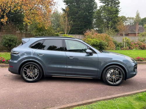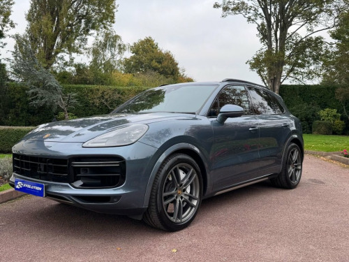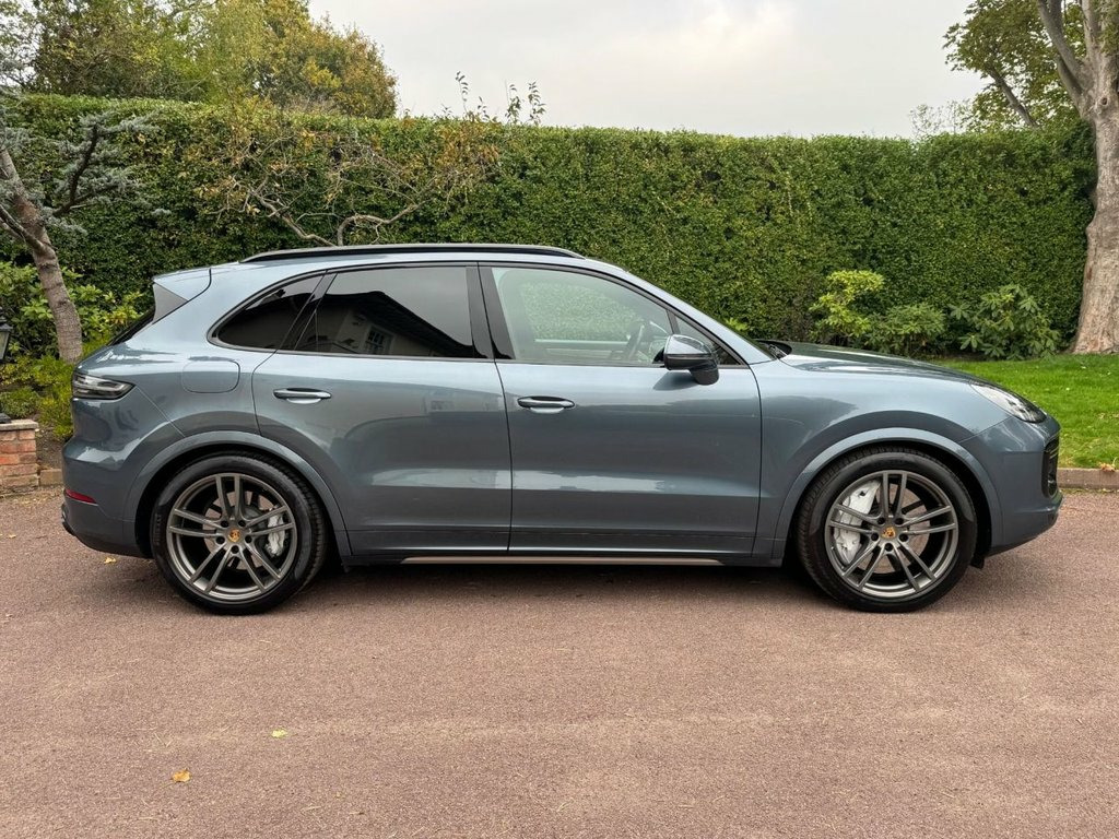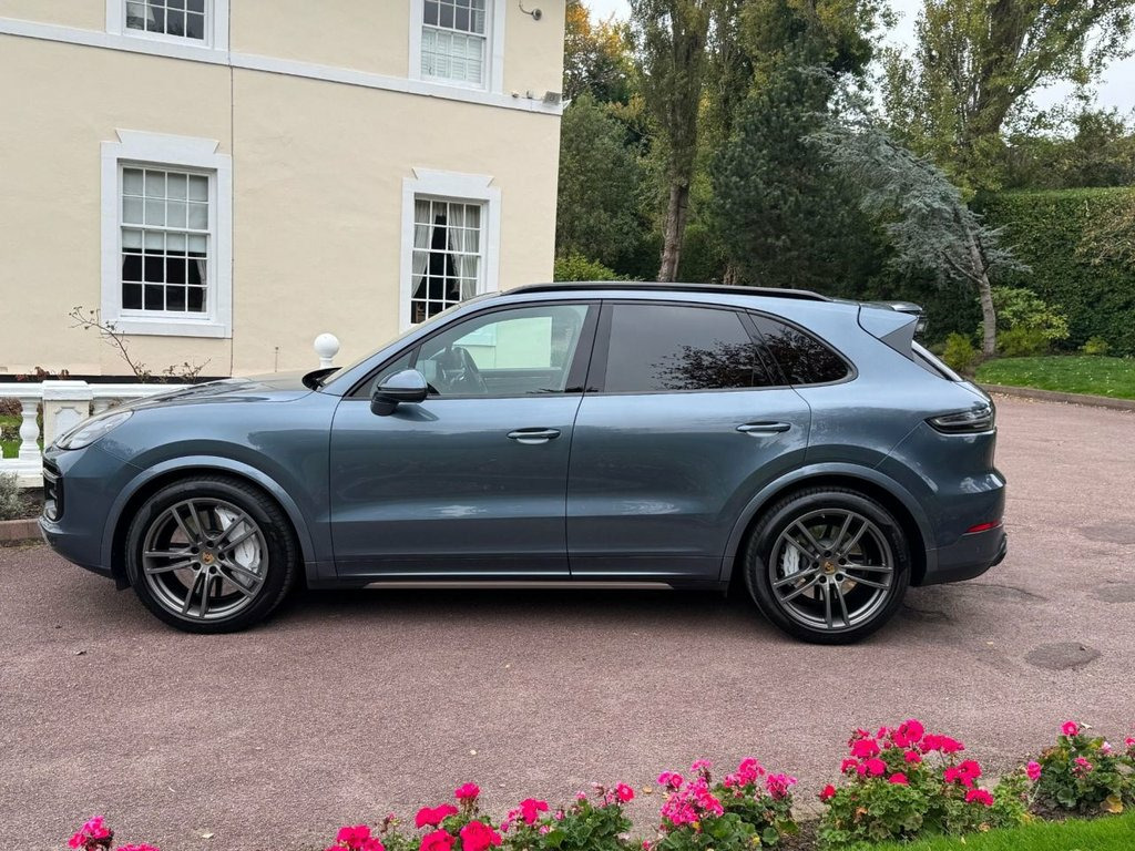 Stunning 2018 (18) Porsche Cayenne Turbo. Finished in Biscay Blue with Full Black Smooth Leather, Huge Specification with only 34500 miles from new with Full Porsche Service History and 1 former keeper with the current owner for the last 6 years. Full Porsche Warranty until end of May 2027. The car has always been under Porsche Warranty and has wanted for nothing. The car has over £23000 in optional extras including - Burmester Hifi, Porsche Dynamic Chassis Control, Panoramic Sunroof, Adaptive Cruise Control With Inno Drive, Electrically Deployable Towbar, 21 Inch Cayenne Turbo Alloys, Sports Tail Pipes, Night View Assist, LED Headlights, OffRoad Package, Chrono Package, Front and Rear Skid Plates, Rear Electric Blinds, 18 Way Sports Seats, Comfort Access, Exterior Package in Black, Aluminium Roof Rails, 4 Zone Climate Control, Ioniser, Ambient Lighting, Rear Side Airbags, Keyless entry, Lane Change assist, Reversing Camera, Crested Headrests, Power Steering Plus. Matching Pirelli P Zero N Rated tyres all round. Next Service Due August 2026. Further Details and Photos available Tinted LED Taillights and Light Strip, Privacy Glass, Exterior Package in Black High Gloss, Power Steering Plus, Lane Change Assist, Comfort Access, Airbags - Rear Side, Electric Roll-Up Sunblind for Rear Side , Roof Rails in Aluminium including Roof T, LED Main Headlights in Black including P, Sport Chrono Package Including Mode Swit, 4-Zone Climate Control, Ambient Lighting, Stainless Steel Panels - Front and Rear, Ioniser, Compass Display on Dashboard, Porsche Crest on Headrests, Smooth Finish Leather - Black, Burmester High-End 3D Surround Sound Sys, 21in Alloy Wheels - Cayenne Turbo Design, Panoramic Roof System, Sports Tailpipes - Black, PDCC - Porsche Dynamic Chassis Control, Off-road