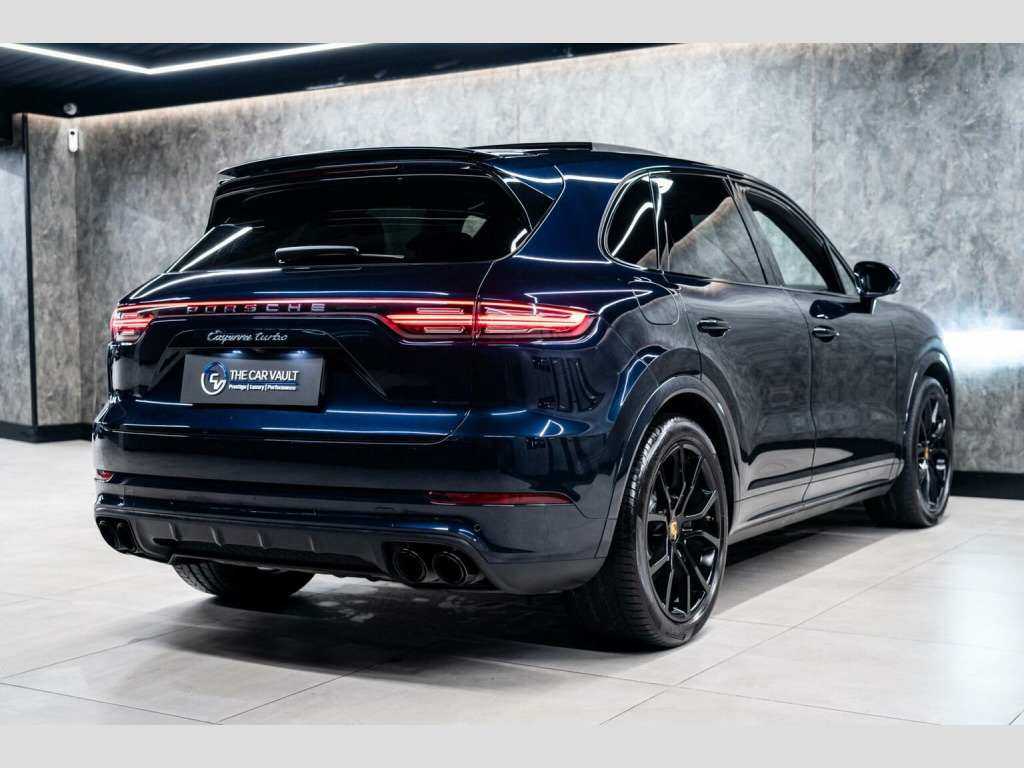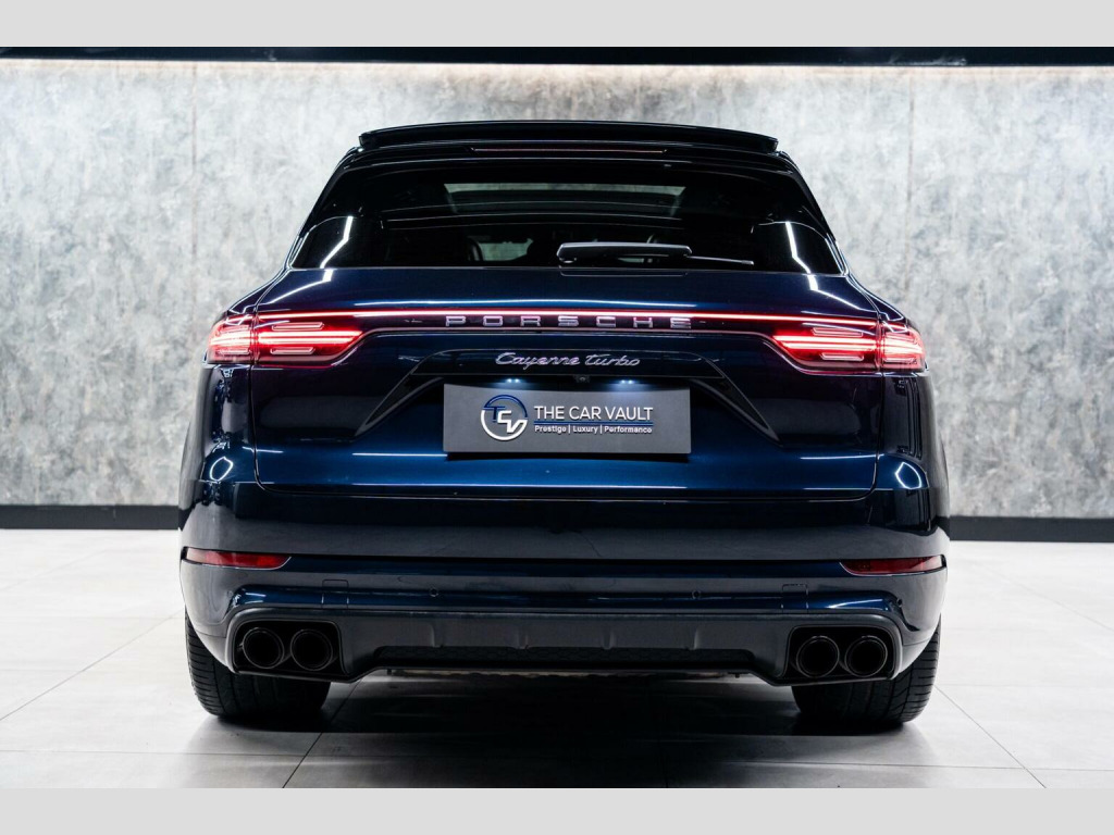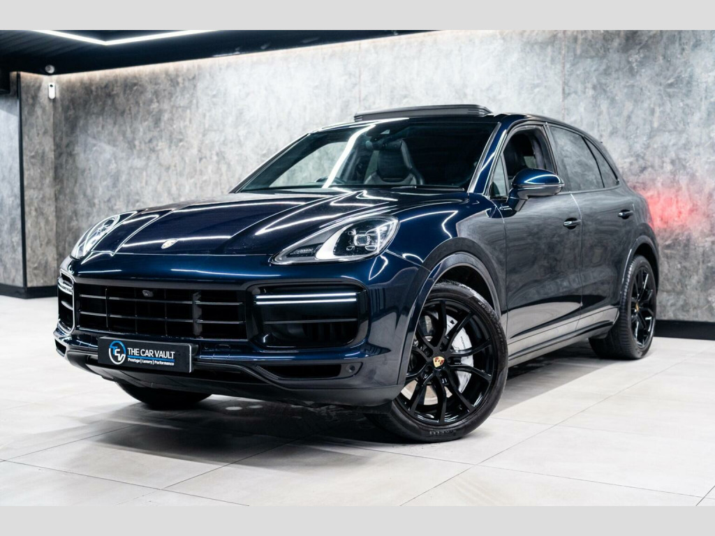 We At The Car Vault Are Proud To Offer This Stunning PORSCHE CAYENNE 4.0T V8 TURBO TiptronicS 4WD EURO 6 Finished In MOONLIGHT BLUE METALLIC Paint, This Vehicle Has a FULL PORSCHE MAIN DEALER SERVICE HISTORY and Comes With 2 ORIGINAL PORSCHE REMOTE KEYS, This PORSCHE CAYENNE TURBO Comes With The Following OPTIONAL SPECIFICATION : Panoramic Glass Sunroof System, LED Headlights including Porsche Dynamic Light System-PDLS, Exterior Package in Black High Gloss, Sports Tailpipes-Black, Surround View, Sport Chrono Package including Mode Switch, Porsche Active Aerodynamics-PAA with Adaptive Roof Spoiler, Power Steering Plus, Adaptive Air Suspension including Porsche Active Suspension Management-PASM, Keyless Go, BOSE Surround Sound System, Adaptive Sports Seats-18 Way Electric with Integrated Headrests with Memory Package, Interior Package-Black High Gloss Finish, Smooth Finish Leather-Black, Front and Rear Seat Heating, LED Interior Lighting Concept, Double Sun Visors for Driver and Front Passenger, Airbags-Rear Side, Roof Lining in Alcantara, Electrically Adjustable Heated Exterior Mirrors-Electrically Retractable, Automatic Tailgate, Privacy Glass, 21in Alloy Wheels-Cayenne Exclusive Design Painted in Black High Gloss, Panroof