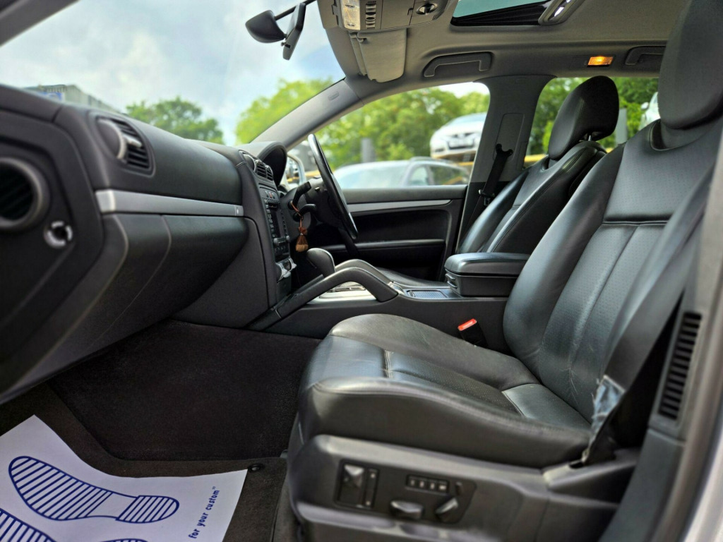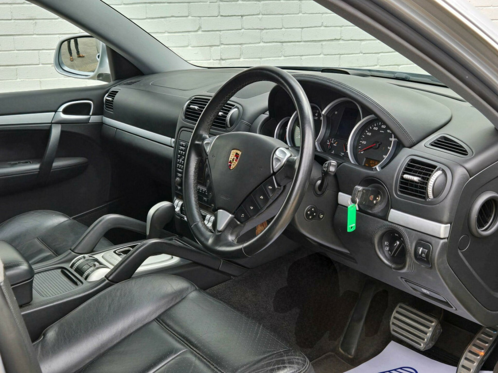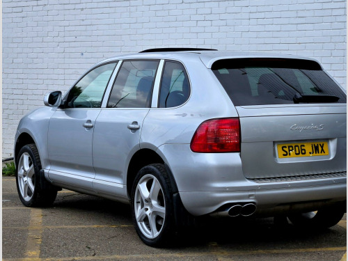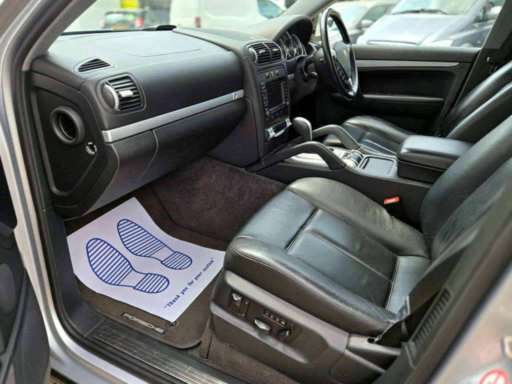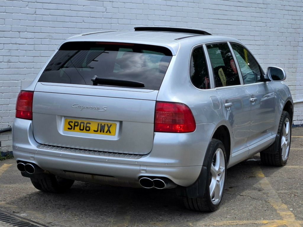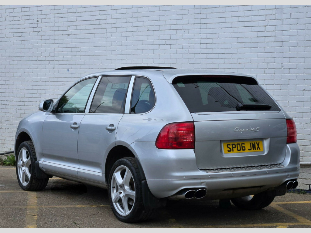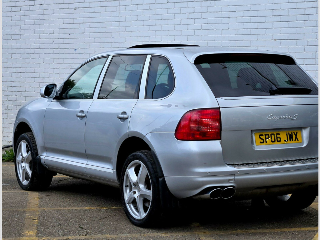 2 OWNERS ++ WE ARE THRILLED TO PRESENT THIS PORSCHE CAYENNE S IN CRYSTAL SILVER METALLIC WITH FULL BLACK SMOOTH FINISH LEATHER PACKAGE ++ FULL SERVICE HISTORY ++ MOT UNTIL 31-07-2026 ++ 2 KEYS ++ ELECTRIC SUNROOF ++ SATELLITE NAVIGATION SYSTEM ++ FACTORY 20-INCH CAYENNE SPORT TECHNO ALLOY WHEELS ++ PARK ASSIST (FRONT & REAR PARKING SENSORS) ++ Bi XENON HEAD LAMPS ++ FACTORY SPORT TAILPIPES ++ FACTORY FULL BLACK LEATHER PACKAGE ++ EXTENDED LEATHER PACKAGE ++ MEMORY PACKAGE ++ (FULLY ADJUSTABLE ELECTRIC MEMORY SEATS ++ ELECTRIC ADJUSTABLE STEERING WHEEL ++ CRUISE CONTROL ++ PRIVACY GLASS ++ REAR PARCEL SHELF ++ DRIVES EXCELLENT ++ HPI CLEAR & CERTIFIED ++ NATIONWIDE DELIVERY AVAILABLE ++ ULEZ COMPLIANT ++++ With only two previous owners, this 2006 Porsche Cayenne S is a great example of a performance SUV. The Cayenne S, with its 4.5L petrol engine and four-wheel drive system, offers a blend of luxury and capability. This particular model comes in the S trim, offering a comfortable and refined driving experience.The Porsche Cayenne S provides an engaging driving experience, accelerating from 0 to 60mph in just 7.2 seconds. This quick acceleration demonstrates how this vehicle delivers performance that sets it apart from other SUVs of its type. The Cayenne is a practical and desirable vehicle. justable steering column/wheel, air bag driver, air bag passenger, air bag side, air-conditioning (automatic), alarm, alloy wheels, anti-lock brakes, central door locking, centre rear seat belt, electric windows (front/rear), head air bags, immobiliser, in car entertainment (radio/cd), mirrors external, power-assisted steering, seat height adjustment (electric driver/passenger), seat lumbar support, seats electric (driver/passenger), spare wheel, speakers, upholstery leather, electric slide/tilt sunroof, 20in cayenne sport techno alloy wheels, bi-xenon lighting with dcscl, parkassist at front and rear, 3-spoke multi-function steering wheel in leather, full leather interior, privacy glass, tyre-pressure monitoring system, metallic paint, cruise control