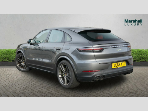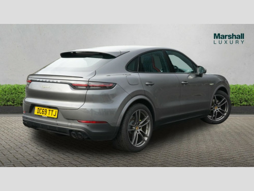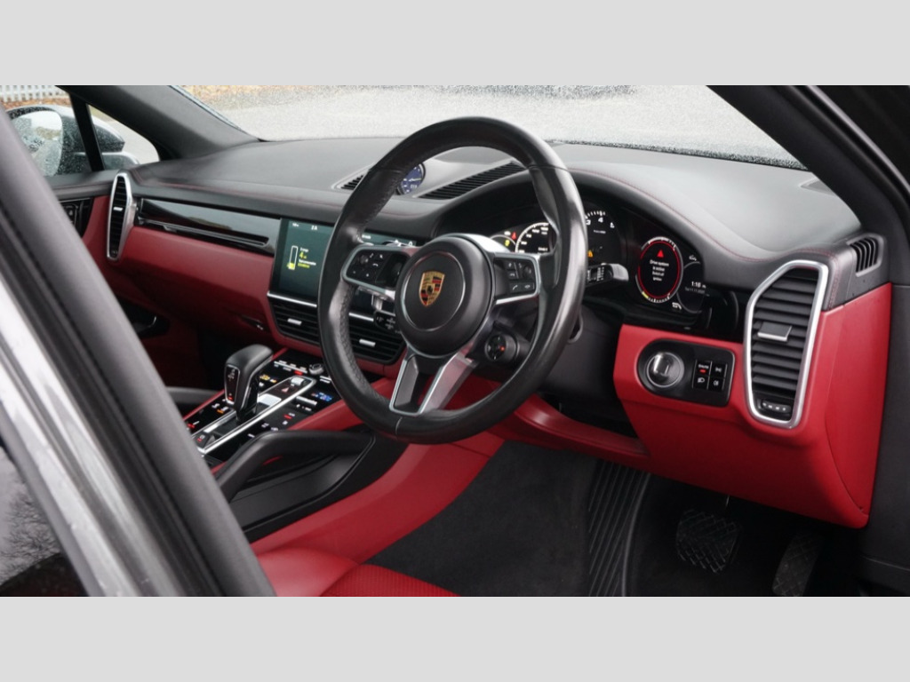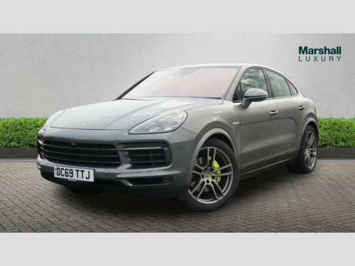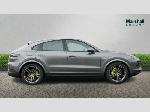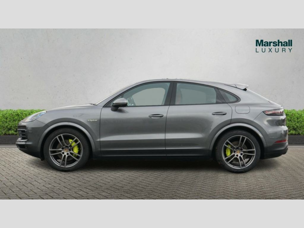 Porsche Cayenne E-Hybrid 5dr Tiptronic S Auto start/stop function and coasting, Brake pad wear indicator warning light, Central analogue rev counter with black dial face, power meter and pointers in acid green, Driver personalisation for climate, audio and communication, assistance systems and other customisable car systems, Instrument cluster with two high-resolution displays, Porsche Communication Management (PCM) including online navigation, bluetooth, media storage and voice control system, Power steering plus, Power tailgate, Vehicle electrical system recuperation, Warn and Brake Assist, 75 litre fuel tank, Aluminium cylinder heads and engine block, Charge port, Direct fuel injection (DFI), Front and rear aluminium multi link axles, Lightweight battery, Panoramic roof with fixed glass panel, Power electronics, battery manager and electrically powered auxiliary units, Supply cable for domestic electrical socket, Supply cable for industrial electrical outlet in blue (230V, 32A, 3-pin), Turbocharger with twin scroll turbine, VarioCam Plus, Water cooled with thermal management, Connect Plus with Apple CarPlay, wireless internet access, Carfinder, Remote Vehicle Status and Remote Services, DAB Digital radio, Two USB charge ports in rear compartment, Two USB charging and connectivity ports in the front centre console storage compartment, Active air intake flaps, Air intake slats with inlays in high gloss Black, Automatic headlight activation including welcome home functionality, Bumper system with high strength cross members and two deformation elements + Two receptacles with screw threads towing lug + onboard tool kit, E-Hybrid logo on front wings with acid green border, Electrically adjustable, folding and heated exterior mirrors, aspherical on drivers side including courtesy lights, Extensive aerodynamic underbody protection, Four point signature LED daytime running lights, Front end with integrated air intakes and airblades for the side air intakes, Front light modules including position lights and direction indicators in LED light guide technology, Front windscreen wipers with two speeds, intermittent wipe and rain sensor, Fully galvanised steel / aluminium hybrid lightweight bodyshell and Aluminium bonnet, tailgate, doors, side panels, roof and front wings, Heated rear window with automatic switch off, High gloss silver model designation on tailgate with acid green border, LED High level third brake light, Porsche active aerodynamics (PAA) with adaptive roof spoiler, Porsche logo integrated into rear taillight strip, Preparation for the roof transport system, Towbar preparation, Active carbon fine dust filter, Charge air cooling, Cloth hook b-pillar, Driver/passenger sunvisors and illuminated vanity mirrors, Elevated centre console with handles, Fixed luggage compartment cover, Front and rear bottle holders, Isofix fastening system for child seats on outer rear seats, LED interior light with switchoff delay function, footwell + glove compartment light, ashtray + ignition lock illumination, front + rear reading light, Manual height adjust for driver and front passenger seat belt, Mobile charger including transport case and basic wall mounting bracket and Cable connection between control unit and vehicle (4.5m), Parking pre-climatisation, Sports style rear seats - 2 way headrests,40:20:40 split folding backrest manual angle adjust, centre storage tray + deployable armrest + cupholders, Storage compartments - Cooled glove compartment, front centre console, door and map pockets on front seat backrests + side luggage compartment, Three 12V power sockets - front below the glove compartment, centre console and at side of luggage compartment, Two integrated cup holders in front and two cupholders in rear centre armrest, Sport chrono pack - Cayenne, 3 point automatic seatbelts with front and outer rear seats pretensioners and front force limiter, 4 piston aluminium monobloc fixed caliper brakes at rear and internally vented brake discs, 6-piston aluminium monobloc fixed caliper brakes at front, internally vented brake discs, ABS, Active bonnet, Auto hold function, Brake discs with diameter 360 mm at front, 358 mm at rear, Curtain airbags along roof frame and side glazing, Electronic parking brake, Front and rear seat belt warning, Front passenger airbag deactivation function for front seat mounting of child seat, Front side airbags integrated into seat, Full size driver and front passenger airbags, Knee driver and passenger airbags, Multi-Collision braking, Porsche hill control (PHC), PTM (Porsche Traction Management), Rollover detection for activation of curtain airbags and seat belt pretensioners, Side impact protection in doors, Tyre pressure monitoring system, Vehicle stability system and Porsche stability management (PSM) including ASR, ABD, MSR, Trailer stability management and expanded PSM SPORT mode, Alarm system with ultrasonic interior sensor and two stage locking, Engine immobiliser with key transponder, Keyless Go, Keyless Start, Porsche vehicle tracking system (VTS), Remote central locking, Air curtains in wheel arch housings, Staggered tyre fitment with wider section rear tyres, Tyre sealing compound and electric inflator