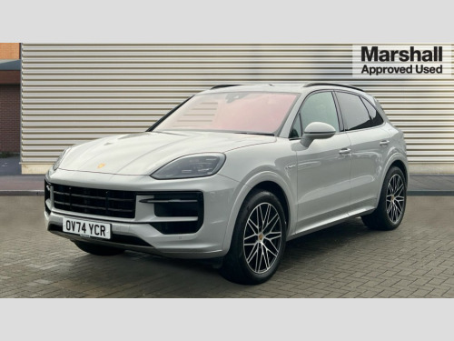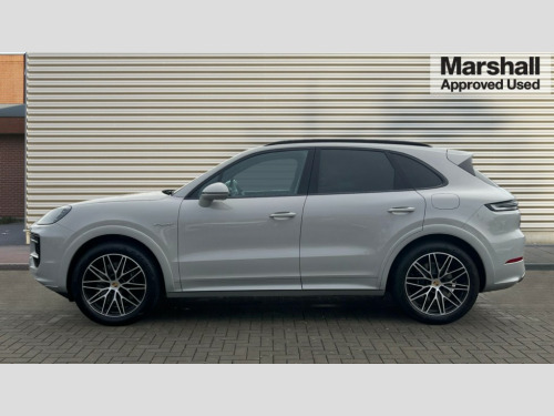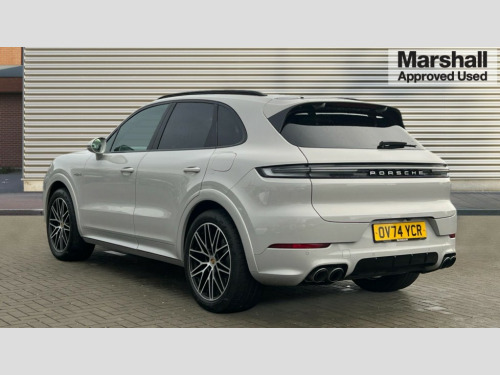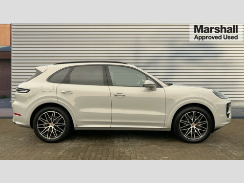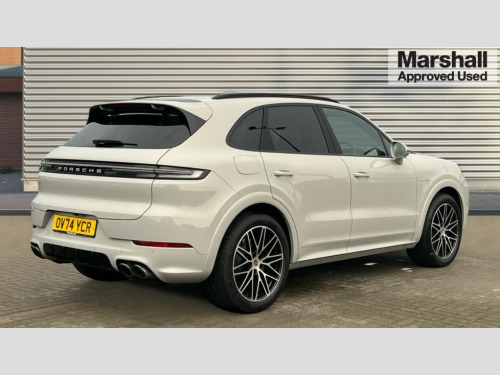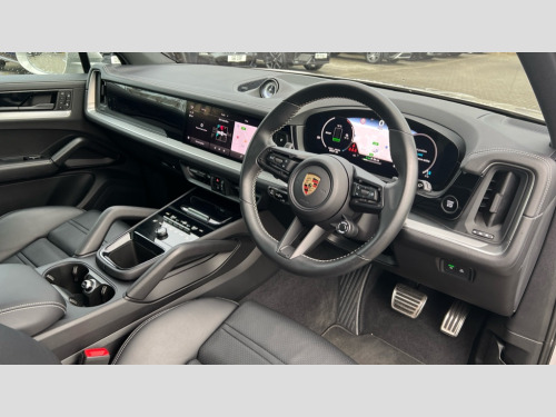 Porsche Cayenne E-Hybrid 5dr Tiptronic S Active parking assist and 360 camera, Active speed limit assist, Android Auto, Apple car play, Brake pad wear indicator, Central analogue rev counter with black dial face, power meter and pointers in acid green, Driver personalisation for climate, audio and communication, assistance systems and other customisable car systems, Emergency call service, Energy recuperating braking system, High resolution 12.3-inch touchscreen display in full HD resolution, Individual mode for individual selection of vehicle drive settings, Instrument cluster with 12.6" curved display, Instrument cluster with two high-resolution displays, Mobile phone preparation with Bluetooth interface for telephone and music, Mode switch, Porsche Communication Management (PCM) including online navigation module, mobile phone preparation, audio interfaces and voice control system, Power steering plus, Power tailgate with gesture control, Reversible occupant protection measures, Smartphone integration, Speed limit indicator, Vehicle electrical system recuperation, Warn and brake assist including pedestrian protection, 32A 230V blue industrial supply cable and basic wall mount, 70 litre fuel tank, 8 speed automatic gearbox, Aluminium cylinder heads and engine block, Direct fuel injection (DFI) with central injector position, Front and rear aluminium multi link axles, Gasoline particulate filter, Mobile charger 7.2 kW and on board AC charger with 11 kW, Mode 3 charging cable, Power electronics, battery manager and electrically powered auxiliary units, Sport mode, Standard charging cable length, Starter battery, Supply cable for domestic electrical socket (10A), Turbocharger, VarioCam Plus, Water cooled with thermal management, AM radio, Digital radio, Fast charging two USB-C PD connectivity and charging port in front storage compartment, Smartphone compartment with wireless charging, Two USB-C PD charging ports in the rear, Active air intake flaps, Aluminium roof, Auto dimming interior + exterior mirrors, Automatic headlight activation including welcome home functionality, Bumper system with high strength cross members and two deformation elements + Two receptacles with screw threads towing lug + onboard tool kit, Deletion of GTS logo on sideskirt inlays, Door handles painted in exterior colour, E-Hybrid logo on front wings with border in black, Electric windows + anti trap protection + one touch open/close drivers side, Electrically adjustable, folding and heated exterior mirrors, aspherical on drivers side including courtesy lights, Extensive aerodynamic underbody protection, Exterior mirror lower trims including mirror base in black, Four point signature LED daytime running lights, Front end with integrated air intakes and airblades for the side air intakes, Front light modules including position lights and direction indicators in LED light guide technology, Front windscreen wipers with two speeds, intermittent wipe and rain sensor, Fully galvanised steel / aluminium hybrid lightweight bodyshell and Aluminium bonnet, tailgate, doors, side panels, roof and front wings, Heated rear window with automatic switch off, LED High level third brake light integrated into roof spoiler, Lower valance, PORSCHE' lettering integrated in tailgate strip, Rear diffusor in louvered design, Rear side wing doors, Rear window wiper with intermittent function and washer jet, Right fuel filler cover and left charging port cover, 3 seat bench in 2nd row, 4-way headrests front/2-way headrests rear, Ambient lighting, B-pillar clothes hooks on driver and passenger's side, Charge air cooling, Deletion of turbo S logo embossed on headrests, Door interior with decorative surfaces and accent trims, Double sun visors for driver and front passenger, Electric sound, Elevated centre console with handles, Five seats rear seat system with two comfort outer seats and a central seat, Front and rear bottle holders in door panels, Front centre armrest, Heated front seats, Illuminated make-up mirror in sun visors, Isofix fastening system for child seats on outer rear seats, Leather door panel and central armrests, Leather gear selector, LED interior light with switchoff delay function, footwell + glove compartment light, ashtray + ignition lock illumination, front + rear reading light, Manual height adjust for driver and front passenger seat belt, Manual steering column with angle and reach adjustment, Particle/pollen filter with active carbon filter, PM 2.5 fine dust filtering, Rear seat split folding design 40:20:40,Fold out centre armrest with integrated cup holder,manual fore/after adjust and backrest angle adjust, Retractable roller luggage compartment cover in detachable cassette, Single front passenger seat, Soft close doors, Storage compartments - Cooled glove compartment, front centre console, door and map pockets on front seat backrests + side luggage compartment, Three 12V power sockets - front below the glove compartment, centre console and at side of luggage compartment, Two integrated cup holders in front and rear with variable diameter, Driver memory pack - Cayenne, 3-point automatic seatbelts with front and outer rear seats pretensioners and front force limiter with 3-point automatic seatbelt for rear centre seat, 4 piston aluminium monobloc fixed brake calipers at rear, 6 piston aluminium monobloc fixed caliper brakes at front, Active bonnet, Auto hold function, Brake discs with diameter 390 mm at front, 358 mm at rear, Curtain airbags along roof frame and side glazing from the A-pillar to the C-pillar, Distance warning, Electronic parking brake, Front passenger airbag deactivation function for front seat mounting of child seat, Front side airbags integrated into seat, Full size driver and front passenger airbags, Knee driver and passenger airbags, Mounting points on passenger seat for ISOFIX child seat mounting system, Multi-Collision braking, Porsche hill control (PHC), PTM Porsche Traction Management activ