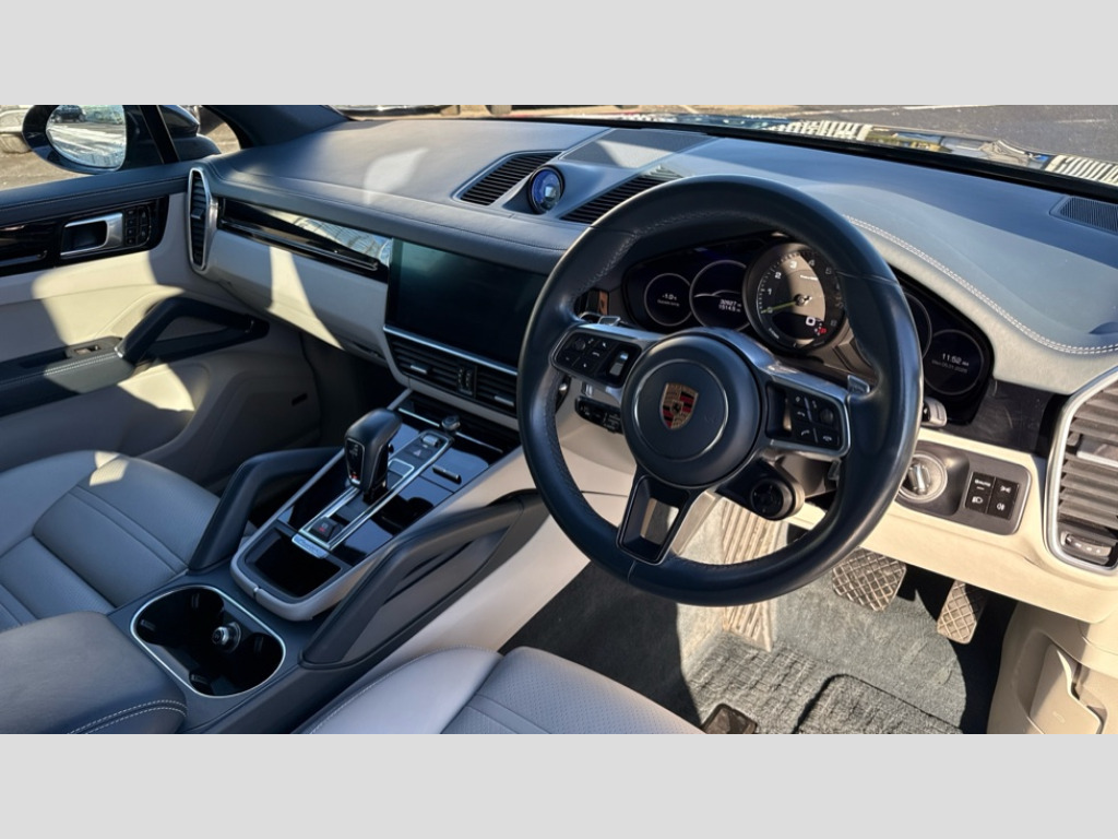 Porsche Cayenne E-Hybrid 5dr Tiptronic S Acoustic and optical parking system - front and rear, Automatic tailgate opening, Brake pad wear indicator warning light, Central analogue rev counter with black dial face, power meter and needles in acid green, Driver personalisation for climate, audio and communication, assistance systems and other customisable car systems, External temperature gauge, Instrument cluster with two high-resolution displays, Oil temperature gauge, On board computer, Porsche Communication Management (PCM) including online navigation module, mobile phone preparation, audio interfaces and voice control system, Service interval indicator, Vehicle electrical system recuperation, Warn and Brake Assist, Aluminium cylinder heads and engine block, Charging cable for household socket, Charging cable for industrial socket, Direct fuel injection (DFI), Front and rear aluminium multi link axles, Gasoline particulate filter, Porsche Charging Dock for the Porsche Universal-Charger (AC), Steel spring suspension, Supply cable for domestic electrical socket, Supply cable for industrial electrical outlet in blue (230V, 32A, 3-pin), Turbocharger with twin scroll turbine, VarioCam Plus, Water cooled with thermal management, 2x SD card slot, Auxiliary input socket, Connect plus incl Apple CarPlay, 4G/LTE communication module with SIM card reader, wireless internet access and Porsche connect services, DAB Digital radio, Two USB charge ports in rear compartment, Two USB charging and connectivity ports in the front centre console storage compartment, Active air intake flaps, Brushed stainless steel twin exhaust pipes, Bumper system with high strength cross members and two deformation elements + Two receptacles with screw threads towing lug + onboard tool kit, Driving light assistant including automatic coming home lights, E-Hybrid logo on front wings with acid green border, Electric windows + anti trap protection + one touch open/close drivers side, Electrically adjustable, folding and heated exterior mirrors, aspherical on drivers side including courtesy lights, Extensive underbody protection, Front end with integrated air intakes and airblades for the side air intakes, Front light modules including position lights and direction indicators in LED light guide technology, Front windscreen wipers with two speeds, intermittent wipe and rain sensor, Fully galvanised steel / aluminium hybrid lightweight bodyshell and Aluminium bonnet, tailgate, doors, side panels, roof and front wings, Heat insulating tinted glass, Heated rear window with automatic switch off, High gloss silver model designation on tailgate with acid green border, LED High level third brake light integrated into roof spoiler, LED main headlights including daytime running lights with 4-point LED spotlights, Porsche logo integrated into rear taillight strip, Rear apron with diffuser optic in black, Rear spoiler, Rear window wiper with intermittent function and washer jet, Silver side window trims, Tailgate with integrated roof spoiler in exterior colour, Towbar preparation, 3 Pin charging cable, 3 x 12V power sockets, Active carbon fine dust filter, Adjustable headrests (except centre rear), Adjustable rear seats, Charge air cooling, Cloth hook b-pillar, Double sun visors for driver and front passenger, Driver/passenger sunvisors and illuminated vanity mirrors, Elevated centre console with handles, Five seats rear seat system with two comfort outer seats and a central seat, Front and rear bottle holders, Front centre armrest, Height/reach adjustable steering column, Illumination of luggage compartment, Isofix fastening system for child seats on outer rear seats, LED interior light with switchoff delay function, footwell + glove compartment light, ashtray + ignition lock illumination, front + rear reading light, Mobile charger including transport case and basic wall mounting bracket and Cable connection between control unit and vehicle (4.5m), Parking pre-climatisation, Plastic pedal pads, Rear centre armrest with storage compartment, Rear seat split folding design 40:20:40,Fold out centre armrest with integrated cup holder,manual fore/after adjust and backrest angle adjust, Retractable, flexible luggage compartment cover in removable case, Storage compartments - Cooled glove compartment, front centre console, door and map pockets on front seat backrests + side luggage compartment, Two integrated cup holders in front with variable diameter, 4 piston aluminium monobloc fixed caliper brakes at rear and internally vented brake discs, 6-piston aluminium monobloc fixed caliper brakes at front, internally vented brake discs, Acid green brake calipers, Active bonnet, Auto hold function, Brake discs with diameter 360 mm at front, 358 mm at rear, Curtain airbags, Drivers knee airbag, EDC, Electronic parking brake, ESP, Front passenger airbag deactivation function for front seat mounting of child seat, Front side airbags integrated into seat, Full size driver and front passenger airbags, Manual height adjustment belt deflector for driver and front passenger, Manual passenger airbag deactivation function, Multi-Collision braking, Porsche hill control (PHC), PTM (Porsche Traction Management), Rollover detection for activation of curtain airbags and seat belt pretensioners, Seatbelt warning device for driver and front passenger seats, Side impact protection in doors, Tyre pressure monitoring system, Vehicle stability system, Porsche stability management (PSM) including ABS, ASR, ABD, MSR and trailer stability management, Alarm system with ultrasonic interior surveillance, Electronic transponder immobiliser, safe lock system, Keyless Go, Keyless start, Porsche vehicle tracking system (VTS), Remote central locking, Silver air inlets, Air curtains in wheel arch housings, Tyre air compressor, Tyre sealing compound and electric inflator