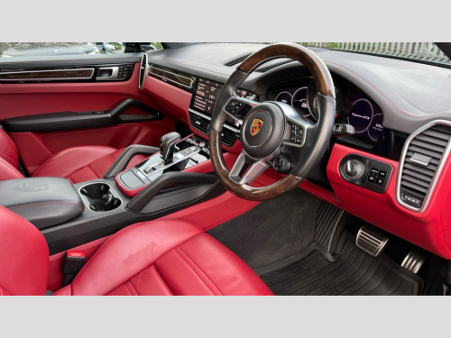 Porsche Cayenne GTS 5dr Tiptronic S Auto start/stop function and coasting, Brake pad wear indicator, Central analogue rev counter with black dial face and GTS logo, Driver personalisation for climate, audio and communication, assistance systems and other customisable car systems, Instrument cluster with two high-resolution displays, Porsche Communication Management (PCM) including online navigation module, mobile phone preparation, audio interfaces and voice control system, Power steering plus, Power tailgate, Vehicle electrical system recuperation, Warn and Brake Assist, 8 Speed Tiptronic S, 90 litre fuel tank, Adaptive cylinder control, Aluminium cylinder heads and engine block, Direct fuel injection (DFI), Front and rear aluminium multi link axles, Lightweight battery, Panoramic roof with fixed glass panel, Porsche Torque Vectoring Plus (PTV Plus), Twin turbochargers with twin stroll turbine, VarioCam, Water cooled with thermal management, Connect plus incl Apple CarPlay, 4G/LTE communication module with SIM card reader, wireless internet access and Porsche connect services, Digital radio, Two USB charge ports in rear compartment, Two USB charging and connectivity ports in the front centre console storage compartment, Active air intake flaps, Automatic headlight activation including welcome home functionality, Bumper system with high strength cross members and two deformation elements + Two receptacles with screw threads towing lug + onboard tool kit, Door handles painted in exterior colour, Door lower cladding trim in exterior colour, Exclusive tinted LED tail lights with three dimensional lighting graphic including light strip and integrated four point brake lights, Extensive aerodynamic underbody protection, Four point signature LED daytime running lights, Front end with integrated air intakes and airblades for the side air intakes, Front light modules including position lights and direction indicators in LED light guide technology, Front windscreen wipers with two speeds, intermittent wipe and rain sensor, Heated rear window with automatic switch off, High gloss black side window trims, LED High level third brake light, Porsche active aerodynamics (PAA) with adaptive roof spoiler, Porsche logo and cayenne GTS model designation on tailgate in matt black, Porsche logo integrated into rear taillight strip, Rear lower finisher in exterior colour, Thermally light tinted insulated glass all round, Towbar preparation, B-pillar clothes hooks on driver and passenger's side, Charge air cooling, Driver/passenger sunvisors and illuminated vanity mirrors, Elevated centre console with handles and turbo decorative trim, Fixed luggage compartment cover, Front and rear bottle holders in door panels, GTS logo on front door lower trim in black, GTS model logo on headrests front and rear in conjuction with GTS sports seat interior, GTS sports design in bench rear seat with 2 comfort outer seat, third centre seat + 2 way headrest on outer seat, manual fore/aft, backrest angle adj, Isofix fastening system for child seats on outer rear seats, LED interior light with switchoff delay function, footwell + glove compartment light, ashtray + ignition lock illumination, front + rear reading light, Manual height adjust for driver and front passenger seat belt, Particle/pollen filter with active carbon filter, Sports style rear seats - 2 way headrest, 40:20:40 split folding backrest manual angle adj, centre storage tray + deployable armrest + 2 cupholders, Stainless steel pedals, Storage compartments - Cooled glove compartment, front centre console, door and map pockets on front seat backrests + side luggage compartment, Three 12V power sockets - front below the glove compartment, centre console and at side of luggage compartment, Two integrated cup holders in front and two cupholders in rear centre armrest, Sport chrono pack with mode switch - Cayenne, Sport design package - Cayenne, 3x2 point automatic seatbelts with front and outer rear seats pretensioners and front force limiter with 3-point automatic seatbelt for rear centre se, 4 piston aluminium monobloc fixed caliper brakes at rear and internally vented 358mm brake discs, 6-piston aluminium monobloc fixed caliper brakes at front, internally vented 390mm brake discs, ABS, Active bonnet, Auto hold function, Curtain airbags along roof frame and side glazing, Electronic parking brake, Front and rear seat belt warning, Front passenger airbag deactivation function for front seat mounting of child seat, Front side airbags integrated into seat, Full size driver and front passenger airbags, Knee driver and passenger airbags, Multi-Collision braking, Porsche hill control (PHC), PTM(Porsche Traction Management) and All-wheel drive with map-controlled multi-plate clutch, Rollover detection for activation of curtain airbags and seat belt pretensioners, Side impact protection in doors, Tyre pressure monitoring system, Vehicle stability system and Porsche stability management (PSM) including ASR, ABD, MSR, Trailer stability management and expanded PSM SPORT mode, Alarm system with ultrasonic interior sensor and two stage locking, Engine immobiliser with key transponder, Keyless Start, Porsche vehicle tracking system (PVTS Plus) subscription required, Remote central locking, Air curtains in wheel arch housings, Staggered tyre fitment with wider section rear tyres, Wheel centres with full colour Porsche crest