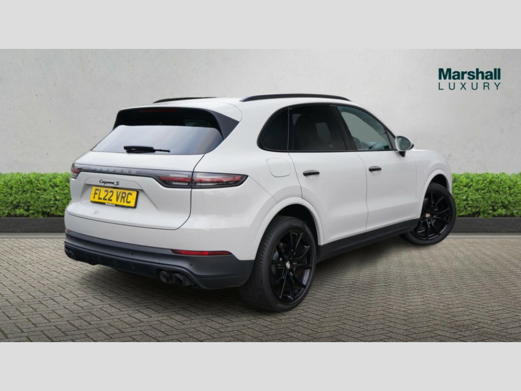 Porsche Cayenne S Platinum Edition 5dr Tiptronic S Android Auto, Apple car play, Brake pad wear indicator, Driver personalisation for climate, audio and communication, assistance systems and other customisable car systems, Emergency call service, High resolution 12.3-inch touchscreen display in full HD resolution, Individual mode for individual selection of vehicle drive settings, Instrument cluster with two high-resolution displays, Mobile phone preparation with Bluetooth interface for telephone and music, Porsche Communication Management (PCM) including online navigation module, mobile phone preparation, audio interfaces and voice control system, Power steering plus, Power tailgate, Vehicle electrical system recuperation, Warn and brake assist including pedestrian protection, 8 Speed Tiptronic S transmission with auto Start-Stop and coasting function, 90 litre fuel tank, Aluminium cylinder heads and engine block, Direct fuel injection (DFI) with central injector position, Front and rear aluminium multi link axles, Gasoline particulate filter, Sport mode, Twin turbocharger, VarioCam Plus, Water cooled with thermal management, AM radio, Digital radio, Two USB charge ports in rear compartment, Two USB charging and connectivity ports in the front centre console storage compartment, Active air intake flaps, Air intake slats with inlays in satin platinum, Automatic dimming interior rear view mirror, Automatic headlight activation including welcome home functionality, Bumper system with high strength cross members and two deformation elements + Two receptacles with screw threads towing lug + onboard tool kit, Electric windows + anti trap protection + one touch open/close drivers side, Electrically adjustable, folding ,heated and automatically dimming exterior mirrors, aspherical on drivers side including courtesy lights, Extensive aerodynamic underbody protection, Four point signature LED daytime running lights, Front end with integrated air intakes and airblades for the side air intakes, Front light modules including position lights and direction indicators in LED light guide technology, Front windscreen wipers with two speeds, intermittent wipe and rain sensor, Fully galvanised steel / aluminium hybrid lightweight bodyshell and Aluminium bonnet, tailgate, doors, side panels, roof and front wings, Gloss black roof rails, Gloss black side window trims, Heated rear window with automatic switch off, Heated windscreen, LED High level third brake light integrated into roof spoiler, Panoramic opening glass roof, Porsche lettering integrated into rear taillight strip in satin platinum, Rear side wing doors, Rear window wiper with intermittent function and washer jet, Satin platinum model designation on tailgate, Sideskirts in matt black, Tailgate with integrated roof spoiler in exterior colour, 2-way rear headrests in outer seats, 3 seat bench in 2nd row, Ambient lighting, B-pillar clothes hooks on driver and passenger's side, Charge air cooling, Double sun visors for driver and front passenger, Driver/passenger sunvisors and vanity mirrors, Elevated centre console with handles, Five seats rear seat system with two comfort outer seats and a central seat, Front and rear bottle holders in door panels, Front centre armrest, Isofix fastening system for child seats on outer rear seats, LED interior light with switchoff delay function, footwell + glove compartment light, ashtray + ignition lock illumination, front + rear reading light, Manual height adjust for driver and front passenger seat belt, Particle/pollen filter with active carbon filter, Rear seat split folding design 40:20:40,Fold out centre armrest with integrated cup holder,manual fore/after adjust and backrest angle adjust, Retractable roller luggage compartment cover in detachable cassette, Single front passenger seat, Stainless steel pedals, Storage compartments - Cooled glove compartment, front centre console, door and map pockets on front seat backrests + side luggage compartment, Three 12V power sockets - front below the glove compartment, centre console and at side of luggage compartment, Two integrated cup holders in front and rear with variable diameter, 3-point automatic seatbelts with front and outer rear seats pretensioners and front force limiter with 3-point automatic seatbelt for rear centre seat, 4 piston aluminium monobloc fixed caliper brakes at rear and internally vented brake discs, 6-piston aluminium monobloc fixed caliper brakes at front, internally vented brake discs, Active bonnet, Auto hold function, Brake discs with diameter 390mm at front 330mm at rear, Curtain airbags along roof frame and side glazing from the A-pillar to the C-pillar, Distance warning, Electronic parking brake, Front passenger airbag deactivation function for front seat mounting of child seat, Front side airbags integrated into seat, Full size driver and front passenger airbags, Knee driver and passenger airbags, Mounting points on passenger seat for ISOFIX child seat mounting system, Multi-Collision braking, Porsche hill control (PHC), PTM Porsche Traction Management active all-wheel drive with an electronically variable,map-controlled multi-plate clutch,ABD and anti-slip regulation, Rear door child safety locks, Rollover detection for activation of curtain airbags and seat belt pretensioners, Seat belt warning system for driver and front passenger and rear seat system, Side impact protection in doors, Tyre pressure monitoring system, Vehicle stability system, Porsche stability management (PSM) including ABS, ASR, ABD, MSR and trailer stability management, Alarm system with ultrasonic interior sensor and two stage locking, Engine immobiliser with key transponder, Keyless entry and go, Porsche vehicle tracking system (PVTS Plus) subscription required, Remote central locking with comfort access, Air curtains in wheel arch housings