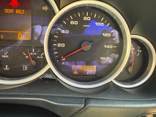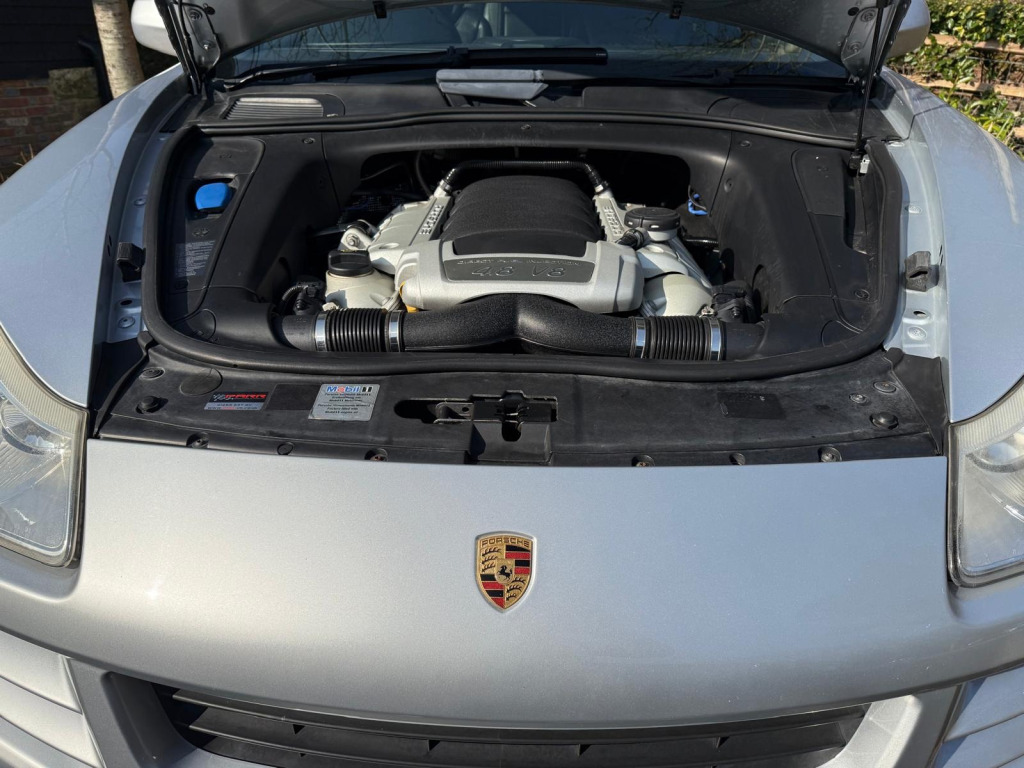 This 2008 Porsche Cayenne S 5dr Tiptronic S estate car, with 63000 miles on the clock, is a perfect choice for those looking for a spacious and powerful vehicle. It runs on petrol and comes with a new MOT making it a reliable option for the years to come. With 5 seats and 5 doors, this car is perfect for families or those who need extra space. It is also ULEZ compliant, ensuring it can be driven in low emissions zones. With only 4 previous registered keepers, it has been well cared for. This car also boasts a range of features including a 3-inch LED dot-matrix display, coolant temperature gauge, external temperature gauge, oil temperature gauge, and an on-board computer, making it a modern and comfortable choice for any driver. Excellent condition inside & out. mote central locking, electronic transponder immobiliser, alarm system + interior ultrasonic protection + inclination sensor, two stage locking, front fog lights, heated rear windscreen, 2 speed front wipers + intermittent wipe, intermittent rear wash/wipe, electrically adjustable and heated door mirrors, rain sensor, power foldback door mirrors, heated washer jets, colour coded bumpers, heat insulated glass, electric windows + anti trap protection + one touch open/close drivers side, soft closing for tailgate, grey tint in upper edge of windscreen, remote control opening rear tailgate window, stainless steel door entry guards, tailgate illumination and safety lights, integral rear antenna, curtain airbags, front side airbags, abs+abd, asr, hill hold control, passenger airbag deactivation system, full size driver and passenger airbags, height adjustable front/rear outer seatbelts, 3 point front/outer rear seatbelts + pre-tensioners + force limiters on front seats, edc, ptm (porsche traction management), silver anodised brake calipers, pollen filter, front passenger seat isofix location point, air quality sensor, stainless steel pedals, active carbon filter, rear centre console + storage compartment, delay courtesy light function, isofix system on outer rear seats, rear reading lights, 60/40 asymmetric split folding rear seats, steering column mounted gear shift paddles, front reading lights, footwell courtesy lights front and rear, illuminated driver/passenger vanity mirrors, storage bins on all doors, fabric roof lining, manual height/reach adjust steering wheel, 12 way electric height adjustable seats + lumbar support, 5 12v sockets, adjustable headrests (except centre rear), automatic air recirculate, dimmable door handle illumination, door safety lights- front and rear, engine compartment light, front and rear cupholders x 2, front and rear door entry lights, ignition lock illumination, illuminated air conditioned glovebox, illuminated centre console storage, illumination of luggage compartment, leather centre console armrest, leather door armrests + grab handles on centre console, rear centre armrest with storage compartment, retractable loadspace cover, retractable luggage net, roof mounted sunglasses holder, storage compartments in cargo area side walls, tufted velour carpeting, front seat and rear pockets, external temperature gauge, oil temperature gauge, service interval indicator, on board computer, coolant temperature gauge, remote tailgate/fuel filler releases, 3-inch led dot-matrix display, porsche stability management (psm), integrated cluster with silver bezels, 18'' Alloys