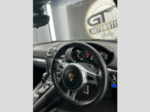 We are thrilled to bring this sensational spec Porsche Cayman 981 PDK to the market from within our collection. Finished in a gorgeous Basaltschwarz Black Metallic exterior against a Black leather interior. Our example boasts the spec to have! On offer is the much-fabled Sport Chrono Package, Sports Exhaust (Switchable) & also features the stunning diamond cut optional 20 Carrera Classic alloys, which are wrapped in Pirelli PZero tyres. These alloys truly transform the exterior look of the 781 Cayman! The 781 possesses an incredible agility & poise, a true drivers car that now represents simply incredible value & is more than capable of matching the experience of its bigger sibling in the 911. , Inside the cockpit youre greeted with typical Porsche quality. From the driver focused seating position, youll get to enjoy a Bose Sound System, Porsche Communication Management (PCM), Park Assist Front & Rear, Dual Climate Control & heated Black Leather. , When youre considering purchasing a vehicle from the GT Sixty-Seven Automotive collection, do it safe in the knowledge that its an example which has been personally selected by us for its exceptional pedigree. Our example boasts a service history consisting of 5 stamps, between a mixture of Porsche Main Dealer & Independent Specialist, the last being in 2024 at 30,966 miles. It also received an in-house health check by the last supplying dealer in 2025, a company who possess an excellent reputation for the quality of their preparation. , All of our vehicles are supplied with a minimum 6-month comprehensive warranty & 12 months MOT as standard; we are also able offer continuing peace of mind past this point with our superb extended warranty packages. For our clients wanting to maintain those ultimate showroom looks then we can offer exclusive pricing for the highest quality ceramic coating packages available, alongside underbody rust protection to help future proof your investment. The viewing of this vehicle is by an appointment basis only; this is to ensure we can give you our undivided attention in a very relaxed setting. , Youll also receive benefits which carry on way past the point of sale, youll get to enjoy this wonderfully useable sports car to its full potential, thanks to a complimentary membership with our drivers club - Club GT350. Drive the life in 2025!