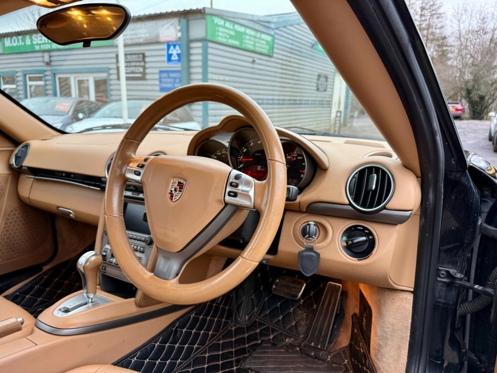 PORSCHE CAYMAN TIPTRONIC S - HIGH SPEC - BOSE STYLE AUDIO - BLACK2007 (07) 2.7 Petrol 5-Speed Tiptronic Automatic Coupe Basalt Black MetallicA superb Porsche Cayman Tiptronic S finished in Basalt Black Metallic, offering timeless styling, mid-engine balance and a genuinely special driving experience. This is a high-spec example with a strong factory option list including PCM navigation, heated seats, electrically adjustable seats, rear parking sensors and automatic climate control.A proper Porsche coupe that feels tight, planted and confidence-inspiring, whether it's used as a weekend toy or a year-round driver.Key Features:- 2.7L Petrol Flat-Six Engine- 5-Speed Tiptronic Automatic Gearbox- Basalt Black Metallic Paintwork- PCM with Extended Navigation Module- Telephone Module for PCM- Leather Interior Package- Electrically Adjustable Seats- 3-Spoke Multi-Function Sports Steering Wheel- Automatic Climate Control- Seat Heating- Rear Park Assist Sensors- Sound Package Plus with CD Storage- 6-Disc CD Auto changer- Alloy Wheels- Electric Windows & MirrorsMOT & Tax:- MOT Supplied with Sale- £735 Annual Road TaxDriving & Ownership:- Mid-engine handling balance and sharp steering feel- Smooth automatic gearbox for relaxed cruising- Classic Porsche coupe looks with modern usability- High factory specification throughoutPeace of Mind Included:- Fully Serviced & Ready To Go- Multi-Point Inspection Completed- RAC Warranty Available- 12 Months RAC Breakdown Assistance- Part-Exchange Welcome- Finance Options Available- Nationwide Delivery AvailableCall Now to Arrange a Viewing or Test DriveV5 Present - HPI Clear - Drives Exceptionally WellCondition commensurate with age and mileage - a genuinely well-specced Cayman in a timeless colour combination.www.regalcar.co.uk justable steering column/wheel, air-conditioning, climate control, cup holder, electric windows (front), gear knob leather, in car entertainment (radio/cd), seat height adjustment, speakers, steering wheel leather, tinted glass, upholstery leather, air bag driver, air bag passenger, air bag side, alarm, anti-lock brakes, central door locking, front fog lights, head air bags, head restraints, immobiliser, power-assisted steering, seat - isofix anchorage point (one seat - front), seat belt pre-tensioners, third brake light, tracker, alloy wheels (17in), body coloured bumpers, heated washer jets, mirrors external, windscreen wiper, computer (driver information system)