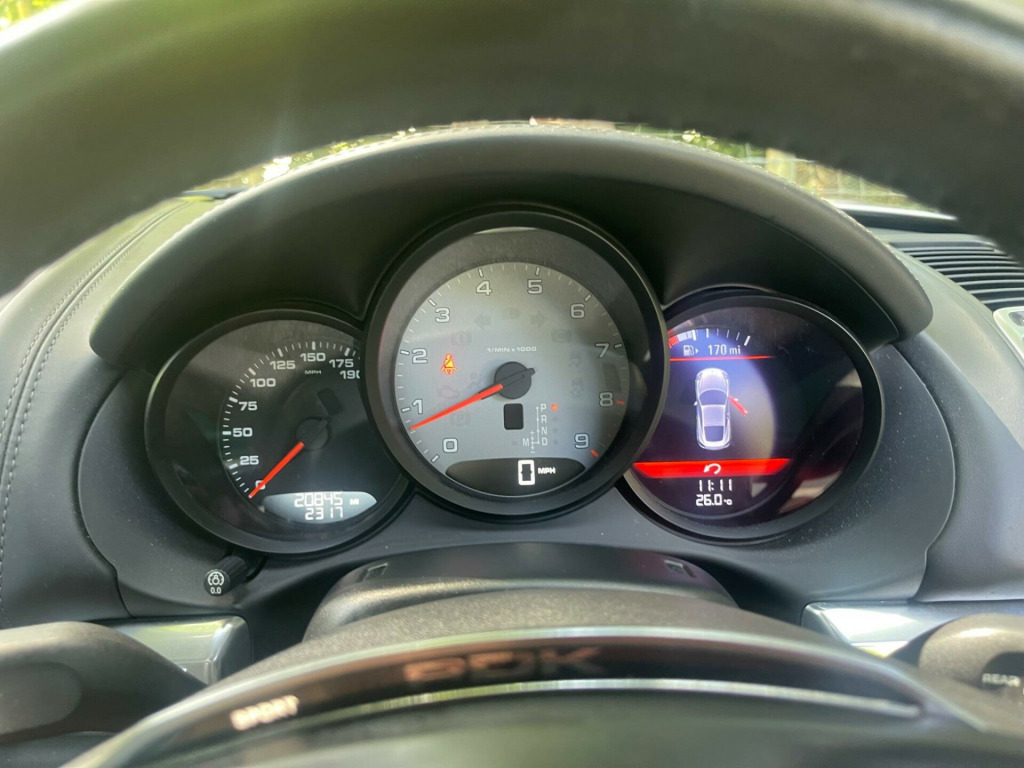 A SUPERB EXAMPLE WITH SERVICE HISTORY. 20'' Diamond spun alloy wheels, FULL Black leather heated seats, PDK, Sports Chrono Package, SAT NAV, Bluetooth, etcWith only 20,800 miles on the clock, this 2013 Porsche Cayman 981 S represents an opportunity to own a performance vehicle with very low mileage for its age. As a 981 S variant, this Cayman is equipped with a 3.4L petrol engine, offering a thrilling driving experience. The interior boasts heated front seats, ensuring comfort even on the chilliest days, and an immersive auditory experience is guaranteed via the BOSE surround sound system. The multi-function steering wheel puts control at your fingertips, while automatically dimming mirrors with an integrated rain sensor add an extra layer of convenience and safety. The Sport Chrono Package enhances the driving dynamics, offering an even more engaging experience behind the wheel.This Cayman 981 S stands out with its rapid acceleration, reaching 62mph from a standstill in just 4.9 seconds, demonstrating its superior performance capabilities. With only two previous owners, this vehicle has been well-cared for. Furthermore, its low insurance group means it could be more economical to insure than other similar sports cars. v socket - centre console, 19in alloy wheels - cayman s, 2 x 25 watt output, 7in colour display, abd - automatic brake differential, abs - anti-lock brake system, asr - anti slip regulation, active carbon filter, air conditioning, airbag - driver, airbag - head, airbag - passenger, airbag - thorax in seat side bolsters, alarm system, analogue gauges for engine speed - vehicle speed - fuel level, anti-theft wheel protection, armrests - door trim panels and centre console storage compartment lid covered in leather, auto-deployed rear spoiler, automatically extending rear spoiler, auxiliary led light modules in front apron containing daytime running lights and position lights, bar in front of front end air intake in black, bi-xenon headlights with integral turn-signal indicators, brake assistant, brake calipers - black, brake calipers - red, cdr audio system, cayman logotype in front of gear-shift or pdk-selector, clear glass h7 halogen projection headlights with integral turn signal indicators, clothes hooks on seat backrests, cupholders, daytime running lights - led, door brakes with three rest positions, door entry guards with model designation, door mirrors - electrically adjustable and heated, doors and hood front and rear made of aluminium, edtc - engine drag torque control, electric parking brake, electric windows - lifts with one touch operation, electronic immobiliser - transponder system, enhanced porsche stability management - psm, front lip spoiler in exterior colour, gear indicator in rev counter, glove compartment - lockable, green tinted heat-insulating glass, headlight assistance, headlight cleaning system, heated glass rear screen, instrument cluster with central rev counter and 4.6in tft vga display, instruments cluster with black dials and central rev counter with aluminium-coloured dials, integral head restraints on seats, integrated cluster of five round instruments, led reading lights orientation ignition lock and vanity mirror lighting, led rear lights and third brake light, lightweight bodyshell in steel-aluminium design, lightweight spring-strut suspension, manual seat height adjustment, on-board computer, on-board diagnostics for monitoring of the emission control system, operated hood with heated glass rear screen, porsche logotype and model designation on tailgate in high-gloss chrome look, pad-wear sensors on each brake pad, permanent digital displays for odometer - trip odometer - clock - external temperature and speed, porsche side impact protection - posip, power assisted steering with variable steering ratio, power release buttons for front-rear luggage compartments lids, pre-tensioners and force limiters at front, remote central locking, rooflining in chosen interior colour in black platinum grey or luxor beige, seats - adjustable backrests - electric, seats - sports, several interior parts in galvano silver, shell hot-dip galvanised on both sides, single cd drive supporting mp3 audio playback, speakers x4, sport mode button, sport steering wheel with manual height and reach adjustment, steering wheel - rim - gear lever and door handles covered in leather in interior colour, steplessly adjustable fan with air recirculation and defroster functions, storage compartment in each door, tyre sealing compound and electric air compressor, underbody panelling, universal audio interface - aux, vanity mirrors in both sun visors, water-repellent coating on side windows, welcome home lighting, windscreen washer system with two wiper speeds and heated washer jets, bose surround sound system, cruise control, pcm - porsche communication management - include navigation, 20in alloy wheels - carrera s, automatically dimming mirrors with integrated rain sensor, leather - black, seats - heated front, steering wheel - multi-function, sport chrono package