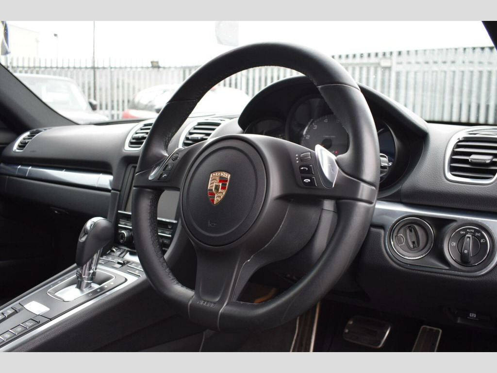 November 2013 63 Porsche Cayman S 3.4 981 PDK finished in timeless Agate Grey Metalic with Black leather interior and diamond turned 20 Carrera Classic alloys. 50750 miles covered by 4 owners, supported by excellent stamped service Porsche and main dealer and specialist service history. (See photos). The last service having been completed in August 2025 by Porsche Centre East London was a major service leaving the next service (minor) not due until 2027. A large history file accompanies the car containing past MOTs, maintenance invoices and many supporting invoices for the stamped services. Additional notable service items include replacement drive belt and spark plugs at 37263 miles by Porsche centre stockport and regular brake fluid replacements. Presented excellently and supplied with all correct documentation, handbooks etc and has been subject to our usual strict pre delivery inspection and preparation process ensuring all cosmetic and mechanical elements are in good order including matching Pirelli P Zero tyres with good tread. Superb specification thanks to a long list of factory options fitted (23 options) from new. These include: Heated front seats, heated steering wheel, Sports Seats Plus - electrical 2 way, Bi-Xenon headlights including Porsche Dynamic Light System - PDLS, 20in alloy wheels - Carrera Classic, PCM - Porsche Communication Management - includes navigation, rear wiper, cruise control, Sound Package Plus, top tinted windscreen, two-zone automatic climate control, HomeLink garage door opener - 433 MHz, preparation for mobile phone, Park Assist - front and rear, Power Steering Plus, voice control system, DAB digital radio, multi-function steering wheel, floor mats, automatically dimming mirrors with integrated rain sensor and online services. , DELIVERY: Nationwide delivery available. The first 100 miles are free of charge (driven delivery). Thereafter, delivery is charged at £1.99+vat per mile. Please contact us for further details or a personalised quotation including trailered delivery options. , PAYMENT: We accept debit card payments for amounts up to £500. For payments exceeding this amount, we accept BACS (bank transfer) only. Please ensure that funds have cleared prior to vehicle collection as we are unable to release vehicles without cleared funds.If you intend to pay via online banking on the day of collection, please bring any necessary devices or security tools (e.g. secure keys, card readers, etc.) required to complete your transfer. We also accept cash payments up to £9,000, subject to a 2% banking fee. Please note that a £250 administration fee applies to all purchases funded through third-party finance providers. , NOTICE: Every effort is made to ensure the accuracy of our advertisements and vehicle specifications. However, occasional human or system errors may occur. We therefore recommend verifying all details prior to purchase.