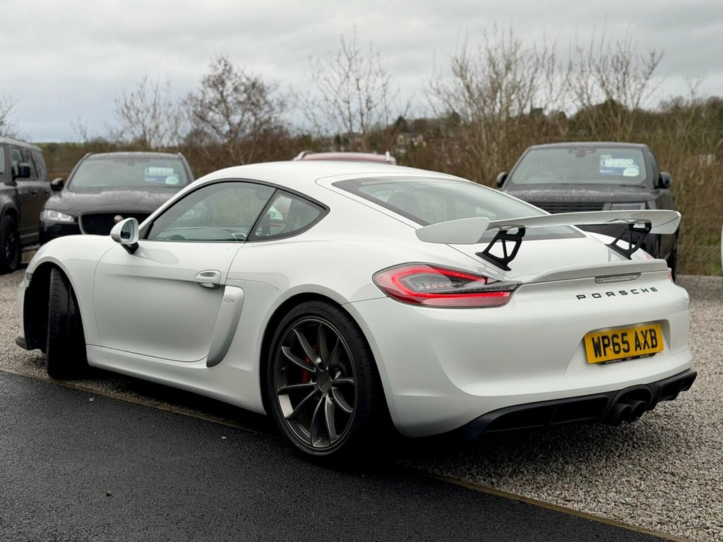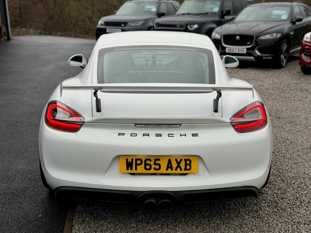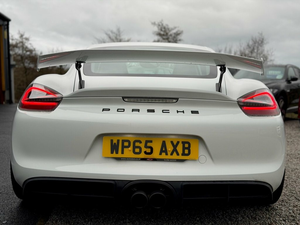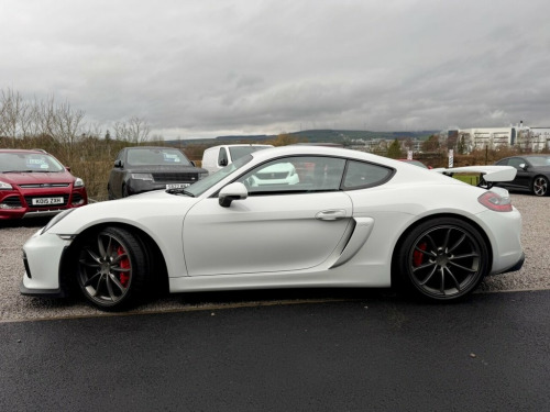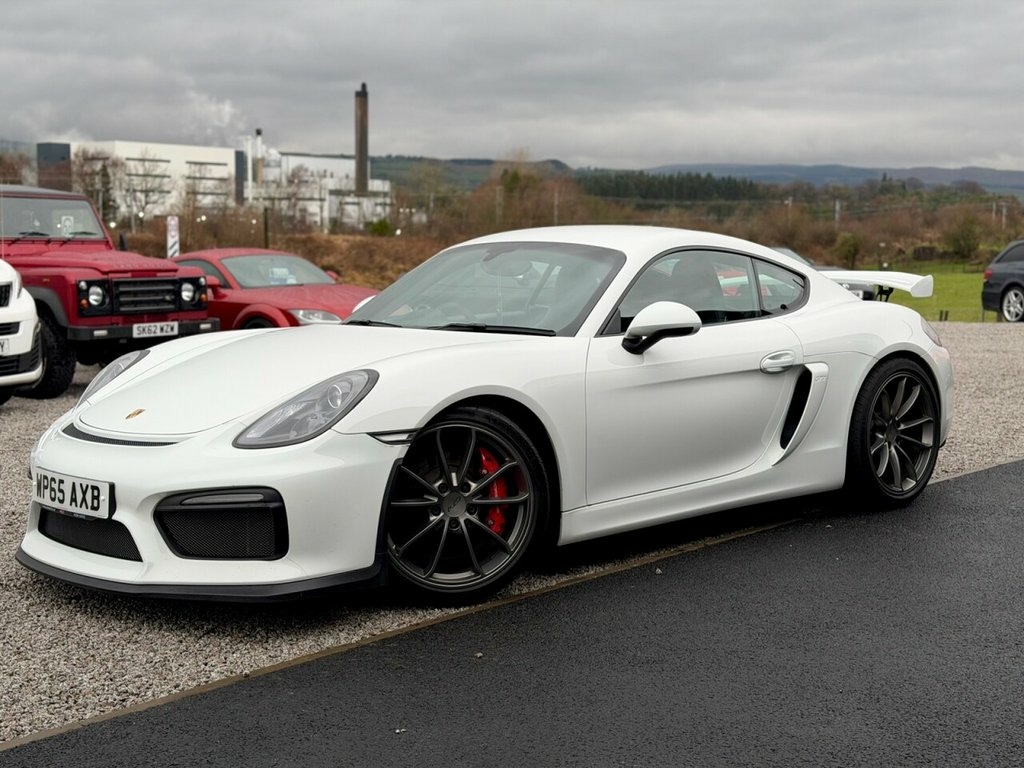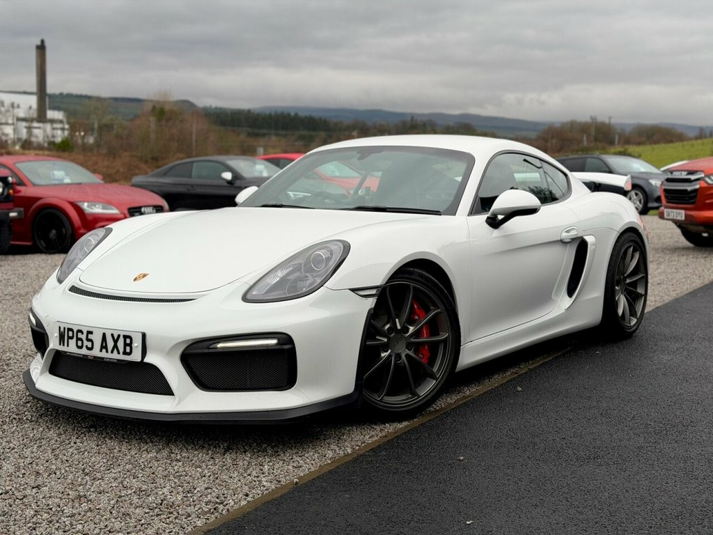 2016 (65) Porsche Cayman GT4 3.8 Manual West Coast Motors are proud to be supplying this stunning example of the sought-after 2016 Porsche Cayman GT4 (981) 3.8L Coupe, finished in white with its GT4 embossed black sports interior. With just 19,000 miles from new, backed by a meticulous stamped Porsche book including Leicester, Cambridge, Cardiff and noted specialists with a fresh service prior to sale. Cosmetically the car is immaculate inside and out, with a front end PPF (paint protection film) already applied. Bodywork, alloys and interior are all exceptional. Maintained to a high standard, with major servicing including spark plugs, belts and brake fluid all documented. 6-speed manual gearbox, naturally aspirated flat-six – the perfect drivers' Porsche. The car is fitted with desirable factory options including the full Alcantara roof liner, GT4 embossed sports seats, Sports exhaust, Porsche Communication Management (PCM), extended interior package, bi-xenon headlights and more. Drives absolutely spot on – tight, balanced, raw – exactly as a GT4 should, and one of the most exciting modern Porsche models available. 2 keys supplied, 4 previous owners For full details and in depth walk round video report please see https://www.wcmotors.co.uk/used-porsche-cayman-west-kilbride-ayrshire-7500809 Get in touch to reserve your new car today! 3 months Warranty as standard Part exchange welcome Low rate finance Debit/credit cards accepted AA br 12-Volt Socket in Passenger Footwell, 12v Socket - Storage Bin Centre Console, 12v Socket Outlet in Glove Compartment, 2 x 25 Watt Output, 20in Alloy Wheels - GT4 Platinum, 7in Colour Display, ABD - Automatic Brake Differential, ABS - Anti-lock Brake System, ASR - Anti Slip Regulation, Active Carbon Filter, Air Conditioning, Airbag - Driver, Airbag - Head, Airbag - Passenger, Airbag - Thorax in Seat Side Bolsters, Alarm System, Alcantara Lid of Centre Console Storage , Aluminium Brushed Centre Console Trim, Anti-roll Bars, Armrest on Drivers Door - Alcantara, Armrest on Passengers Door - Alcantara, Automatic Coming Home Lights, Automatic Hill-Hold, Brake Assistant, Brake Calipers - Red, CDR