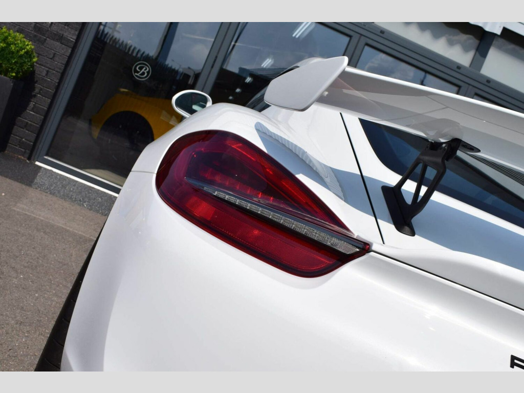 December 2015 65 Porsche Cayman 3.8 981 GT4 finished in sought after Carrera White Metallic with carbon interior. 10750 miles covered which is supported by full main dealer Porsche service history with the last one being a major including spark plugs etc at Porsche Centre Nottingham in Jan 2020 meaning the next service due is a minor in Jan 2022. This car is boasting an incredible spec with almost £10,000 in factory optional extra equipment fitted. This impressive list includes: Full Bucket Seats, Metallic Paint, Porsche Communication Management (PCM), Sport Chrono Package, Bi-Xenon Headlights/Porsche Dynamic Light System in Black, Automatically Dimming Mirrors/Integrated Rain Sensor, Cruise Control, Two - Zone Automatic Climate Control, Guards Red Seat Belts, Storage Compartment Lid in Alcantara with PORSCHE Logo, Sun Visors in Leather, Centre Console Trim in Carbon, Stitching in Contrasting Colour, Headlight Cleaning System Covers Painted and Fuel Filler Cap with Aluminium Look Finish. This car has been well cared for and as such is presented in beautiful showroom condition inside and out including bodywork, alloys, tyres, brakes interior etc all having been well preserved and showing little to no signs of age/wear. Totally standard and unmodified and supplied with both keys, book packs etc. Other features include: 20in Alloy Wheels - 20 GT4 Alloys, 7in Colour Touchscreen, Air Conditioning with Integrated Active Carbon Filter, Auto Start/Stop Function, Electric Backrest Adjustment, Green Tinted Heat Insulating Glass, Radio with Double Tuner and Single CD Drive with Playback of Music in MP3 Format/ Universal Audio Interface (AUX), Tyre Pressure Monitoring (TPM) with Race Circuit Mode and more. FINANCE FROM 6.9% APR | GTECHNIQ DETAILING & CERAMIC COATINGS | XPEL PAINT PROTECTION FILM