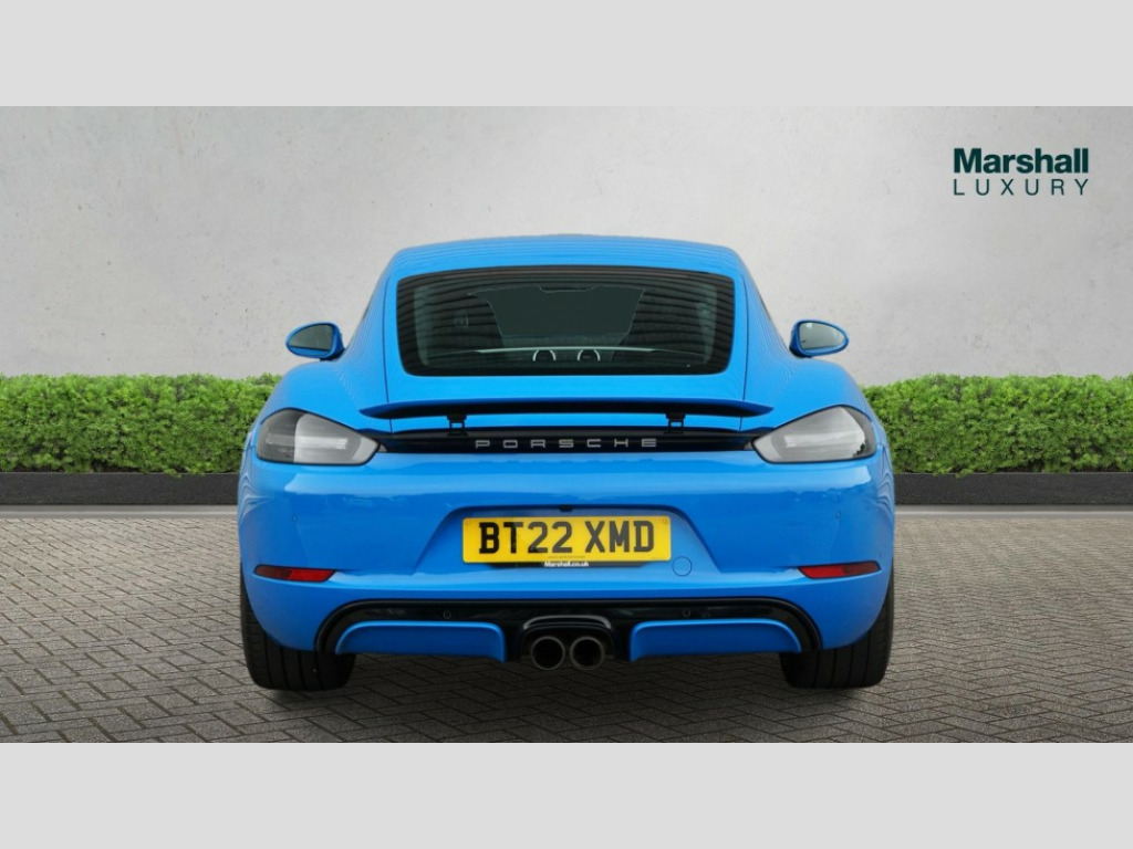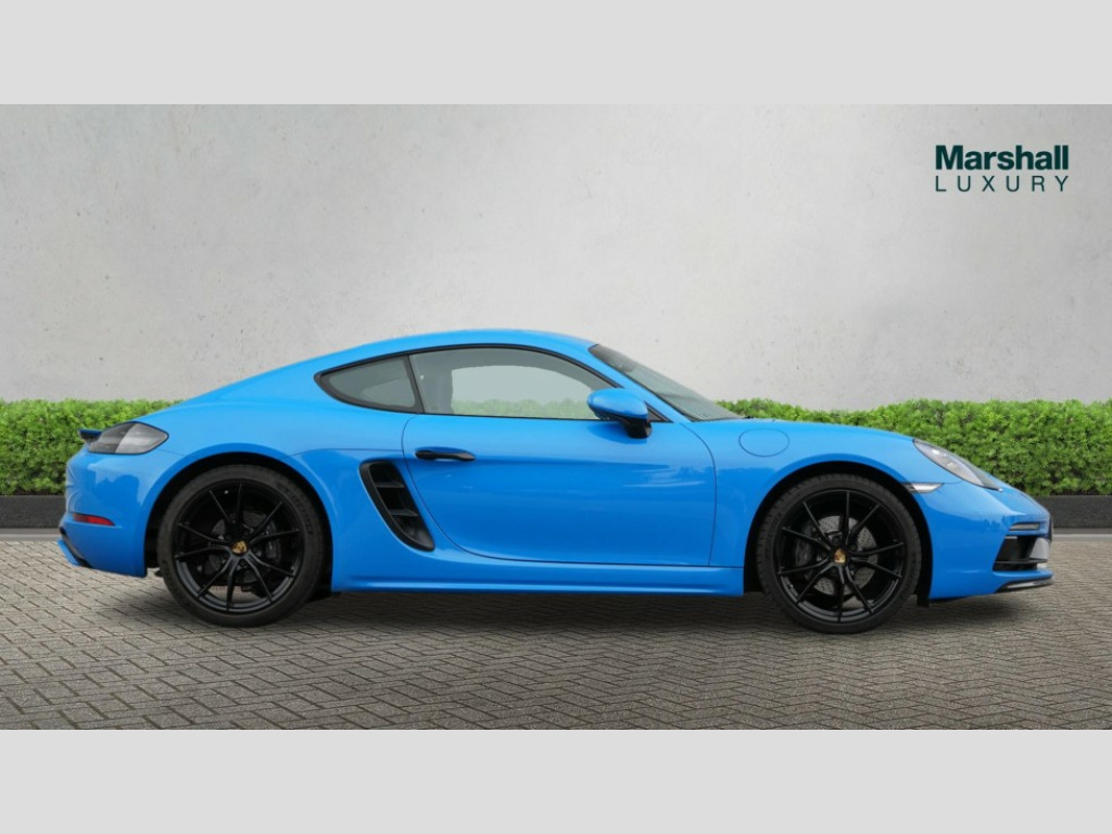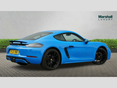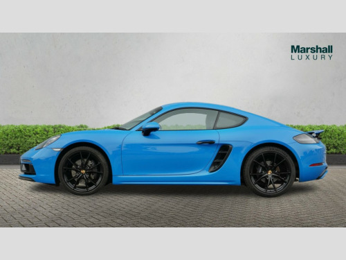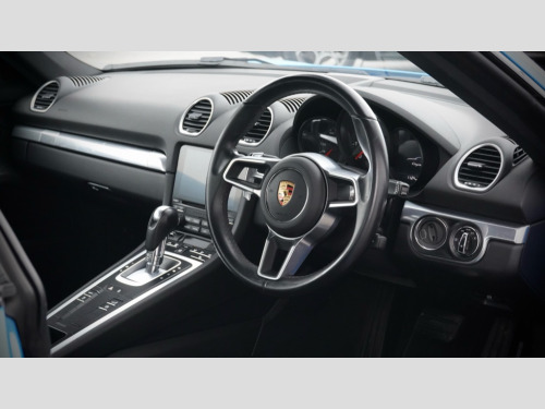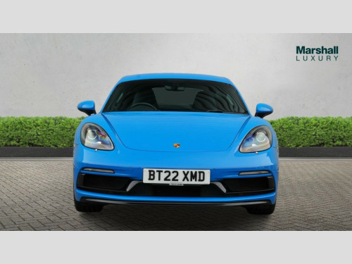 Porsche Cayman 2.0 2dr PDK Auto start and stop system, Digital displays for vehicle speed, chosen gear, odometer, trip odometer and clock, eCall emergency call system, Instrument cluster with central rev counter and high-resolution 4.6 inch colour display, Porsche Communication Management (PCM) including online navigation module, mobile phone preparation, audio interfaces and voice control system, 3-way catalytic converters and on-board diagnostics for monitoring emission control system and coated particulate filter, 4 valves per cylinder, Aluminium block and cylinder heads, Direct fuel injection (DFI), Gasoline particulate filter, Integrated dry-sump lubrication with an on-demand oil pump, Porsche Doppelkupplung (PDK), Porsche Stability Management (PSM) with ABS, advanced brake functions, Rear wheel drive, Turbocharger with intercooler, Two seater vehicle with mid mounted engine, VarioCam Plus variable valve timing and switchable valve lift, Water cooled with thermal management, DAB Digital radio, Integrated 4G/LTE compatible SIM including data for the Porsche Connect Services, Integrated compatible SIM including Porsche Connect Services, Navigation incl porsche + Apple Carplay, connect module, wireless internet access, carfinder, remote vehicle status, remote service and vehicle track, Wifi and music streaming, 3rd brake light, Auto deploying rear wing, Automatic headlight activation including welcome home lighting, Automatically extending rear boot spoiler, Body colour bumpers, Body colour door handles, Electrically adjustable heated exterior mirrors on door waist rails, aspherical on driver's side, Green tinted heat insulating glass, Grey top tinted windscreen, Heated rear windscreen, Intelligent lightweight body in Aluminium/Steel composite construction, Power windows with one touch operation and door seal protection, Rain sensor, Rear boot, Separate auxiliary lights in the front end with LED indicators and position lights, Twin tract exhaust system with central tailpipe in stainless steel, Wide opening rear hatch with heated screen, Windscreen washer system with two wiper speeds and washer jets, 12V sockets in passenger footwell and centre console storage compartment, 718 logo on gear lever, Adjustable fan with air recirculation and defroster functions, Ascending centre console with uncovered storage compartment and closed storage compartment, Clothes hooks on front seat backrests, Footwell illumination, Front and rear luggage compartments, Front headrests, Heated seats, LED reading lights, orientation, ignition lock, additionally luggage compartment and glove compartment lighting, Lockable glovebox, Seat centres in race tex, side bolsters and headrests in leather, Single front passenger seat, Smooth finish leather on steering wheel rim, gear lever and door handles, SPORT button to activate dynamic driving settings for engine, transmission (with PDK), Storage compartments in each doors, Two individual cup holders (Passenger side, integrated into dashboard trim strip), 3 point automatic seatbelts, ASR, Electrically controlled parking brake, Front and rear lightweight spring strut axle, Front seatbelt pretensioners + load limiters, Full size driver and passenger airbags, Passenger airbag deactivate switch, Porsche side impact protection doors with thorax airbag in outer backrest side bolster and head airbag for driver/passenger in door panel, Tyre pressure monitoring system, Alarm system with interior surveillance, Anti-theft wheel bolts, Dashcam prep, Engine immobiliser with in key transponder, central locking and remote control, Tyre repair kit