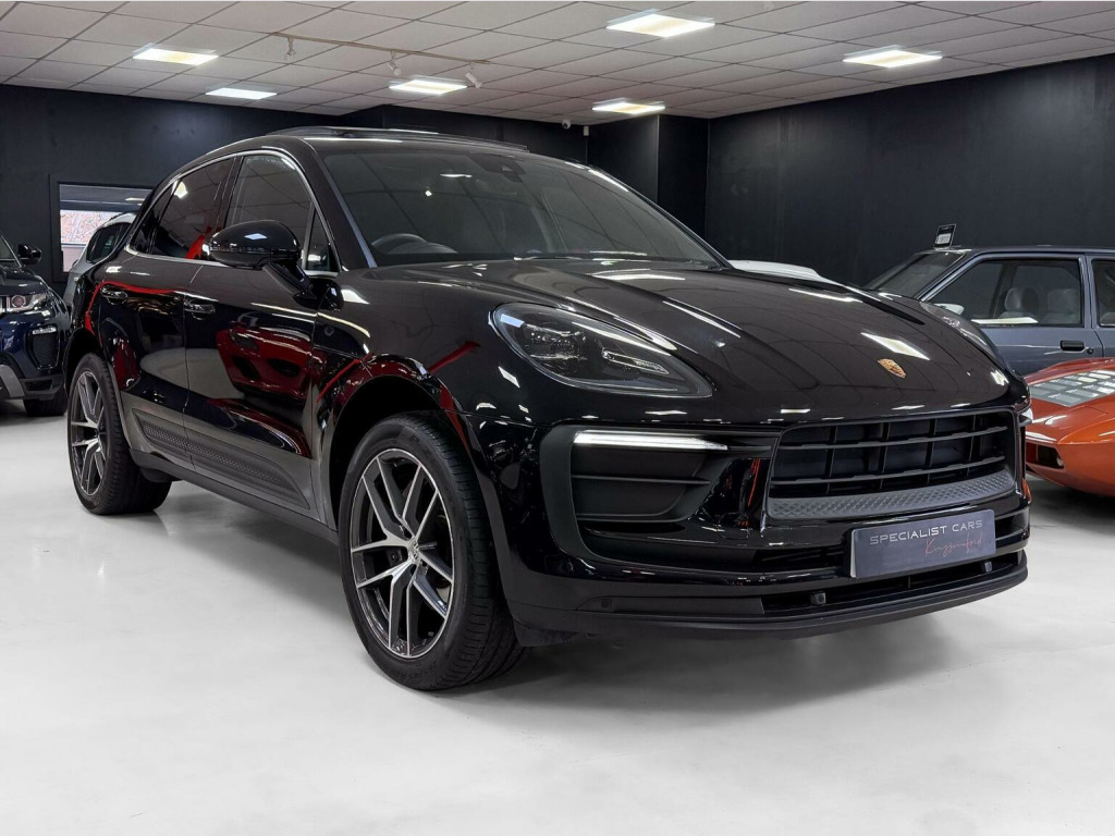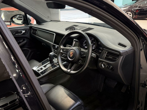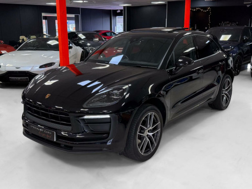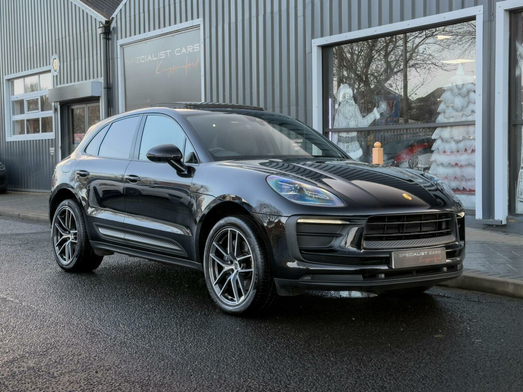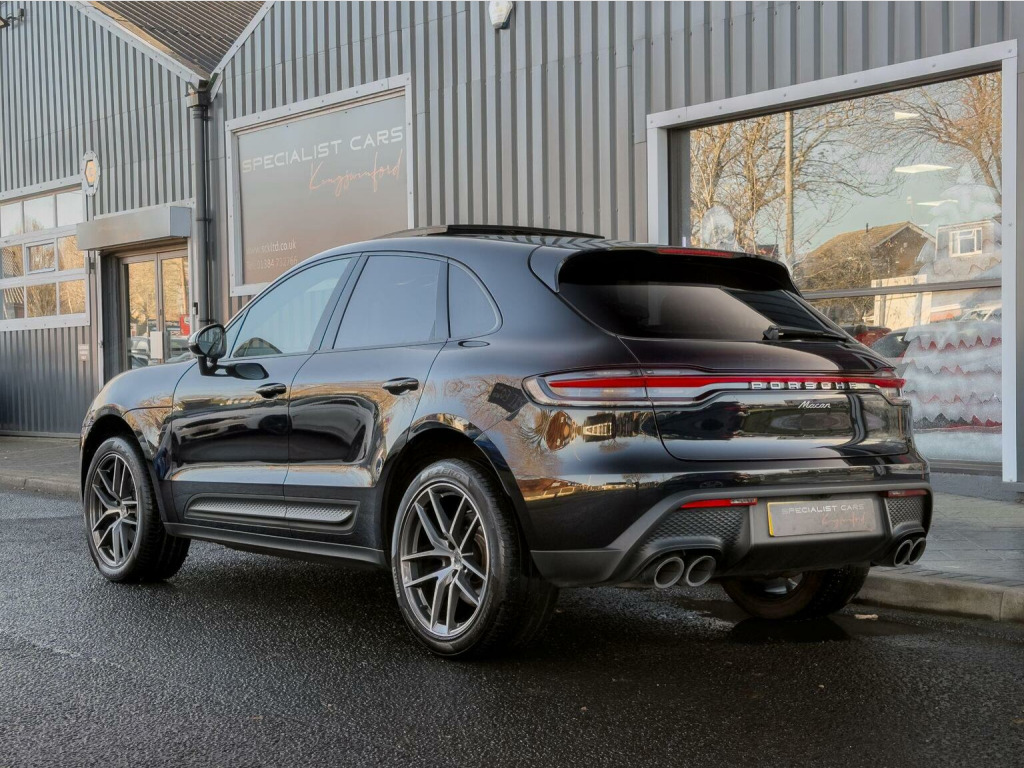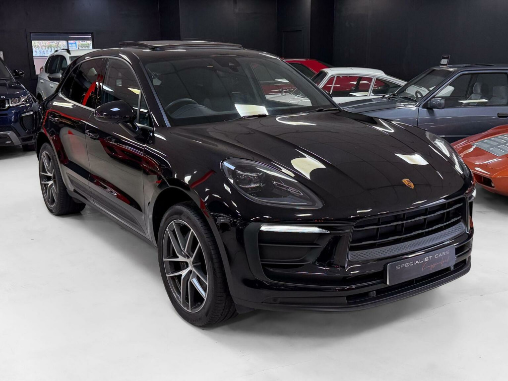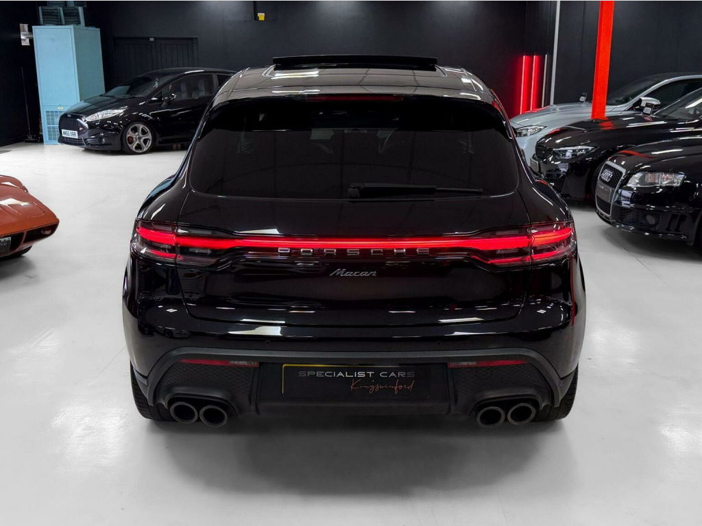 This 2022 Porsche Macan 2.0T PDK blends everyday usability with genuine Porsche performance and refinement, presented here with an exceptionally high and very rare specification. Finished with a host of premium factory options, this example stands out immediately. It features the BOSE Surround Sound System, delivering superb audio clarity throughout the cabin, along with a smartphone compartment offering wireless charging for modern convenience. A reversing camera provides added confidence when manoeuvring. This Macan benefits from extremely rare 20-inch Macan S alloy wheels painted in Dark Titanium, enhancing both its stance and road presence. The Panoramic Roof System floods the interior with natural light, while the Sports Exhaust System with black tailpipes adds a more purposeful tone and sportier appearance. Porsche LED logo door courtesy lighting and Privacy Glass complete the exteriors high-end look. The interior specification is equally impressive. The 14-way electric front seats with memory deliver superb comfort, supported by an extended black leather interior and additional leather package, both rare options. The front head restraints feature the Porsche crest embossing, another sought-after detail. Comfort Access offers seamless entry, while heated steering and auto-dimming interior and exterior mirrors add welcome refinement. Further equipment includes Power Steering Plus, a 75-litre fuel tank for increased range, and a speed-limit indicator for added convenience. Altogether, this Macan is a rare opportunity to acquire a highly specified example with sought-after luxury, comfort and visual upgrades — an exceptional SUV offering the perfect balance between premium craftsmanship and Porsche driving dynamics.