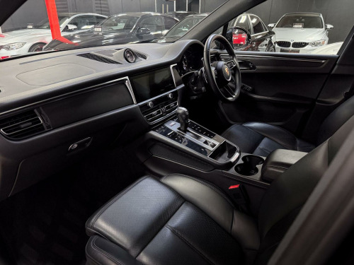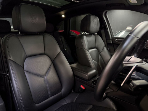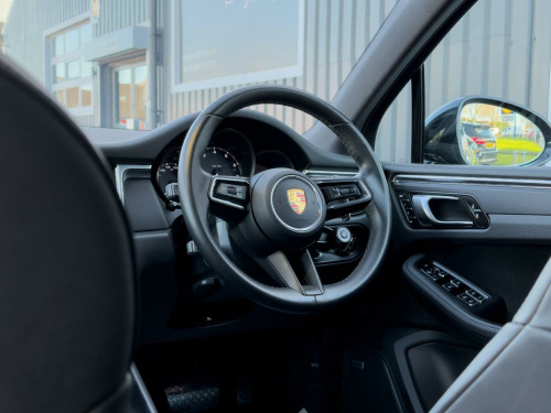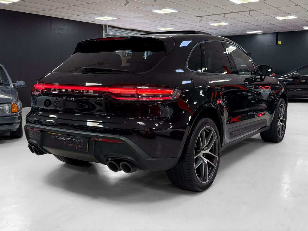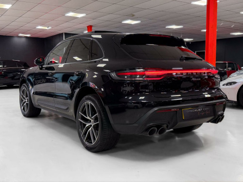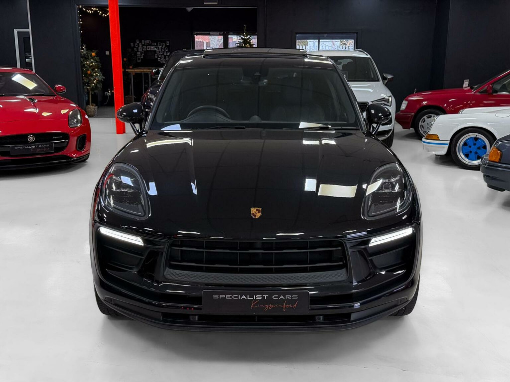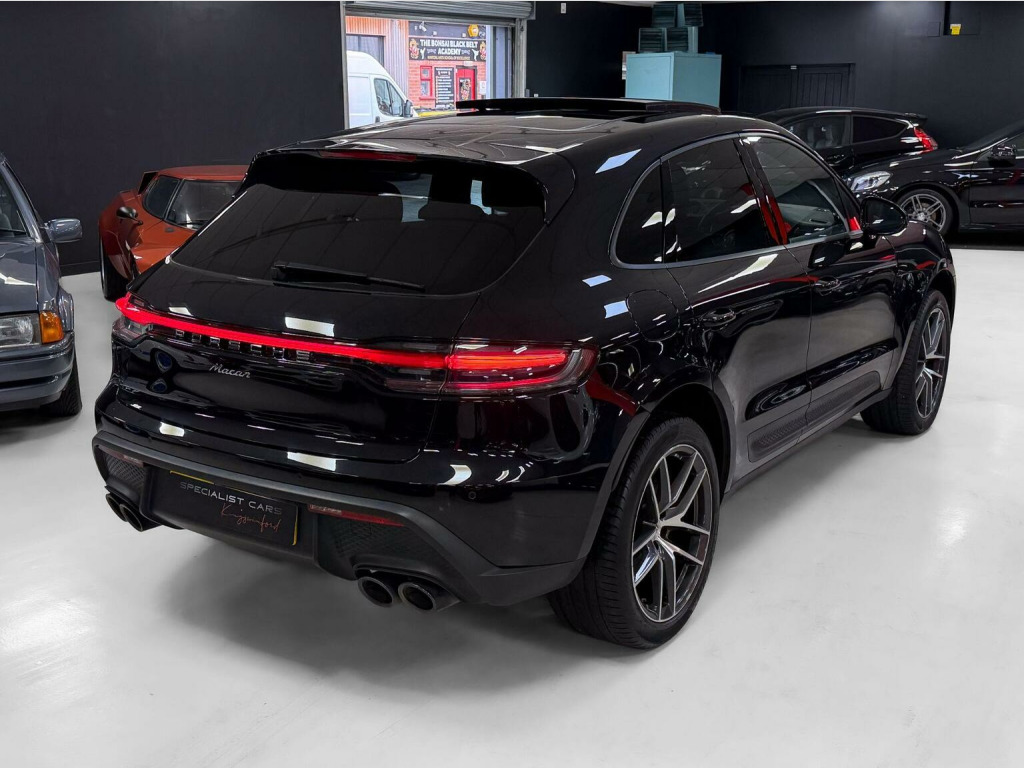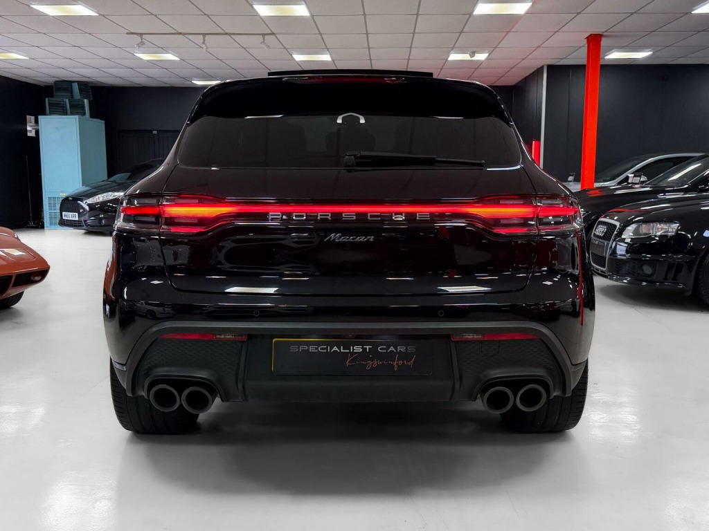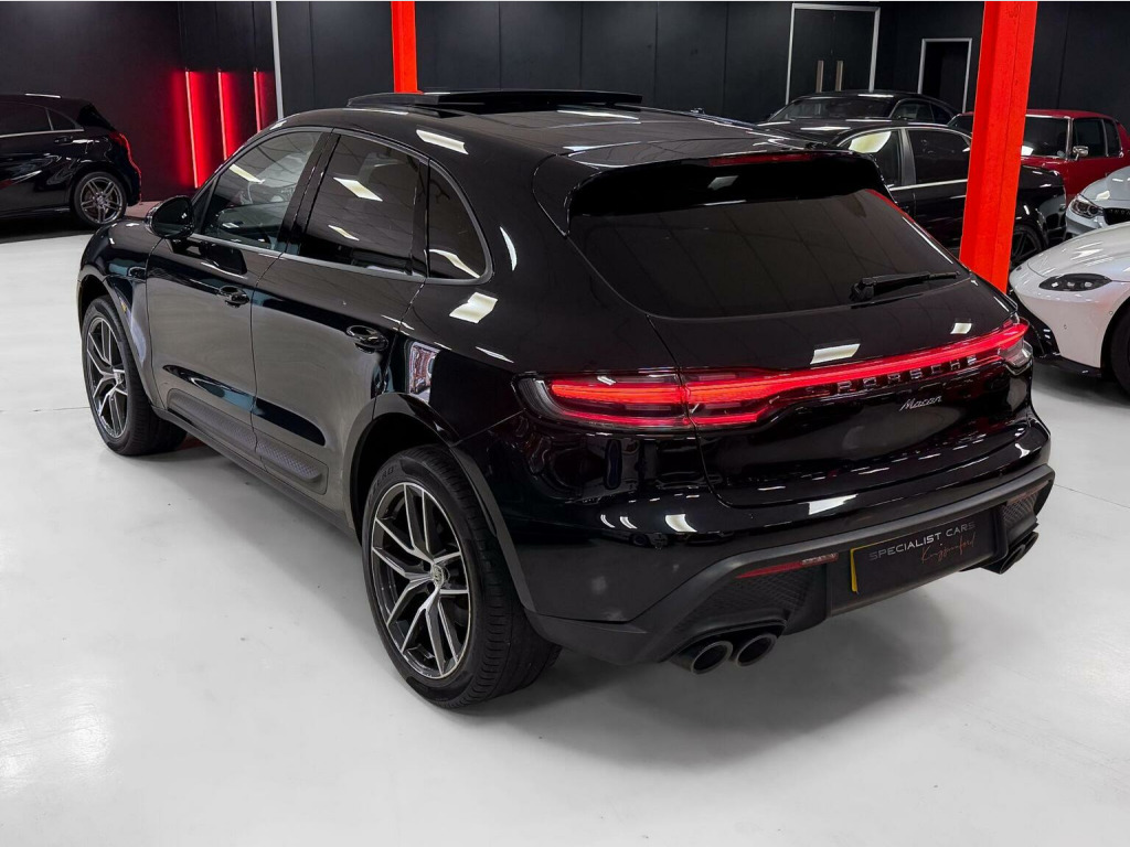 This 2022 Porsche Macan 2.0T PDK blends everyday usability with genuine Porsche performance and refinement, presented here with an exceptionally high and very rare specification. Finished with a host of premium factory options, this example stands out immediately. It features the BOSE Surround Sound System, delivering superb audio clarity throughout the cabin, along with a smartphone compartment offering wireless charging for modern convenience. A reversing camera provides added confidence when manoeuvring. This Macan benefits from extremely rare 20-inch Macan S alloy wheels painted in Dark Titanium, enhancing both its stance and road presence. The Panoramic Roof System floods the interior with natural light, while the Sports Exhaust System with black tailpipes adds a more purposeful tone and sportier appearance. Porsche LED logo door courtesy lighting and Privacy Glass complete the exteriors high-end look. The interior specification is equally impressive. The 14-way electric front seats with memory deliver superb comfort, supported by an extended black leather interior and additional leather package, both rare options. The front head restraints feature the Porsche crest embossing, another sought-after detail. Comfort Access offers seamless entry, while heated steering and auto-dimming interior and exterior mirrors add welcome refinement. Further equipment includes Power Steering Plus, a 75-litre fuel tank for increased range, and a speed-limit indicator for added convenience. Altogether, this Macan is a rare opportunity to acquire a highly specified example with sought-after luxury, comfort and visual upgrades — an exceptional SUV offering the perfect balance between premium craftsmanship and Porsche driving dynamics.