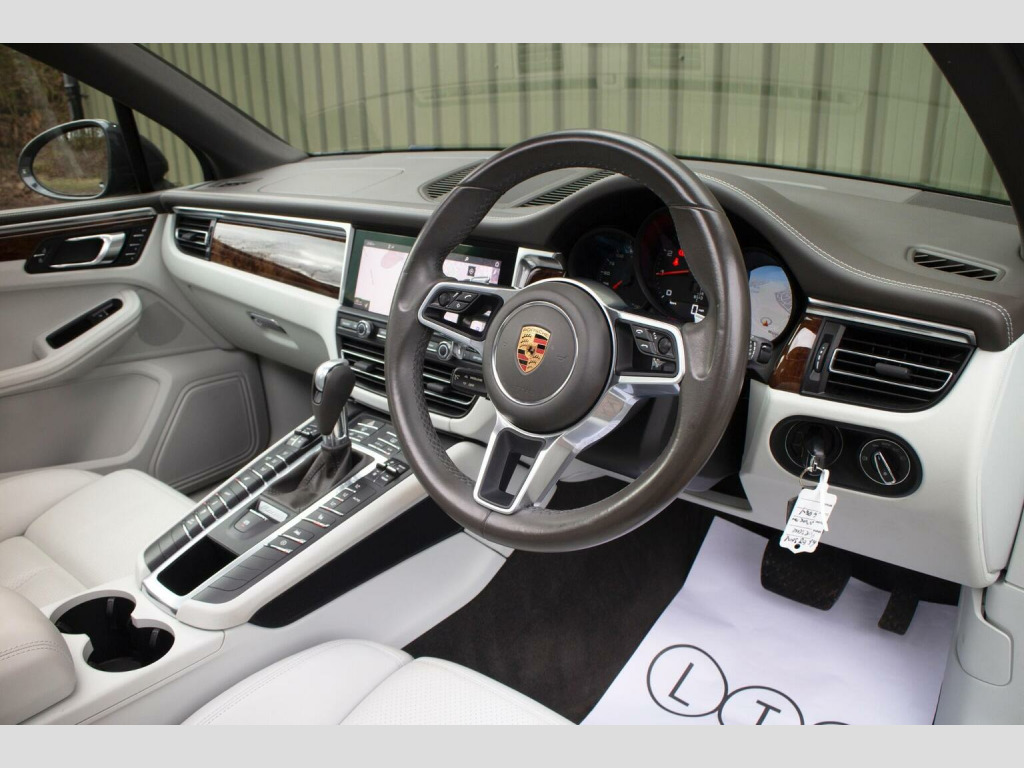 PANORAMIC ROOF - PASM - Finished in elegant Volcano Grey Metallic and paired with a refined Pebble Grey hide interior, this 2019 68 registered Porsche Macan 2.0T PDK is an exceptionally rare, ultra low mileage example. Having covered just 13,000 miles from new and benefitting from only one careful owner, it presents in truly outstanding condition throughout. Specified with over £11,000 of desirable factory options, this Macan combines understated luxury with impressive capability. The distinctive Agate Grey and Pebble Grey two-tone leather interior creates a bright, contemporary cabin, beautifully complemented by 14-way electric front seats with memory package for tailored comfort. Heated front seats, heated steering wheel and a heated windscreen ensure year round usability. The panoramic roof system enhances the sense of space and light within, while Porsche Communication Management with integrated navigation delivers intuitive infotainment and connectivity. Externally, the 19Macan Turbo wheels provide a purposeful stance, supported by LED main headlights incorporating Porsche Dynamic Light System Plus (PDLS Plus) for exceptional visibility and presence. Driving dynamics are elevated by Porsche Active Suspension Management (PASM) and Power Steering Plus, offering a refined yet engaging experience, whether navigating urban streets or open roads. Practicality is equally well considered, with ParkAssist front and rear including Surround View, side airbags for rear occupants, an 18 collapsible spare wheel and the extended range 75-litre fuel tank. Rarely seen in this sophisticated colour combination and with such remarkably low mileage, this Macan 2.0T PDK represents an exceptional opportunity to acquire a beautifully specified and meticulously preserved example, offering the perfect balance of comfort, technology and everyday performance. ****VIEWING STRICTLY BY APPOINTMENT ONLY - FOR FURTHER INFORMATION REGARDING THIS VEHICLE AND ANY OTHER PREMIUM MARQUE IN STOCK, PLEASE CALL SALES DIRECT. VEHICLE FINANCE SPECIALISTS OFFERING COMPETITIVE PACKAGES****