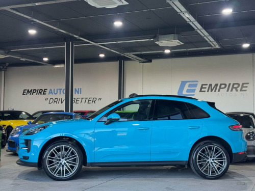 2018 PORSCHE MACAN PDK Could this be the highest spec Macan in the country We are delighted to offer this stunning example in Riviera Blue with contrasting Black Leather interior upholstery £16,141 worth of factory optional extras: 21″ Turbo design alloys Black leather smooth finish Special colour paint Panoramic roof LED main headlights in black including Porsche Dynamic light system 14 way electric seats function Bose surround sound Black exhaust tips Porsche active suspension management Tinted LED taillights with adaptive brake lights Painted sideblades Parking assist with camera Privacy glass Heated seats Auto dimming mirrors Roof rails in black Confront lighting pack Power steering plus 18″ collapsable spare wheel Porsche embossed headrest Monochrome black exterior pack 75 litre fuel tank £38,495 Viewing by appointment only Warranty included – Upgraded warranty available via Autoguard For enquiries: 07842027981 or 07368951139 18in Alloy Wheels - Macan, 2-Way Headrests Except For Central Rear , ABS - Anti-lock Brake System, Accent Trim in Silver-Coloured Finish, Active Air Intake Flaps, Alarm System with Ultrasonic Interior Su, Auto-Hold Function, Automatic Headlight Activation including, Automatic Tailgate, B- Pillar Clothes Hooks on Driver and Pa, Bottle Holders in Door Panels - Front an, Brake Calipers - Black, Bumpers Comprising High-Strength Cross M, Central Locking with Remote Control, Climate Control - Three Zone, Coasting Function, Combination Floating Calipers at Rear, Comfort Seats - Front, Connect Plus, Cruise Control with Speed Limiter, Curtain Airbags for Cover Across the Ent, Digital Radio, Electric