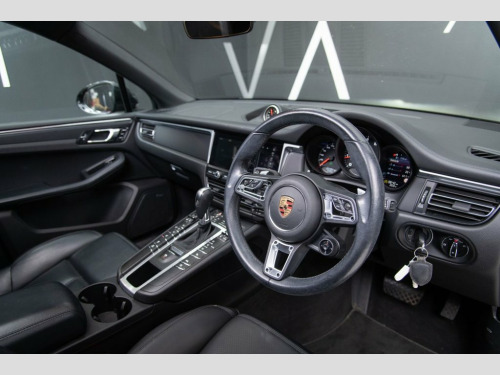 PORSCHE MACAN 2.0T SUV 5dr Petrol PDK 4WD Euro 6 (s/s) (245 ps) combines everyday practicality with the thrilling performance and craftsmanship you expect from Porsche. Finished in striking Jet Black and sitting on commanding 21in Macan Turbo Alloy Wheels in Satin Platinum, it exudes presence from every angle, complemented by LED headlights, 3D LED tail lights, roof rails in black, and a panoramic roof that floods the cabin with light. Inside, the Black partial leather interior with silver accent trim features heated front and rear comfort seats, a multifunction sports steering wheel with gearshift paddles, three-zone climate control, and a premium Sound Package Plus, all wrapped in refined attention to detail. Safety and technology are comprehensive, with Porsche Stability Management (PSM), Porsche Traction Management (PTM), lane departure warning, park assist, full airbags, ISOFIX mounts, and Porsche Communication Management (PCM) for navigation and connectivity. Additional highlights include Sport Chrono and Off-Road packages, a heated windscreen, privacy glass, electrically adjustable and heated folding mirrors, split-folding rear seats, and thoughtfully designed storage and convenience features such as cupholders, electric tailgate, and a non-smoker package, making this Macan as versatile as it is exhilarating to drive. Comfort Lighting Package, Sport Chrono Package including Mode Swit, Roof Rails - Aluminium - Painted in Blac, Panoramic Roof System, Privacy Glass, Seats - Heated Front and Rear, Heated Windscreen, 21in Alloy Wheels - Macan Turbo in Satin, Partial Leather with Leather Interior - , Jet Black, ABS - Anti-lock Brake System, Accent Trim in Silver-Coloured Finish, Active Radiator Grille Shutters, Alarm System with Ultrasonic Interior Su, Auto-Hold Function, Automatic Headlight Activation including, Automatic Tailgate, B- Pillar Clothes Hooks on Driver and Pa, Black Interior Trim Pack, Bottle Holders in Door Panels - Front an, Brake Calipers - Black, Bumpers Comprising High-Strength Cross M, Centr