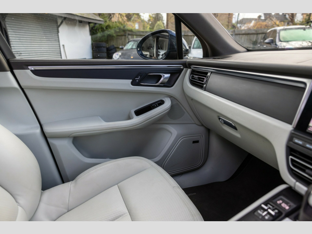 Here we have a very handsome Porsche Macan finished in Night blue metallic over Pebble/Agate grey leather interior. This car comes with the desirable 21'' Spyder wheels shod in matching Pirelli Zero tyres, panoramic roof with electric blind, sideblades painted in Night blue metallic paint, ParkAssist front and rear with reversing camera, heated seats and much more. This car has full Porsche service history and will come with an advisory free MOT. in alloy wheels - macan, active air intake flaps, brake calipers - black, bumpers comprising high-strength cross members and two deformation elements each with one threaded fixture point for towing eye contained in on-board tool kit, combination floating calipers at rear, electric windows - front and rear - remote closing function - anti trap protection and one touch operation, electrically adjustable and heated electrically folding exterior mirrors - aspherical on drivers side, four-piston aluminium monobloc fixed brake calipers at front, front end with integrated air intake, front light units with position lights and direction indicators with led guide technology, fully galvanised body, heated rear window with auto-off function, porsche logo and model designation on rear hatch in high-gloss silver, roof spoiler in high-gloss black, side window trims in matt black, sideblades - lava black, tinted thermally insulated glass all round, two single tailpipes in matt silver on the outer left and right, tyre sealing compound and electric air compressor, 2-way rear headrests excluding central rear seat, accent trim in silver-coloured finish, automatic tailgate, b- pillar clothes hooks on driver and passenger side, black interior trim pack, bottle holders in door panels - front and rear, climate control - three zone, comfort seats - front, five seats - rear seat system with two comfort outer seats and a central seat, fixed - removable luggage compartment cover, floor mats, folding front centre armrest - with fore-aft adjustment, four-way headrests - front, front wipers system with two speeds - intermittent wipe and rain sensor, instrument cluster with high-resolution 4.8in colour display - gear indicator - service interval display - external temperature indicator - fuel gauge and various warning displays, integrated cluster of three round instruments with black rev counter, led interior lighting concept, loading edge protection in aluminium, multifunction sports steering wheel with shift paddles - steering wheel rim in smooth-finish leather, non-smoker package, particle - pollen filter, rear armrest with two integral cupholders, rear seats with separately folding bench seat - 40-20-40 and folding centre armrest, roof lining in fabric, storage compartments in the interior, two variable-diameter cupholders in front, abs - anti-lock brake system, alarm system with ultrasonic interior surveillance, auto-hold function, central locking with remote control, curtain airbags for cover across the entire roof frame and side glazing from the a-pillar to c-pillar, electric parking brake, engine immobiliser with in-key transponder, full size airbags for driver and front passenger, isofix mounting points for child seats on outer rear seats, multi-collision brake, psm - porsche stability management, ptm - porsche traction management, passenger airbag deactivation function for mounting child seats including display in overhead console, porsche hill control - phc, rear screen wiper with intermittent wipe and washer jet, rollover detection system enabling early deployment of curtain airbags and seat belt pretensioners, side airbags at front - integrated in the seat, side-impact protection beams, three point automatic seat belts, automatic headlight activation including welcome home lighting, high-level third brake light - led integrated into roof spoiler, led headlights with automatic - static range control with 4-point led daytime running lights, three-dimensional led tail lights with integral 4-point brake lights and light strip, connect plus, digital radio, hi-fi sound system with 10 speakers and a total output of 150 watts with integrated amplifier and digital signal processing, integrated 4g-lte compatible sim, porsche communication management - pcm, preparation for towbar system, two sockets - 12-volt - centre console in front - luggage compartment, two usb charging ports in the rear centre console, usb charging and connectivity sockets in centre console storage compartment, cruise control with speed limiter, engine water cooled with thermal management, lane departure warning, manual controls - gearshift paddles on steering wheel and auto mode - recommended gear for optimum fuel economy displayed in manual gearshift mode, off road button, on-board computer, park assist with optical and acoustical warning - front and rear, power steering, sport mode button, steel spring suspension, tyre pressure monitoring system - tpm