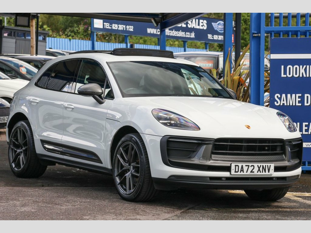 HERE AT CARDIFF TRADE SALES WE HAVE JUST TAKEN DELIVERY OF THIS STUNNING PORSCHE MACAN T, THIS VEHCILE HAS COVERED 28K MILES AND COMES WITH THE FOLLOWING SPECIFICATIONS: PANORAMIC ROOF SYSTEM, SPORTS EXHAUST SYSTEM IN BLACK, LANE CHANGE ASSIST, REVERSING CAMERA, PRIVACY GLASS, AUTOMATICALLY DIMMING INTERIOR AND EXTERIOR MIRRORS, MECHANICAL ROLL-UP SUNBLIND FOR REAR SIDE WINDOWS, POWER STEERING PLUS, SMARTPHONE COMPARTMENT WITH WIRELESS CHARGING, SPEED LIMIT INDICATOR, 75 LITRE FUEL TANK, TYRE SEALING COMPOUND AND ELECTRIC AIR COMPRESSOR, 20-INCH MACAN S WHEELS IN DARK TITANIUN, BLACK LEATHER INTERIOR, BLACK LEATHER INTERIOR, DAB/FM/AM RADIO, WIRRELESS APPLE CAR PLAY, NAVIGATION, HEATED FRONT SEATS, LED HEADLGHTS, LED DAY TIME RUNNNG LIGHTS, POWER TAILGATE, FRONT AND REAR PARKING SENSORS, REVERSE CAMERA, BLIND SPOT ASSIST. 20in Alloy Wheels - Macan S in Dark Tita, ABS - Anti-lock Brake System, Accent Trim in Silver-Coloured Finish, Active Radiator Grille Shutters, Alarm System with Ultrasonic Interior Su, Analogue Clock on Dashboard, Apple CarPlay with Siri Voice Recognitio, Auto-Hold Function, Automatic Headlight Activation including, Automatic Tailgate, Black Interior Trim Pack, Bottle Holders in Door Panels - Front an, Brake Calipers - Black, Bumpers Comprising High-Strength Cross M, Centre Console Armrest with Fore-Aft Adj, Climate Control - Three Zone, Clothes Hooks on the B-Pillars, Combination Floating Calipers at Rear, Comfort Ambient Lighting Package, Connect Plus, Cruise Control with Speed Limiter, C