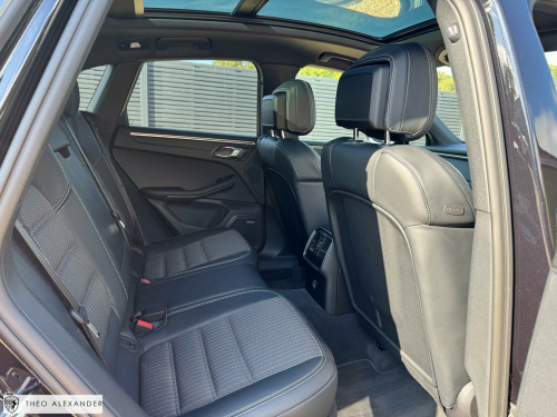 Theo Alexander are pleased to bring this Porsche Macan T to the market, presented in Jet Black Metallic with Black Macan T interior, with 1 previous owner and Porsche warranty until March 2027.This Car comes with Jet Black Metallic Black Interior (with Sport Tex)Panoramic Roof Bose Heated Seats Heated Steering Wheel Porsche Active Suspension 21'' RS Spyder Wheels 18'' Collapsable spare wheelTinted LED rear tail light Sideblades painted High Gloss Privacy Glass in alloy wheels - macan s in dark titanium, active radiator grille shutters, brake calipers - black, bumpers comprising high-strength cross members and two deformation elements each with two threaded fixture point for towing eye, combination floating calipers at rear, electric windows - front and rear - remote closing function - anti trap protection and one touch operation, electrically folding and heated exterior mirrors, exterior - front with integrated cooling air intakes, four-piston aluminium monobloc fixed brake calipers at front, front apron middle section - agate grey, front light units with position lights and direction indicators with led guide technology, fully galvanised body, heated rear window with auto-off function, lower exterior trim package in black, porsche logo and model designation on tailgate agate grey, porsche crest on front headrests, roof spoiler in agate grey metallic, side window trims - black high gloss, sideblades - painted in agate grey metallic with macan t designation, sportdesign exterior mirrors, two gloss black twin sports tailpipes, tyre repair kit, abs - anti-lock brake system, alarm system with ultrasonic interior surveillance, auto-hold function, curtain airbags along entire roof frame and side glazing from a-pillar to c-pillar, electronically operated parking brake, engine immobiliser with in-key transponder, front passenger airbag deactivation function for mounting child seat on front seat, full size airbags for driver and front passenger, isofix mounting points for child seats on outer rear seats, multi-collision brake, psm - porsche stability management, ptm - porsche traction management, porsche hill control - phc, porsche vehicle tracking system plus, rear screen wiper with intermittent wipe and washer jet, rollover detection for activation of curtain airbags and seat belt pretensioners, seat belt pretensioners - driver and front passenger - outer rear seats and force limiters - manually adjustable seat belt height - reminder warning, side airbags at front - integrated in the seat, side impact protection, three point automatic seat belts, accent trim in silver-coloured finish, automatic tailgate, bottle holders in door panels - front and rear, centre console armrest with fore-aft adjustment, climate control - three zone, clothes hooks on the b-pillars, comfort ambient lighting package, door sill guards in black aluminium with macan t logo, fixed - removable luggage compartment cover, floor mats, front wipers system with two speeds - intermittent wipe and rain sensor, instrument cluster with high-resolution 4.8in colour display - gear indicator - service interval display - external temperature indicator - fuel gauge and various warning displays, integrated cluster of three round instruments, interior package - black, loading edge protection in aluminium, macan t interior trim package in leather and striped sport-tex seat centres with contrast stitching in silver, multifunction steering wheel with shift paddles and manual height-reach adjustment, non-smoking package, particle - pollen filter, rear armrest with two integral cupholders, roof lining in fabric, round instrument with black rev counter, seats - heated front, split-folding rear seats - 40-20-40 with folding centre armrest, sports seats - front, steering wheel - heated, storage compartments in the interior, two variable-diameter cupholders in front, analogue clock on dashboard, cruise control with speed limiter, lane departure warning, manual controls - gearshift paddles on steering wheel, offroad mode button, on-board computer, parkassist - sensors front and rear including reversing camera, power steering, sport chrono package, steel spring suspension with porsche active suspension management - pasm, tyre pressure monitoring system - tpm, variocam, apple carplay with siri voice recognition, connect plus, dab digital radio, dashcam preparation, porsche communication management - pcm, preparation for towbar system, smartphone compartment with wireless charging, sound package plus, two sockets - 12-volt - centre console in front - luggage compartment, two usb charging ports in the rear centre console, two usb-c charging and connectivity ports in front centre console storage compartment, automatic headlight activation including welcome home lighting, dynamic cornering lights, high-level third brake light - led integrated into roof spoiler, led main headlights including porsche dynamic light system - pdls, three-dimensional led tail lights with integral 4-point brake lights and light strip