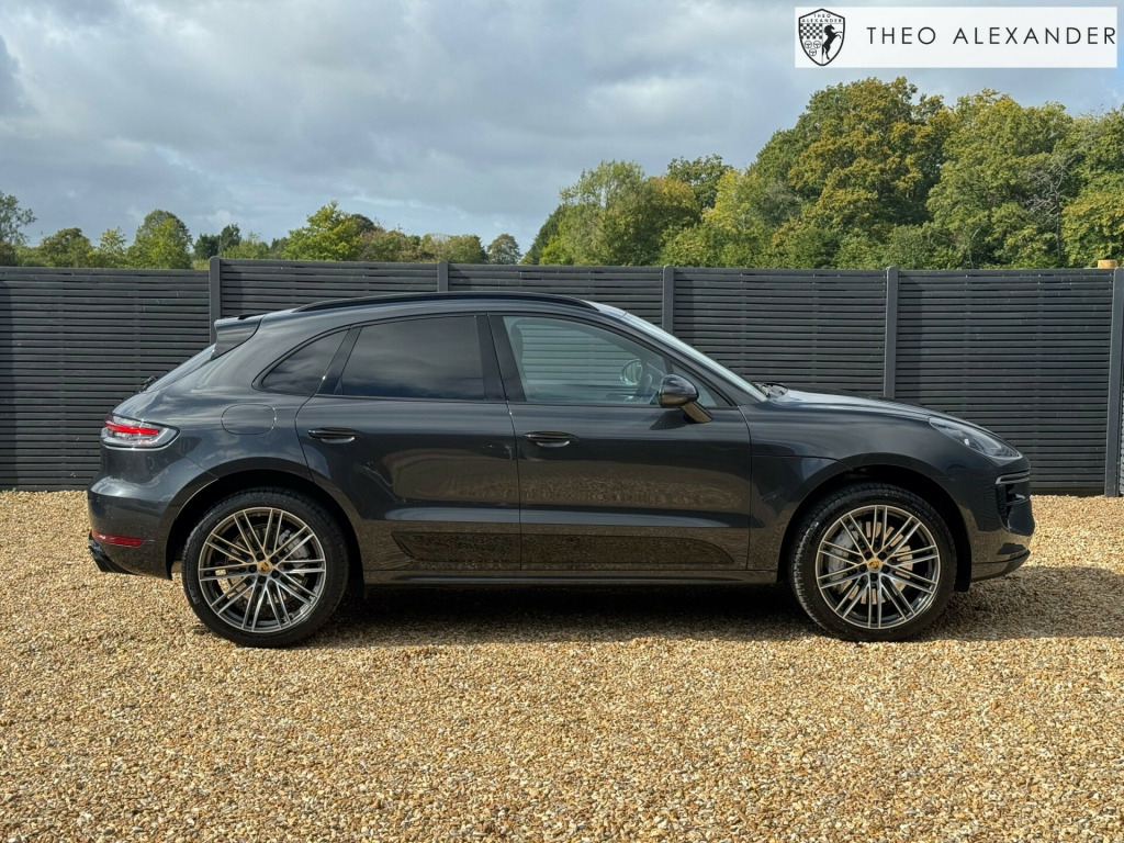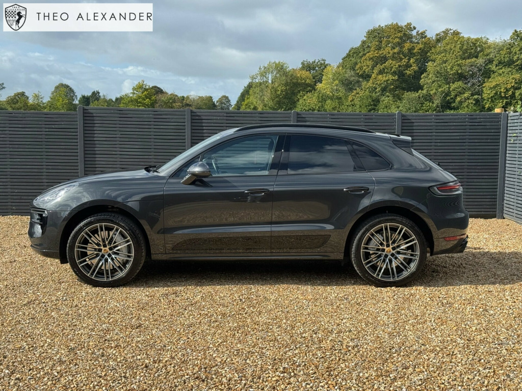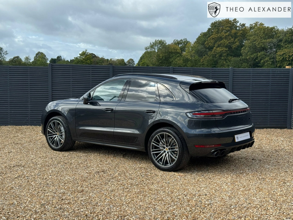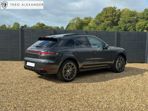 Theo Alexander are pleased to offer this Porsche Macan Turbo, presented in Volcano grey with Black leather interior, complete with a fresh Full major service by Porsche in September 2025.This Car Comes with Volcano Grey Black leather interior 18-Way adaptive Seats Bose Panoramic Roof Sports Design kit in Black High Gloss 21'' Turbo Wheels Sport Exhaust in Black Sport Chrono Air SuspensionHeated GT Steering Wheel ParkAsisst with Reversing Camera Privacy Glass Side window trims in Black LED main headlights in Black inc PDLS +Heated Seats Roof Rails in Black in alloy wheels - macan turbo, active radiator grille shutters, brake calipers with white finish, bumpers comprising high-strength cross members and two deformation elements each with one threaded fixture point for towing eye contained in on-board tool kit, combination floating calipers at rear, electric windows - front and rear - remote closing function - anti trap protection and one touch operation, electrically adjustable and heated electrically folding exterior mirrors - aspherical on drivers side, exterior mirror parking assist - kerb function, front apron moulding with significantly enlarged cooling air intakes, fully galvanised body, heated rear window with auto-off function, porsche logo and model designation on tailgate in high-gloss silver, rear mid-section - painted, roof spoiler with fixed double-wing design and fin-like look in black high-gloss, side window trims - aluminium, sideblades painted in exterior colour, six-piston aluminium monobloc fixed brake calipers at front, sportdesign exterior mirrors, sportdesign side skirts, sports exhaust system, tinted thermally insulated glass all round, turbo specific front light unit with separate led position light and separate turn signal in led technology, two twin tailpipes outside left and right in macan turbo-specific design with matt silver-coloured finish, wheel centres with full-colour porsche crest, abs - anti-lock brake system, alarm system with ultrasonic interior surveillance, auto-hold function, central locking with remote control, curtain airbags for cover across the entire roof frame and side glazing from the a-pillar to c-pillar, electric parking brake, engine immobiliser with in-key transponder, full size airbags for driver and front passenger, isofix mounting points for child seats on outer rear seats, multi-collision brake, pscb - porsche surface coated brake, psm - porsche stability management, ptm - porsche traction management, passenger airbag deactivation function for mounting child seats including display in overhead console, porsche hill control - phc, porsche vehicle tracking system plus, rear screen wiper with intermittent wipe and washer jet, rollover detection system enabling early deployment of curtain airbags and seat belt pretensioners, side airbags at front - integrated in the seat, side-impact protection beams, three point automatic seat belts, accent trim in silver-coloured finish, automatic tailgate, b- pillar clothes hooks on driver and passenger side, bottle holders in door panels - front and rear, climate control - three zone, digital boost pressure gauge in the colour display of the instrument cluster, door sill guards in aluminium with model designation at front - macan turbo, five seats - rear seat system with two comfort outer seats and a central seat, fixed - removable luggage compartment cover, floor mats, folding front centre armrest - with fore-aft adjustment, four-way headrests - front, front wipers system with two speeds - intermittent wipe and rain sensor, instrument cluster with high-resolution 4.8in colour display - gear indicator - service interval display - external temperature indicator - fuel gauge and various warning displays, integrated cluster of three round instruments with black rev counter and turbo logo, interior package - brushed aluminium, led interior lighting concept, loading edge protection in aluminium, multifunction sports steering wheel with shift paddles - steering wheel rim in smooth-finish leather, non-smoker package, particle - pollen filter, rear armrest with two integral cupholders, roof lining in race-tex, seat - adaptive sports seats with memory package - 18-way, seats - heated front, split-folding rear seats - 40-20-40 with folding centre armrest, storage compartments in the interior, thermal management, two variable-diameter cupholders in front, automatic headlight activation including welcome home lighting, high-level third brake light - led integrated into roof spoiler, led main headlights including porsche dynamic light system - pdls, three-dimensional led tail lights with integral 4-point brake lights and light strip, bose surround sound system, connect plus, porsche communication management - pcm, preparation for towbar system, two sockets - 12-volt - centre console in front - luggage compartment, two usb charging and data ports in the centre console, cruise control with speed limiter, lane departure warning, manual controls - gearshift paddles on steering wheel and auto mode - recommended gear for optimum fuel economy displayed in manual gearshift mode, off road button, on-board computer, pasm - porsche active suspension management, park assist with optical and acoustical warning - front and rear, power steering, sport mode button, steel spring suspension, tyre pressure monitoring system - tpm