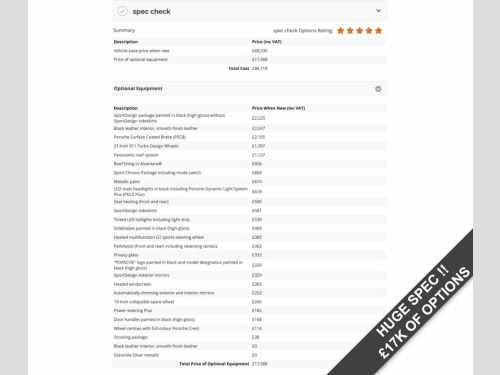 ** FINANCE AVAILABLE VIA OUR WEBSITE * * PART EXCHANGES WELCOME * * ULEZ COMPLIANT!! HERE WE HAVE AN EXCELLENT EXAMPLE VEHICLE PRESENTED BY TT50 CARS OF NORTHAMPTON. * * OVER 40+ HIGH RESOLUTION PHOTOS ON OUR WEBSITE SHOWING DETAILED IMAGES OF THE VEHICLE ALONG WITH THE FULL SPECIFICATION * * We picture all the buttons to save you reading all the text.. SPEC INCLUDES: • Sports Design Package • Black Leather Interior with Alcantara Roof Lining • Porsche Surface Coated Brakes (PSCB) • 21-inch Turbo Design Alloy Wheels with Full Colour Centre Caps • Sports Chrono Package including Mode Switch • Panoramic Glass Roof • LED Headlights with Tinted LED Taillights and Light Strip • Sports Design Side Skirts & Exterior Mirrors • Side Window Blades Painted Black • Heated Multi-Function GT Sports Steering Wheel • Heated Front & Rear Seats • Power Steering Plus • Park Assist • Privacy Glass • Heated Windscreen • Automatically Dimming Exterior Mirrors • Porsche Logo & Model Designation Painted High Gloss Exceptional value — this Macan Turbo represents one of the finest examples currently available, meticulously maintained and ready to be enjoyed. FULL SERVICE PORSCHE HISTORY. 2 KEYS AND ALL DOCUMENTS HERE WITH US. 2-Way Rear Headrests excluding Central R, 20in Alloy Wheels - Macan Turbo, ABS - Anti-lock Brake System, Accent Trim in Silver-Coloured Finish, Active Air Intake Flaps, Alarm System with Ultrasonic Interior Su, Auto-Hold Function, Automatic Headlight Activation including, Automatic Tailgate, B- Pillar Clothes Hooks on Driver and Pa, BOSE Surround Sound System, Bottle Holders in Door Panels - Front an, Brake Calipers with White Finish, Bumpers Comprising High-Strength Cross M, Central Locking with Remote Control, Climate Control - Three Zone, Combination Floating Calipers at Rear, Connect Plus, Cruise Control with Speed Limiter, Curtain Airbags for Cover Across the Ent, Digital Boost Pressure
