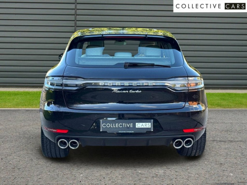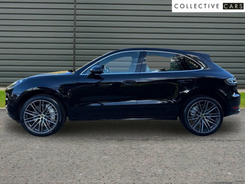 Porsche Macan 2.9T V6 Turbo. 2019/69. A stunning one privately owned (Friend of Collective Cars) Porsche Macan Turbo from new supplied new on the 31/10/2019 by Porsche Centre East London. Finished in Jet Black Metallic with Agate Grey/Pebble Two Tone Leather Interior. Factory Specification from build included Power Steering Plus. Panoramic Glass Roof. Heated Seats Front and Rear and Heated Steering Wheel. 21" 911 Turbo Design Wheels. Heated Windscreen. Auto Dimming Mirrors. Sports Exhaust. Porsche Crest Embossed Headrests. Park assist front and rear with Camera. LED Main headlights with PDLS. Sport Chrono Package. Tinted LED taillights. Comfort lighting package. Illuminated Door Sill Guards. Mileage of 35500 is fully supported by a full and complete Porsche East London Service History with a service having just been carried out. Four brand new Pirelli P-Zero N Rated Tyres have also just been fitted. Nationwide delivery direct to your chosen destination. Full details available on request. 21in Alloy Wheels - 911 Turbo Design, Panoramic Roof System, Heated Windscreen, 2-Way Rear Headrests excluding Central R, 20in Alloy Wheels - Macan Turbo, ABS - Anti-lock Brake System, Accent Trim in Silver-Coloured Finish, Active Air Intake Flaps, Alarm System with Ultrasonic Interior Su, Auto-Hold Function, Automatic Headlight Activation including, Automatic Tailgate, B- Pillar Clothes Hooks on Driver and Pa, BOSE Surround Sound System, Bottle Holders in Door Panels - Front an, Brake Calipers with White Finish, Bumpers Comprising High-Strength Cross M, Central Locking with Remote Control, Climate Control - Three Zone, Combination Floating Calipers at Rear, Connect Plus, Cruise Control with