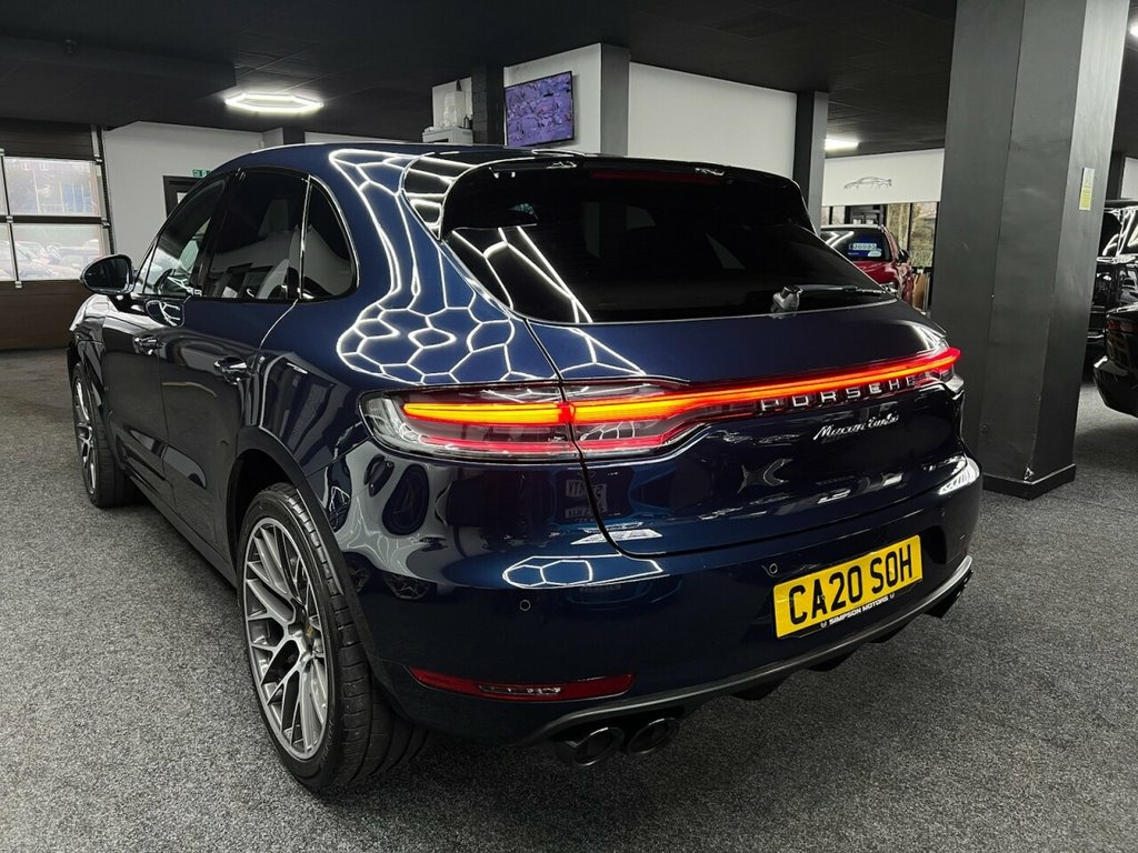 Here we have a Stunning Porsche Macan 2.9T Turbo, The car has done 55,433 Miles from new with 2 Owners who have kept a Full Porsche dealer service history, It will also receive a fresh service and 12 Months mot before it leaves us bringing it bang upto date for the new owner. The car comes supplied with 2 keys and Porsche book pack. The car also comes with warranty included which can be extended upto 3 years. We can also offer G-Techniq crystal ceramic coating paint protection for £399 please let us know if you would like this applied. 21in Alloy Wheels - 911 Turbo Design, Air Suspension with Self-levelling - Rid, Leather Interior - Smooth-Finish Leather, Night Blue, ParkAssist - Front and Rear with Reversi, Privacy Glass, Roof Lining Grab Handles in Alcantara, Seat Belts - Pebble Grey, Sport Chrono Package including Mode Swit, Steering Wheel - Heated